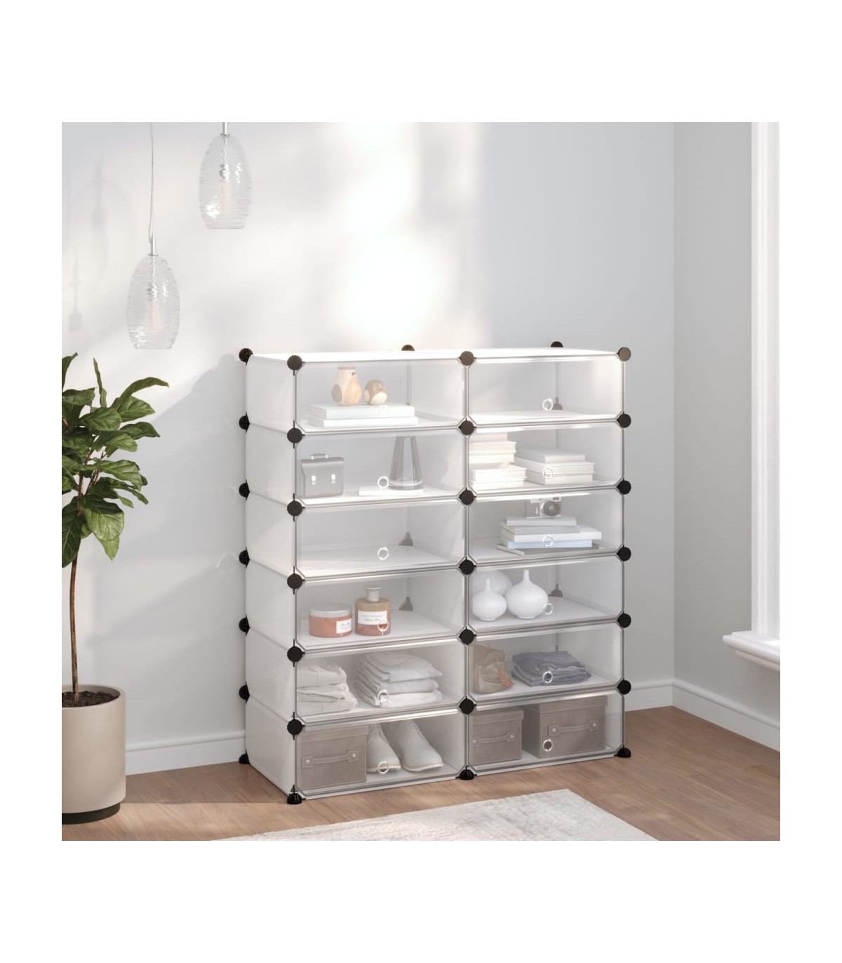 This shoe rack provides a great storage solution for your collection of favourite footwear and other accessories. Practical material: The shoe organiser is made of PP plastic panels, which are waterproof and need low maintenance.Strong and stable structure: The steel frames ensure sturdiness and stability.User-friendly design: The shoe cabinet can be assembled conveniently with the included wood hammer. When not in use, it is easy to separate the panels and stack them to save space.Storage master: The ample storage space of the shoe unit makes it easy to keep things organised.Wide applications: With large storage space and a simple design, the storage rack is an excellent storage solution for your home, dormitory and office. Note:The maximum loading capacity of each cube is 10 kg.