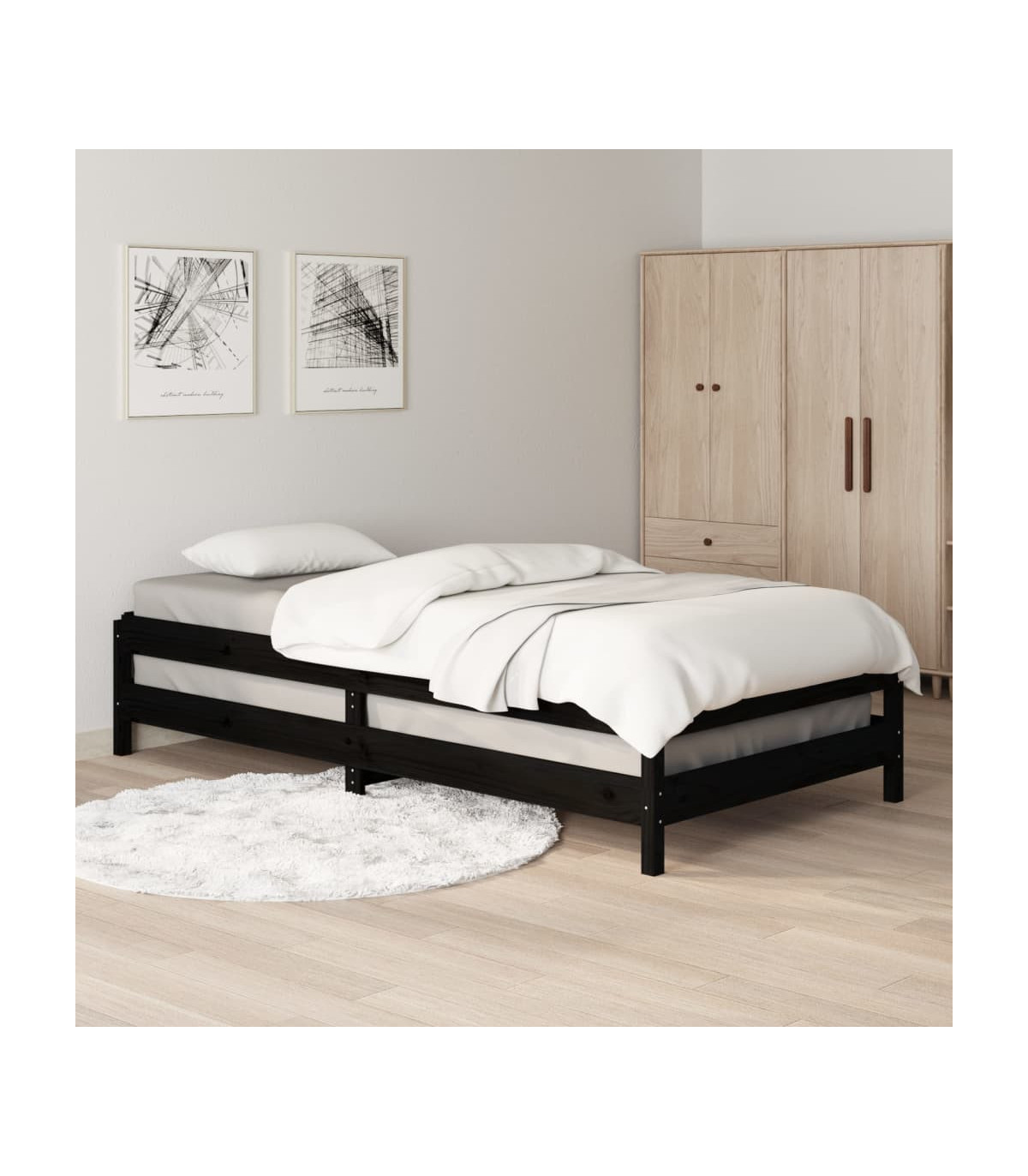 Stack Bed Black 90x200 cm Solid Wood Pine