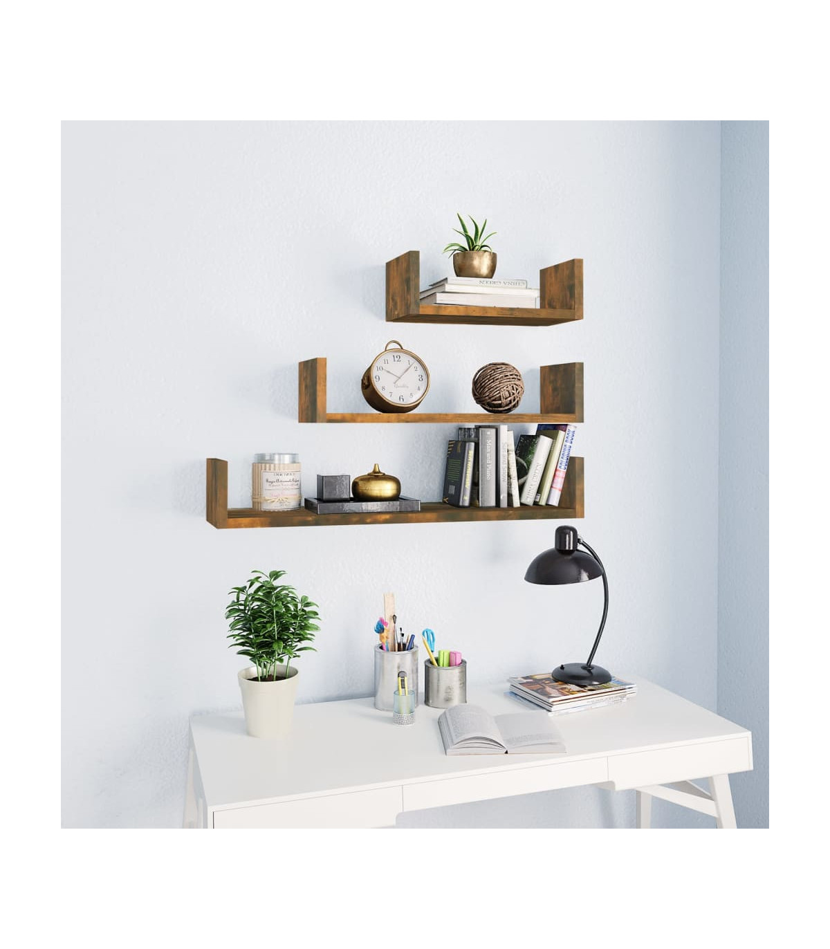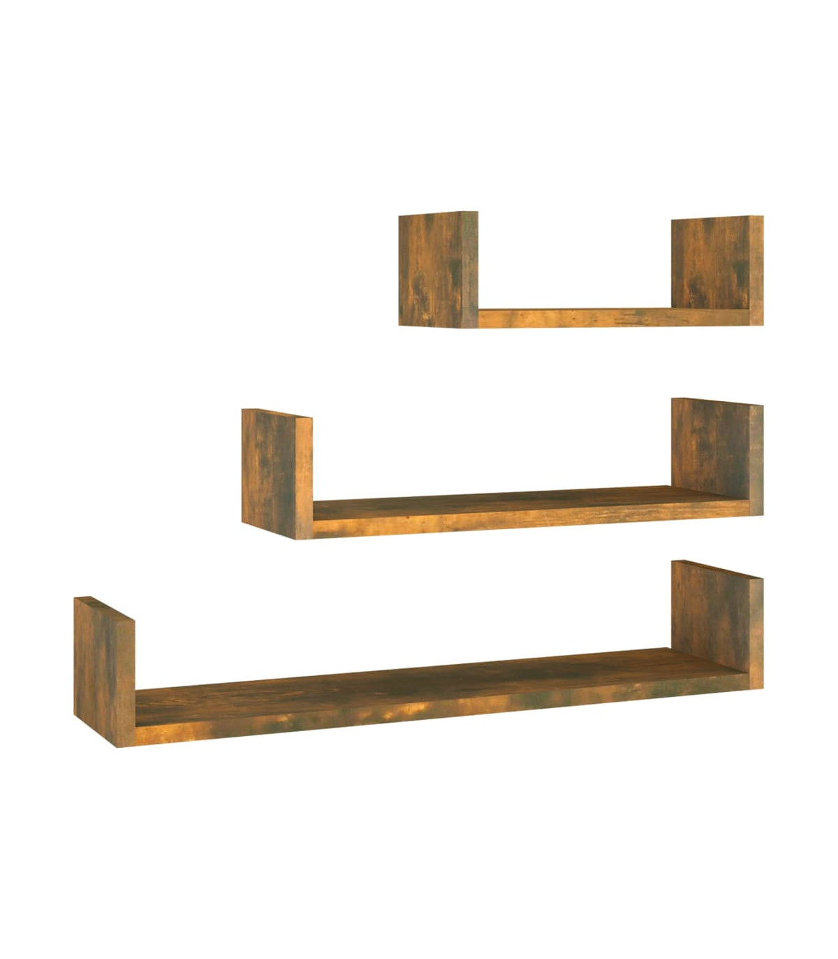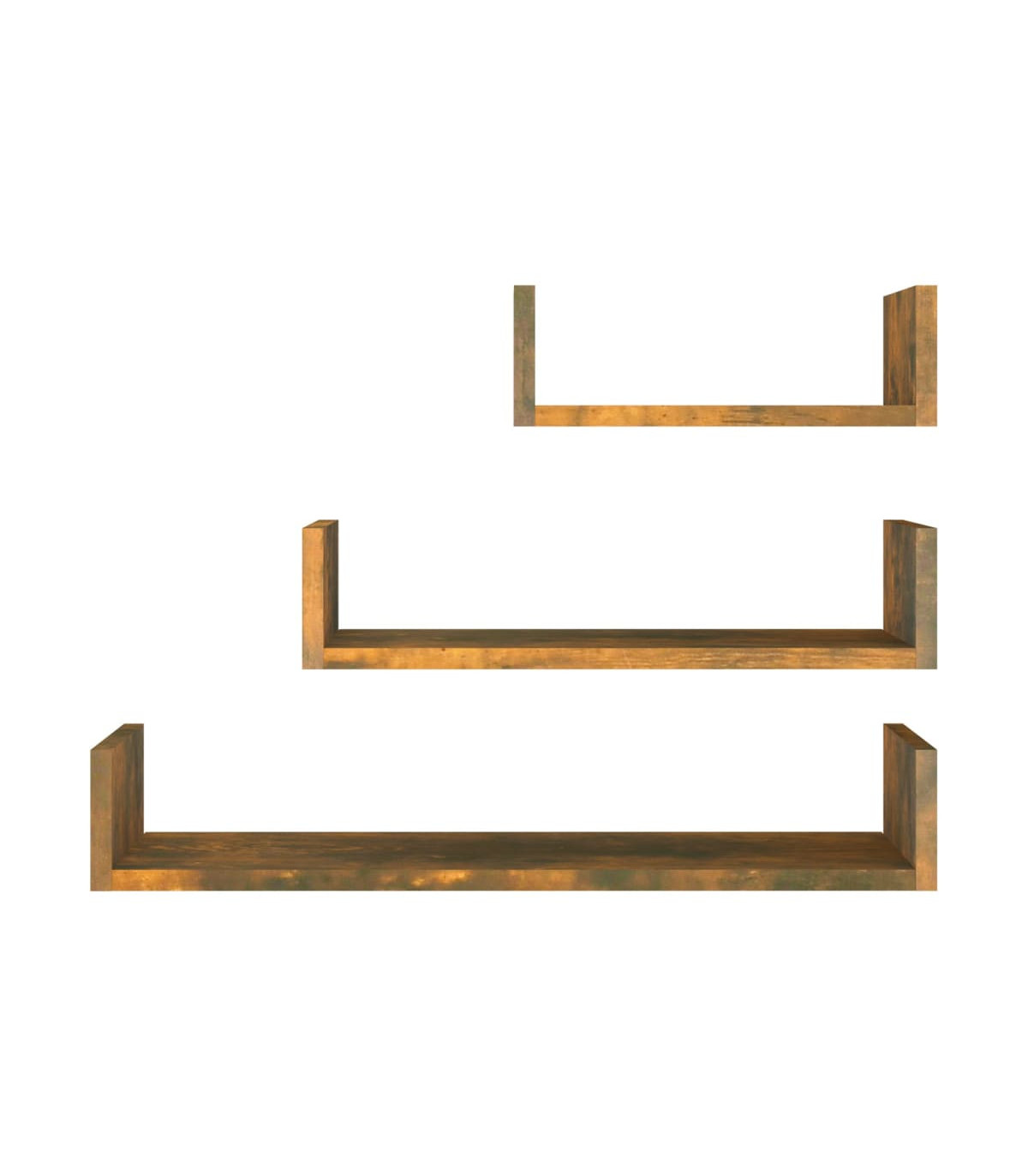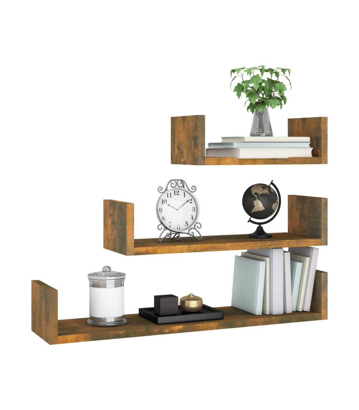 Wall Display Shelves 3 pcs Smoked Oak Engineered Wood