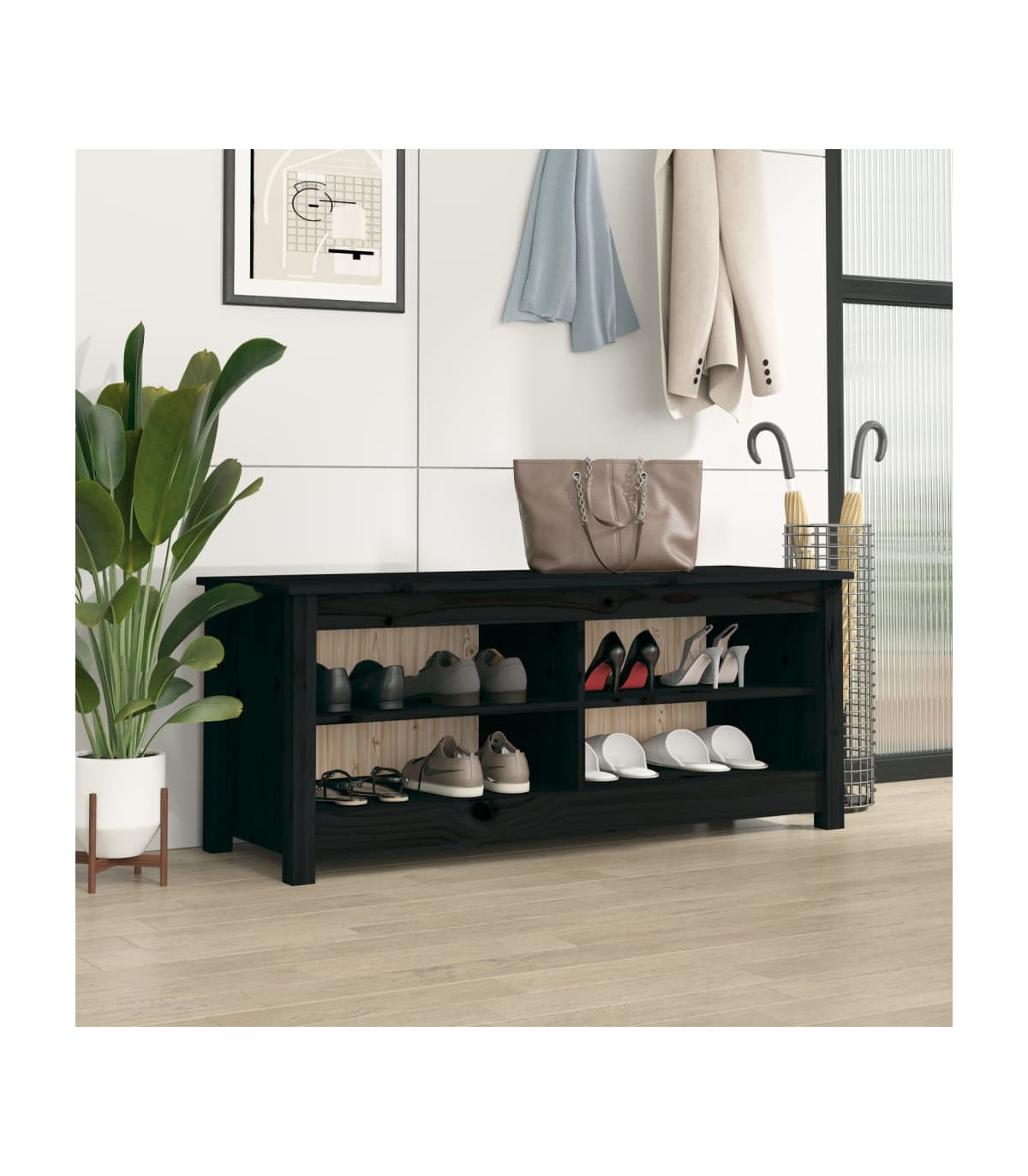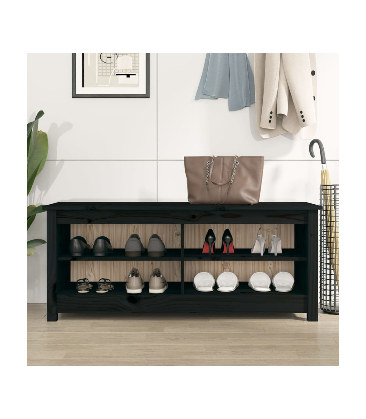 Shoe Bench Black 110x38x45.5 cm Solid Wood Pine
