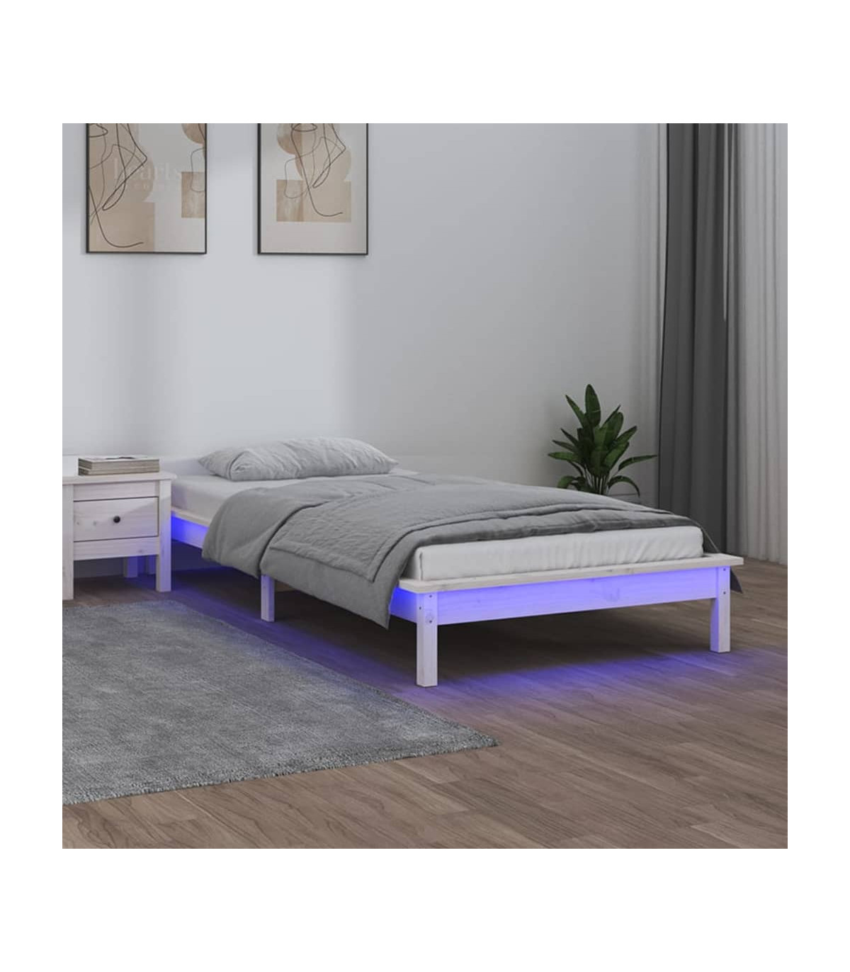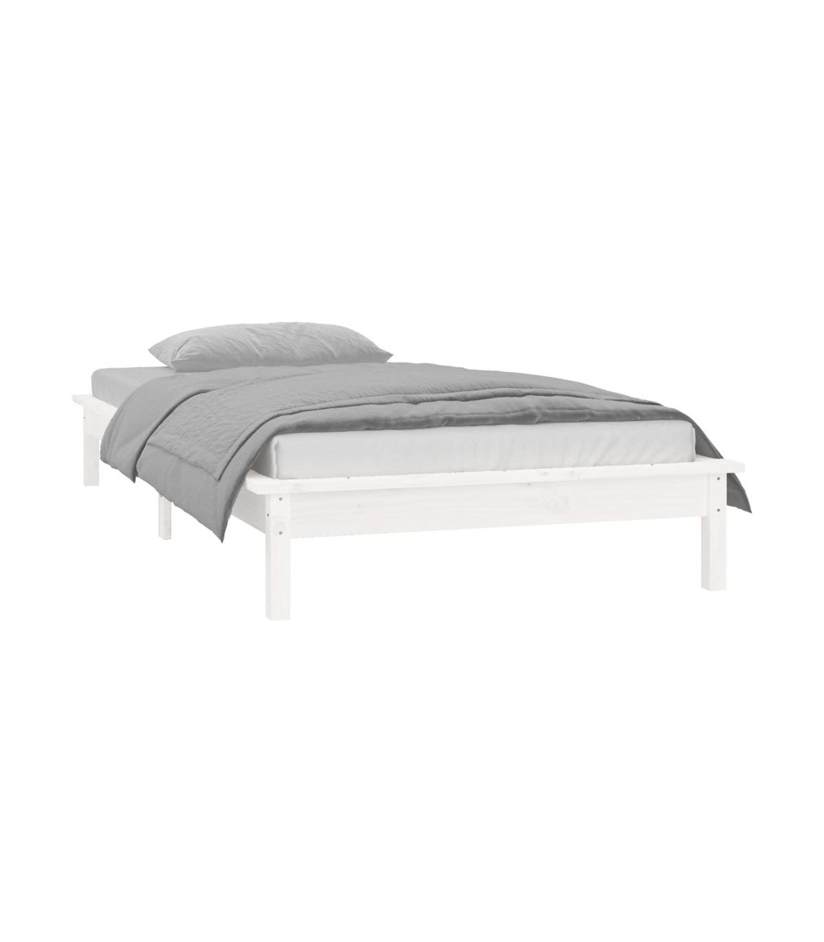 LED Bed Frame White 90x190 cm 3FT Single Solid Wood