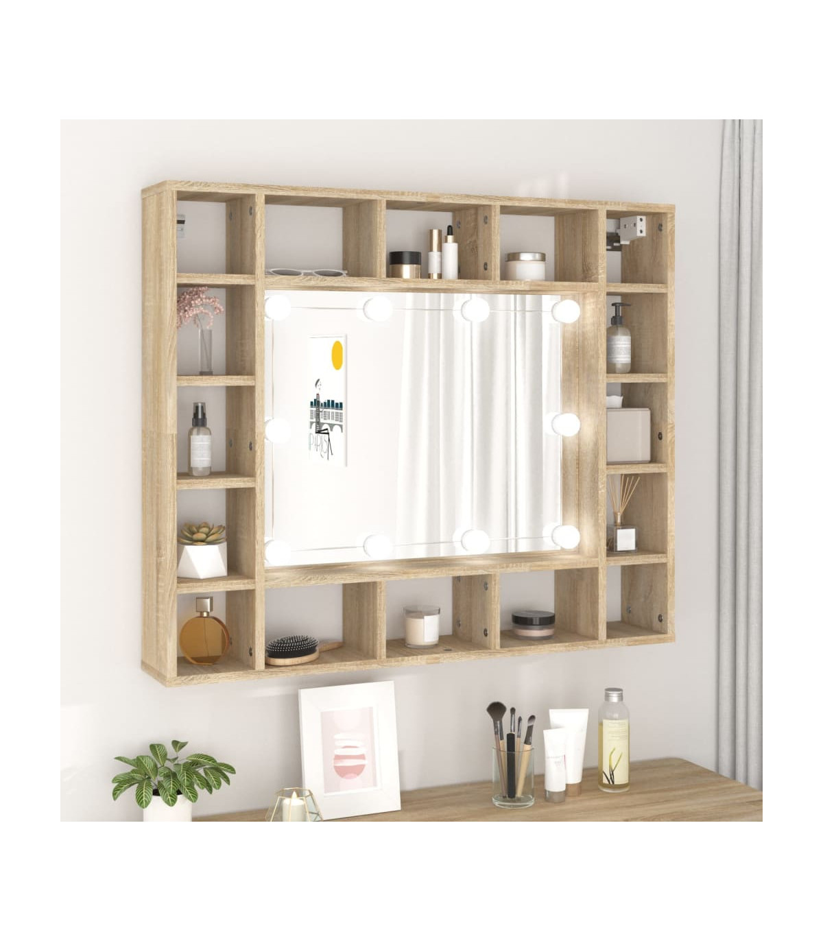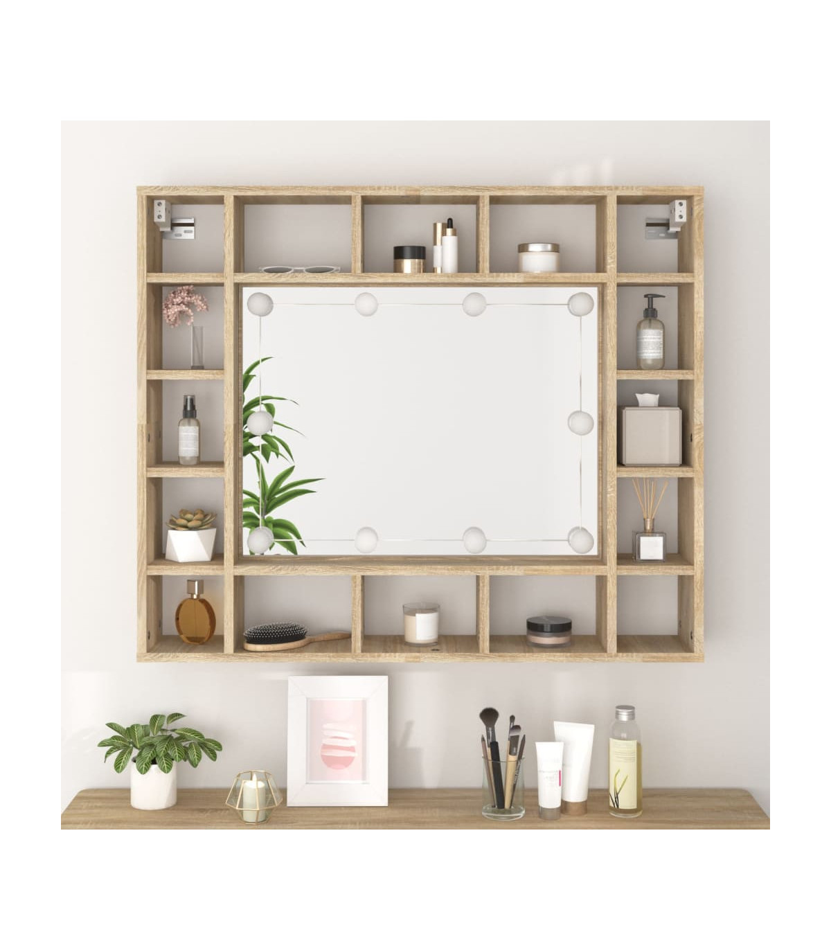 Mirror Cabinet with LED Sonoma Oak 91x15x76.5 cm