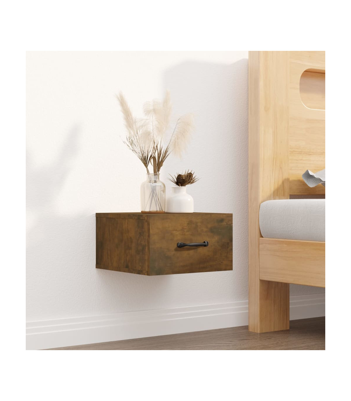 This wall-mounted bedside cabinet is stunning and elegant, making it a good solution to maximise your space. It is also an excellent decoration for your empty walls. Sturdy material: The engineered wood is of exceptional quality with smooth surface and also features strength, stability and resistance to moisture. Wall-mounted design: This floating bedside unit is an excellent choice to keep items neatly organised in limited living space.Ample storage space: The floating night stand provides storage space to keep your magazines, books, remote controls and other small items within reach. Note:Screw(s) and plug(s) for inside the wall are not included. Seek and use screw(s) and plug(s) suitable for your walls. If you are uncertain, seek professional advice. Read and follow each step of the instruction carefully.Each product comes with an assembly manual in the box for easy assembly.