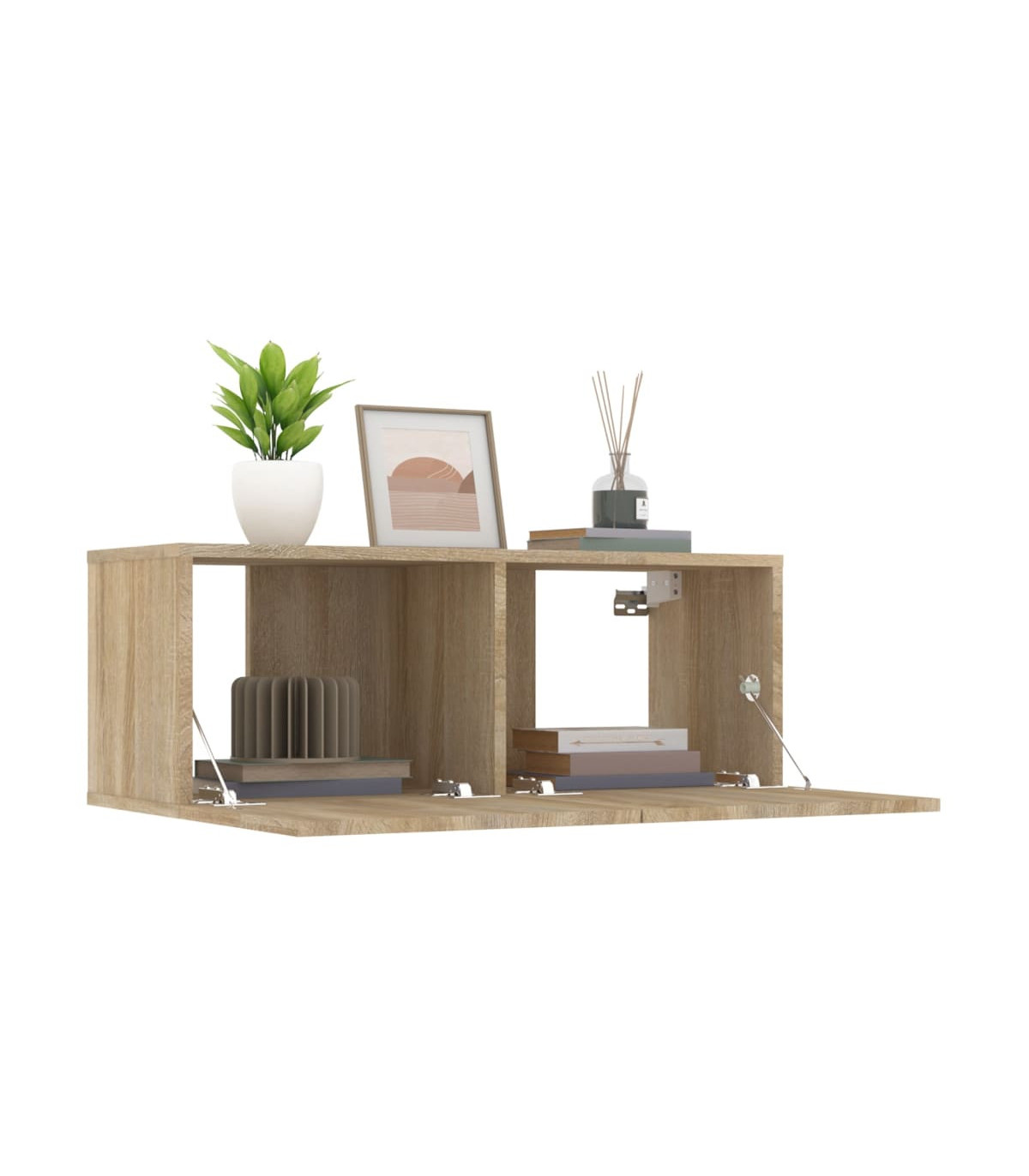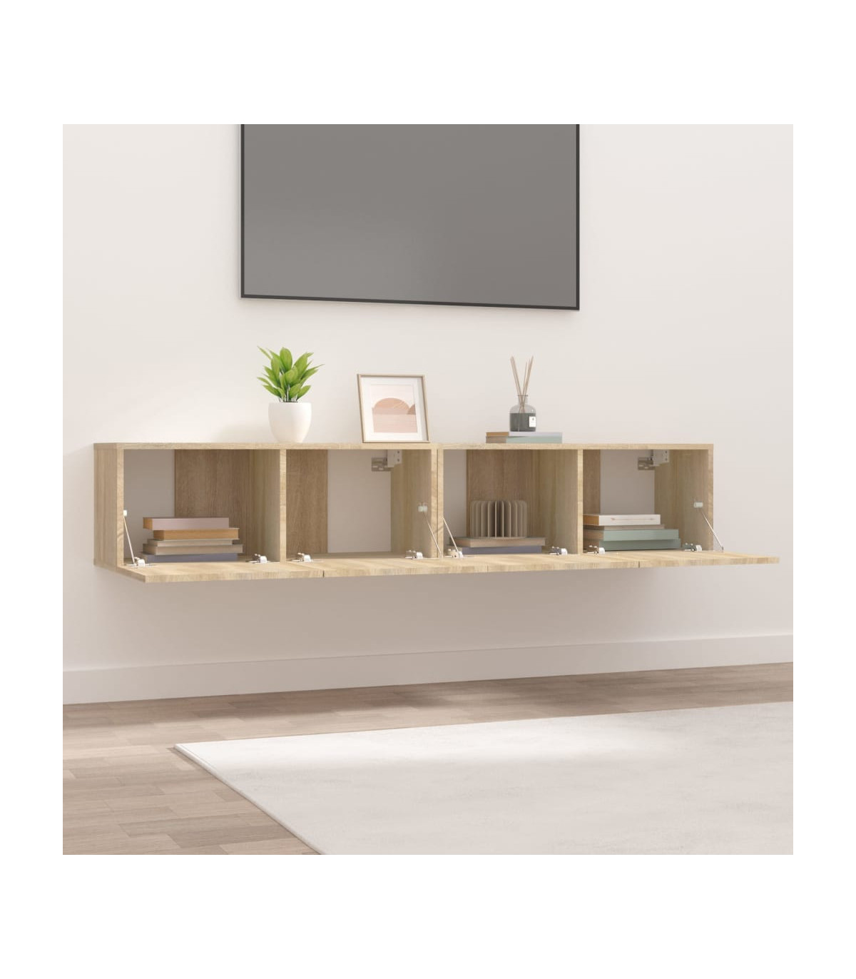 These sturdy TV cabinets are designed to be a focal point of your room with a trendy yet practical design. Premium material: The engineered wood is of exceptional quality with smooth surface and also features strength, stability and resistance to moisture. Spacious storage: The TV stand has 2 compartments which make it an ideal place for storing all your magazines, DVDs or other items.Wall-mounted design: The TV unit can be wall-mounted to add extra storage space. That way, you can maximise your floor space and keep the area clean.Practical doors: The media cabinet's two doors keep your space clutter-free by hiding small essentials behind the doors. Additionally, the door features a drop-down design, which makes it easier to get items. Note:Screw(s) and plug(s) for inside the wall are not included. Seek and use screw(s) and plug(s) suitable for your walls. If you are uncertain, seek professional advice. Read and follow each step of the instruction carefully.Each product comes with an assembly manual in the box for easy assembly.