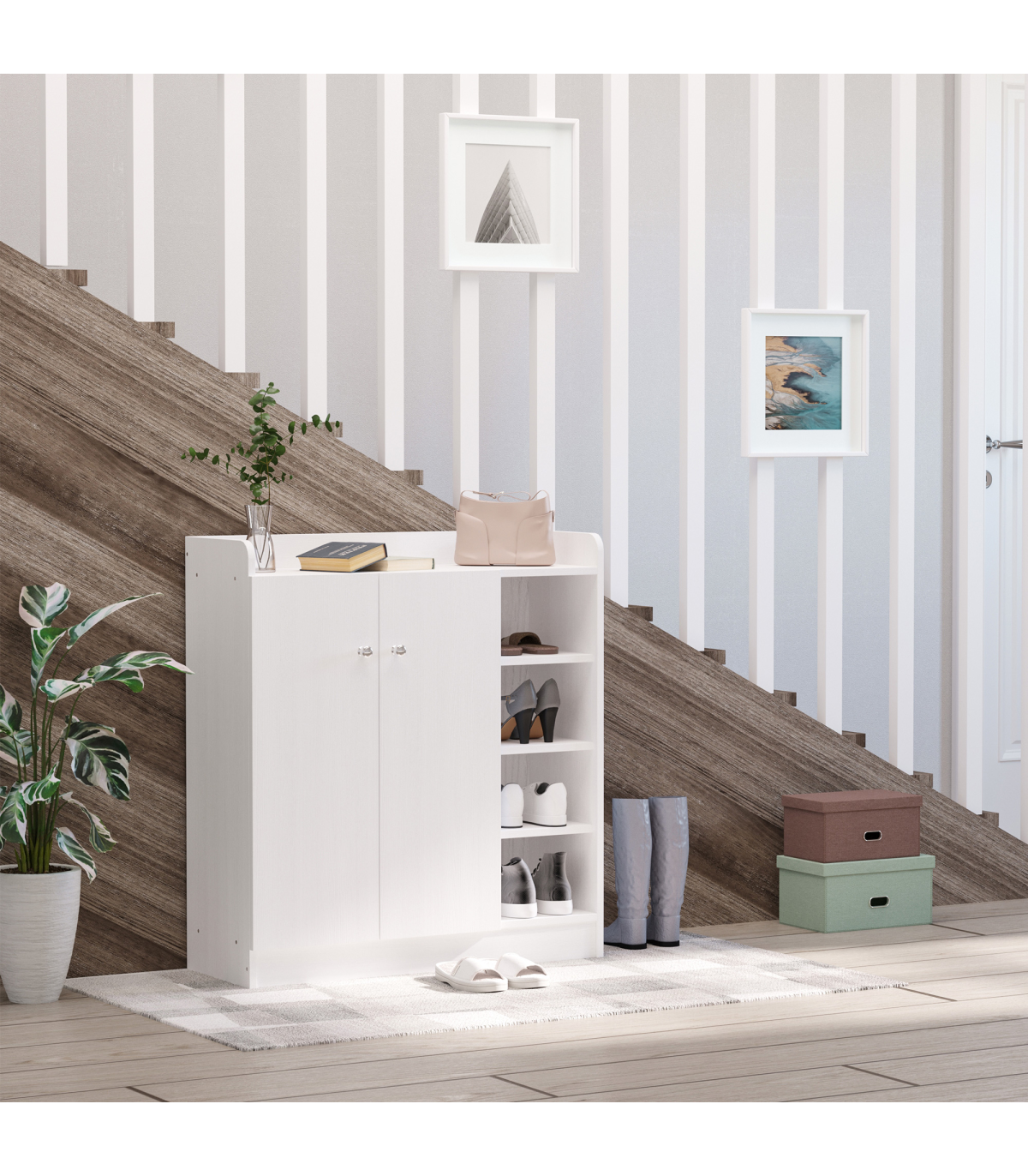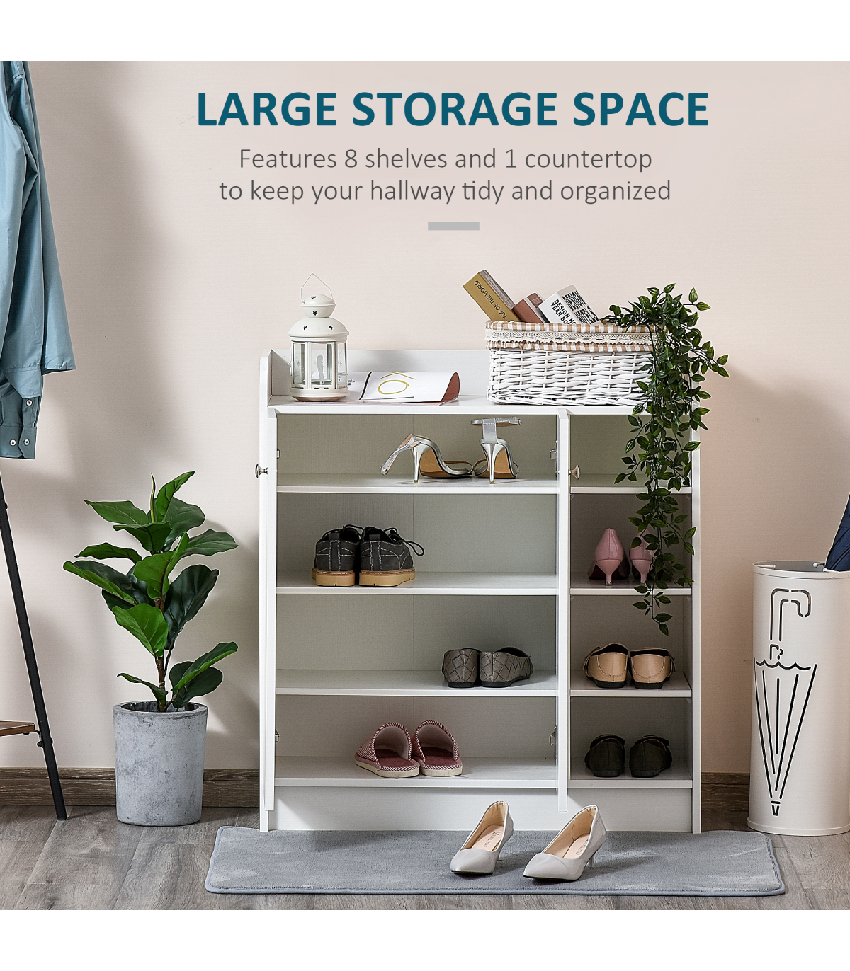 Shoe Storage Cabinet Home 2 Doors w/Adjustable 4 Shelves White
