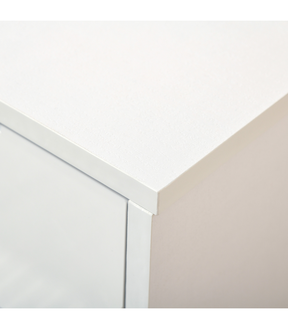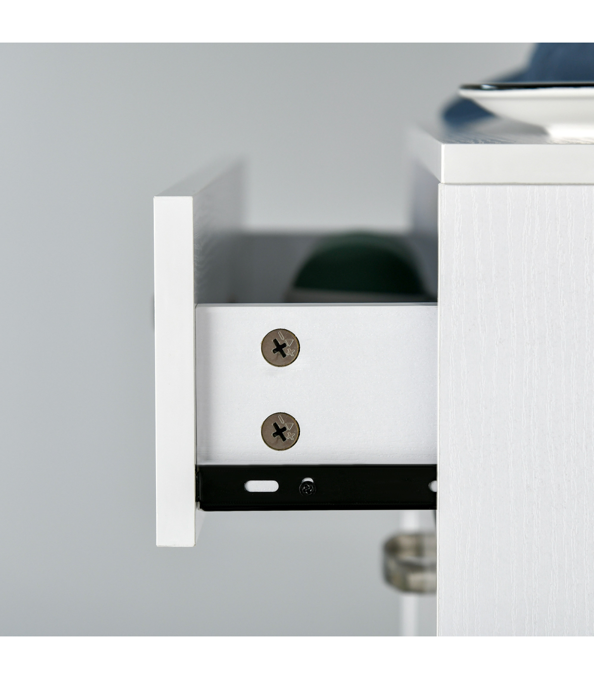 ? Features one slide-out drawer and three tipping drawers, plenty of storage