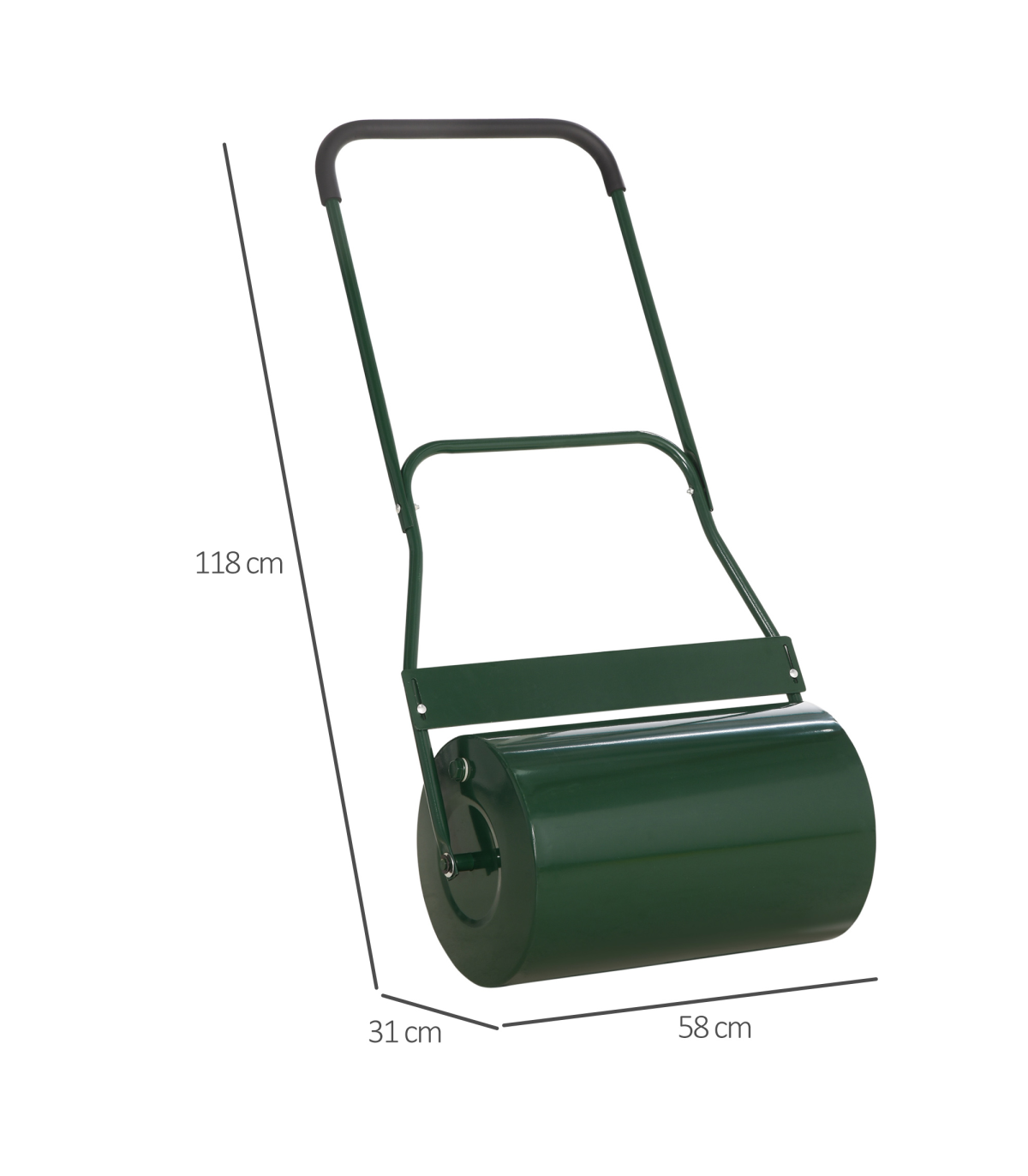 Constructed of metal and offers long term use Ideal for packing loose dirt and flatten the ground evenly It is small enough to maneuver in tight space and durable enough to roll larger open space Roller is capable of loading up to 40L water or sand to meet your requirements Black rubber handle for your convenience Assembly required