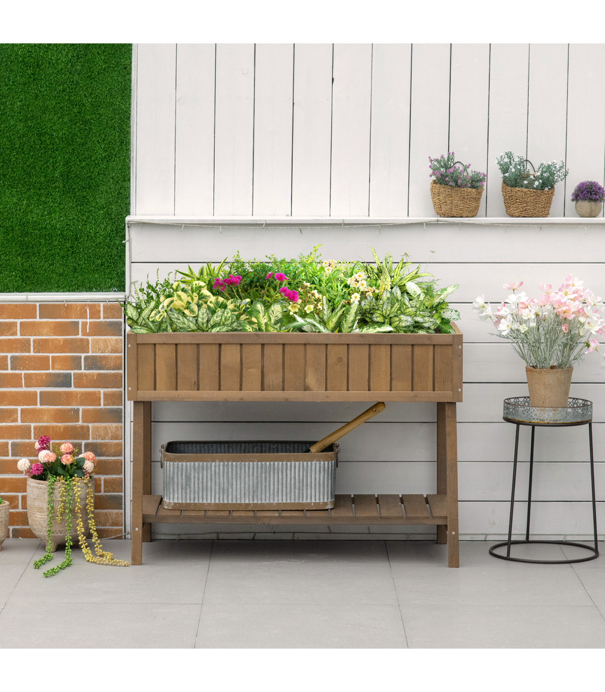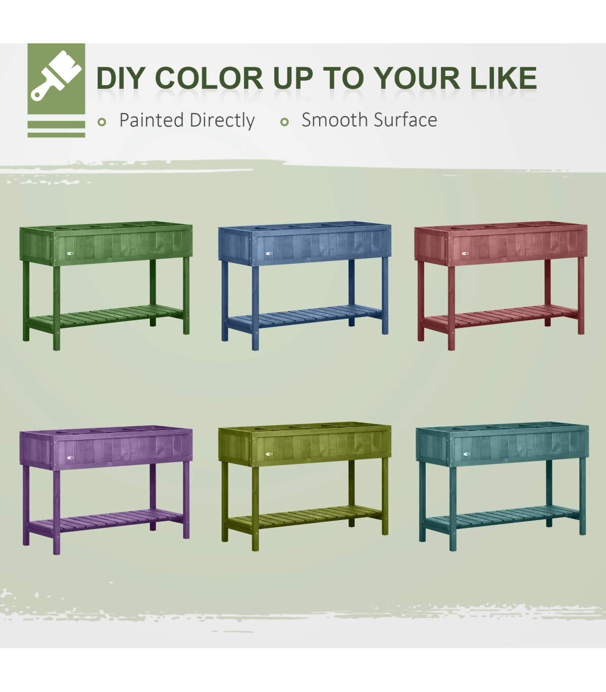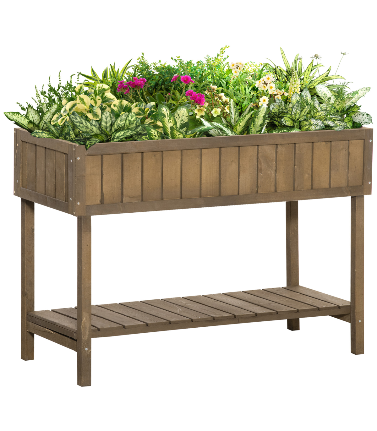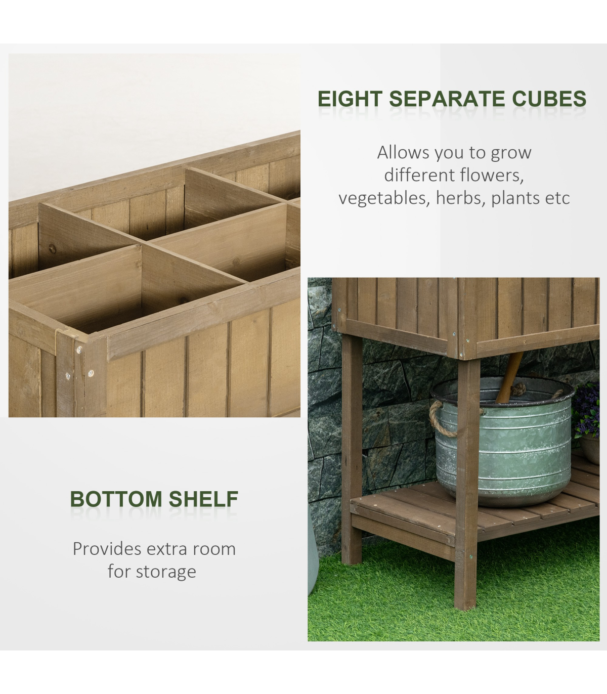 Give your flowers, plants and herbs their own pride of place with Outsunny raised beds for garden. Made from fir wood and covered with water-resistant paint all over to ensure it is suitable for use both indoors and outdoors. Eight separate cubes give you plenty of separate space to organize and display. Elevated legs are used for keeping away dirt, and the bottom shelf for keeping tools and equipment close to hand. The perfect place to show off your raised vegetable planter with pride!