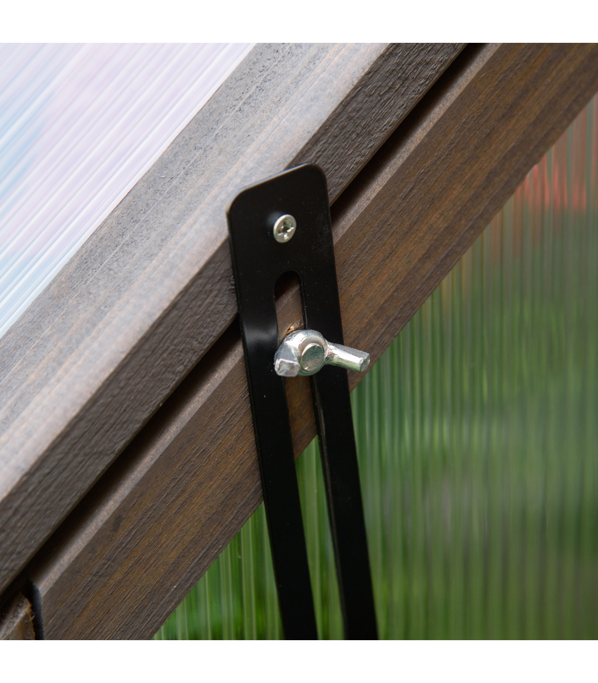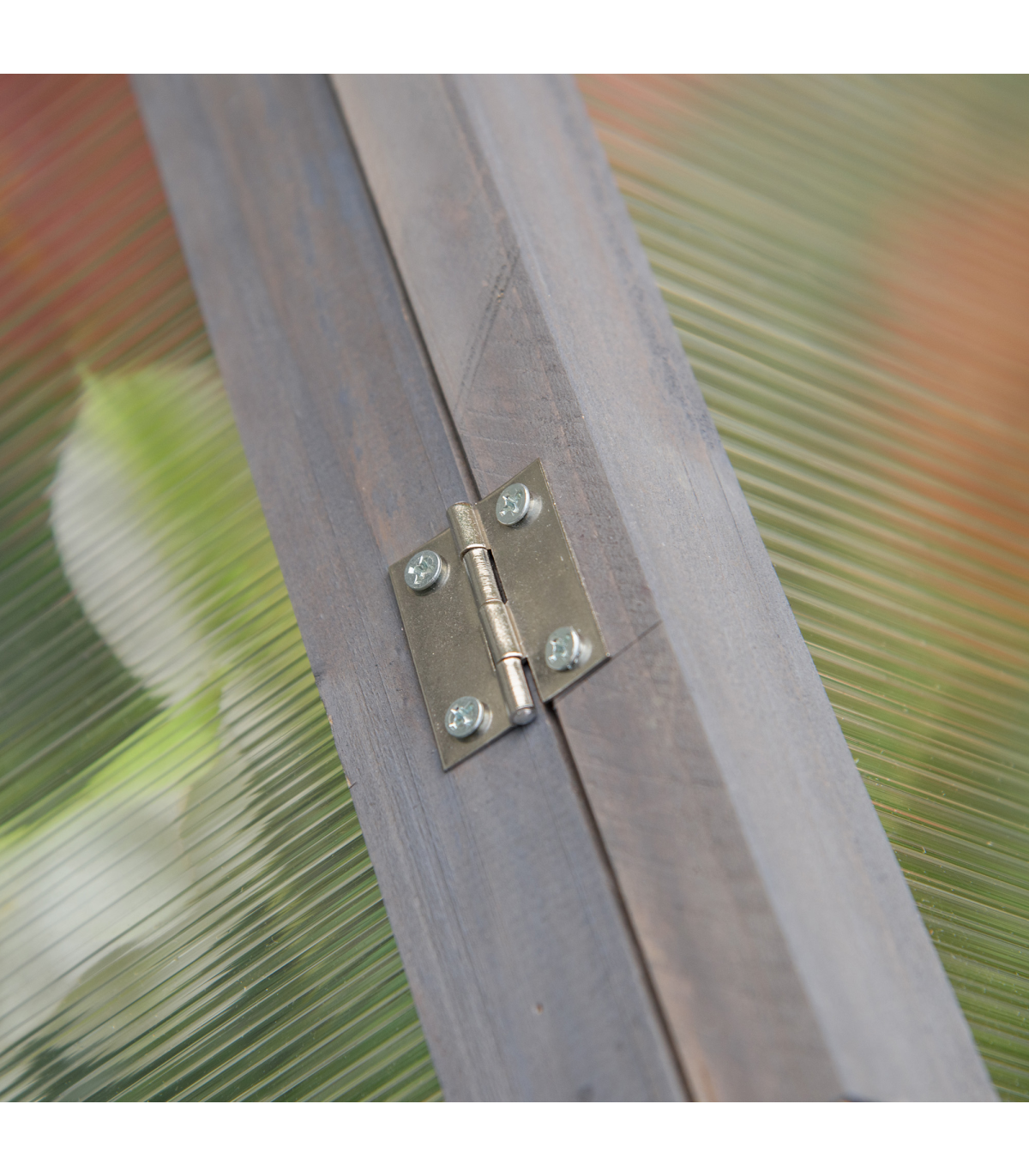 Sturdy compact garden cold frame greenhouse for outdoor and indoor use Extend growing season and protect young plants from frost Clear polycarbonate panels allow maximum light transmission, whilst retaining heat Solid wood frame with a coat of paint for protection Adjustable roof opening provides proper ventilation and easy access to your plants Assembly required