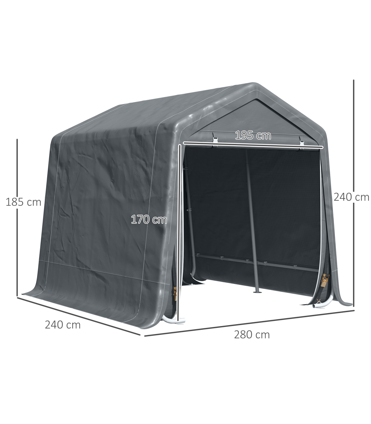 Storage Tent, Heavy Duty Metal Frame 2.8x2.4x2.4m, Dark Grey