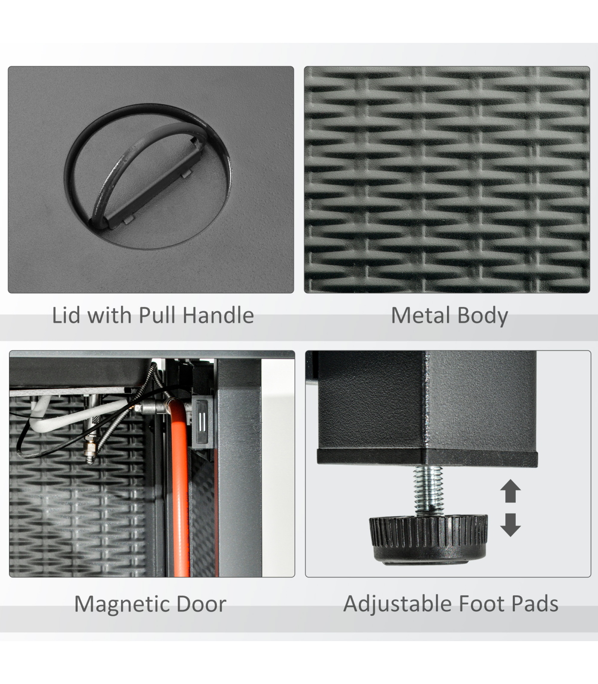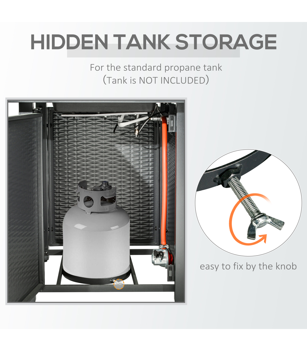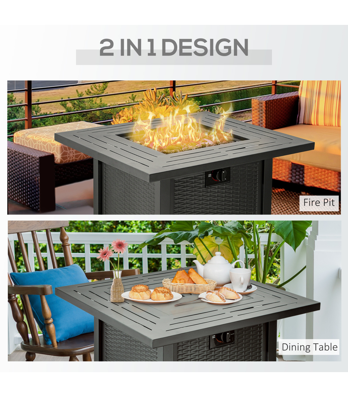 Enjoy the ultimate garden ambiance all-year-round with this Outsunny fire pit table. The rattan design is stylish, with an inner compartment to hold the propane tank safely. The garden furniture with 40000 BTU burner means you can enjoy a flame without worrying about messy ashes. Whether it's on a porch, patio, or in your garden, our gas fire pit table is a great addition to your home.