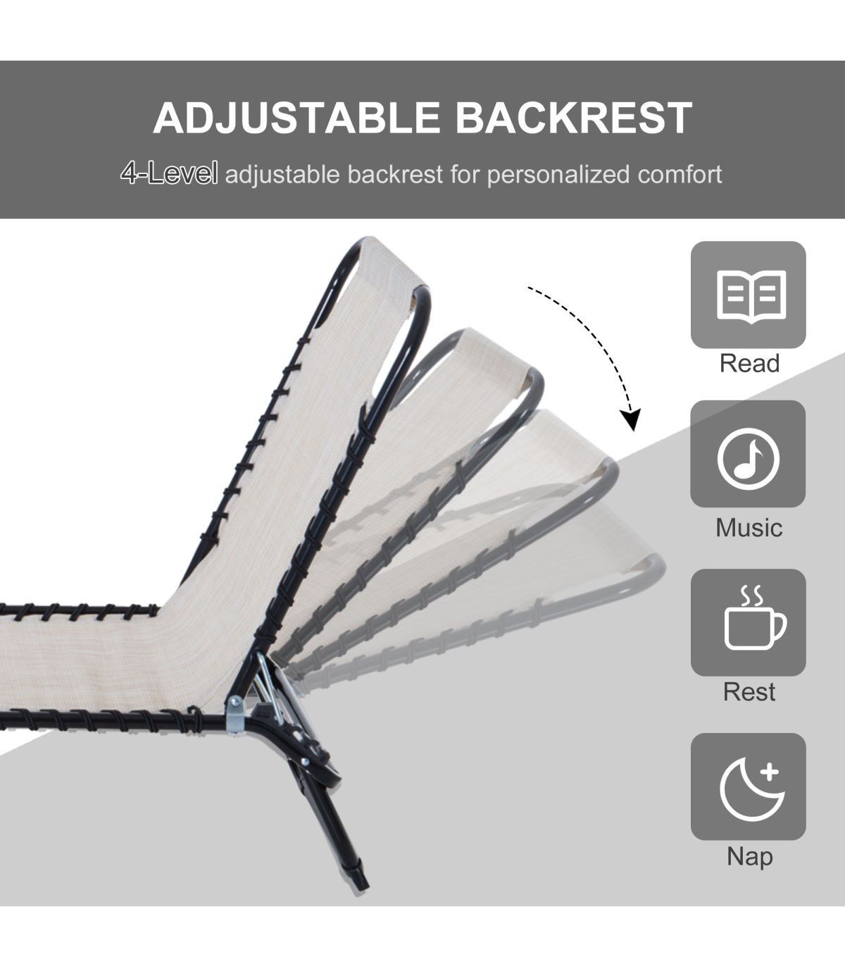 - 4 Position adjustable backrest enables you to recline in total comfort