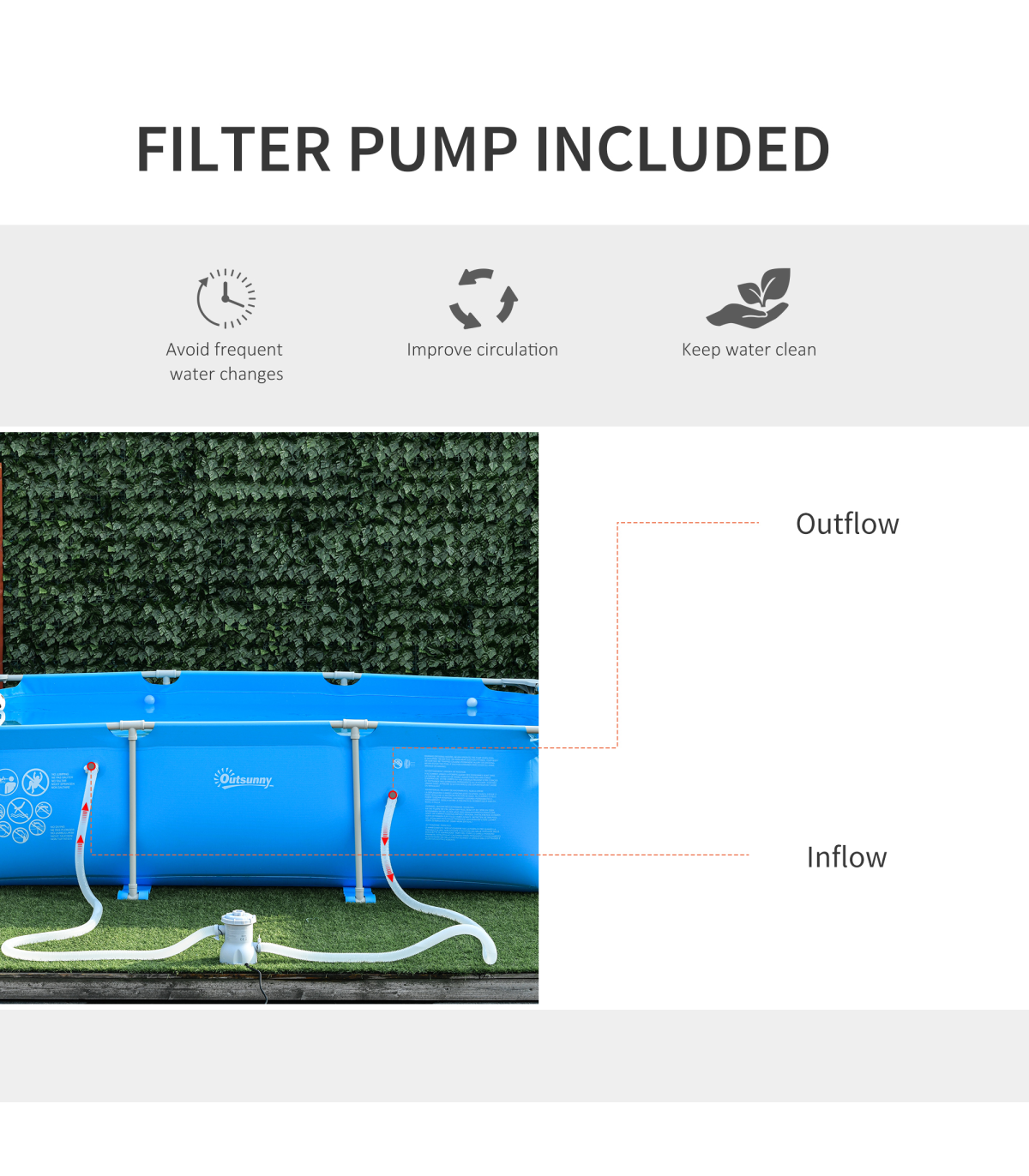 - Included filter pump and filter cartridge help keep your water clean