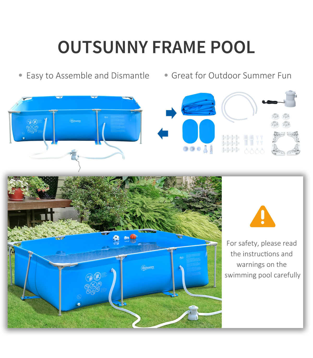 Look at this Outsunny paddling pool for adults. Drain valve for easy draining and disassembly and filter to keep the water clean. Features strong paint spraying metal frames combined with the strong 1000D PVC & a beautiful design, offering a premium pool experience. Owning a portable pool can enhance the fun in the sun for your family or friends, promote fitness, and it is a social magnet! Why miss out on the fun this summer, when you could be the center of it all?