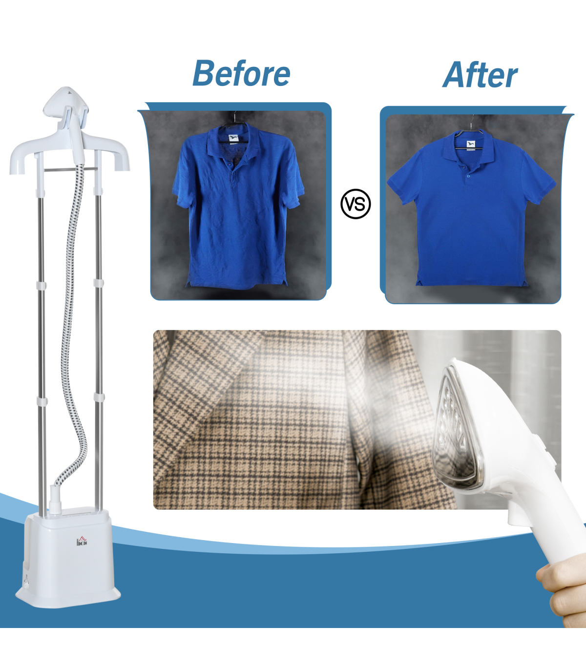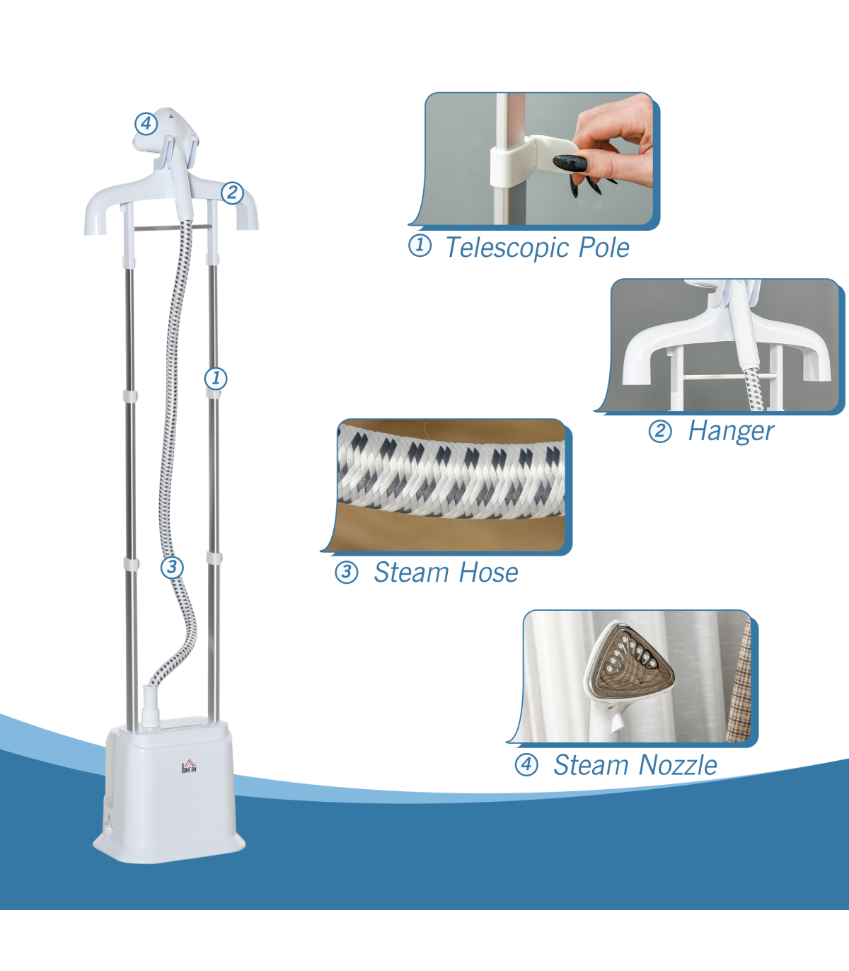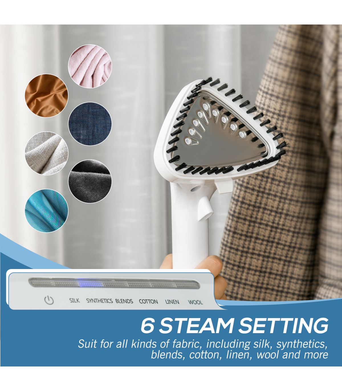 Built-in garment hanger and fabric brush keep garments in position while steaming