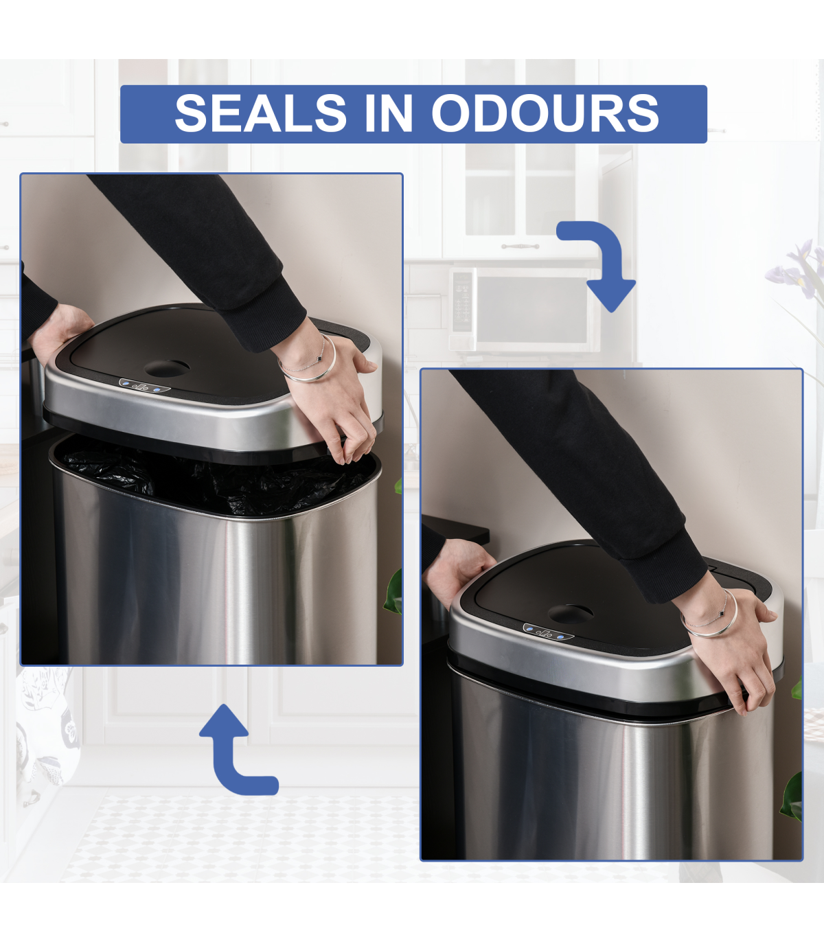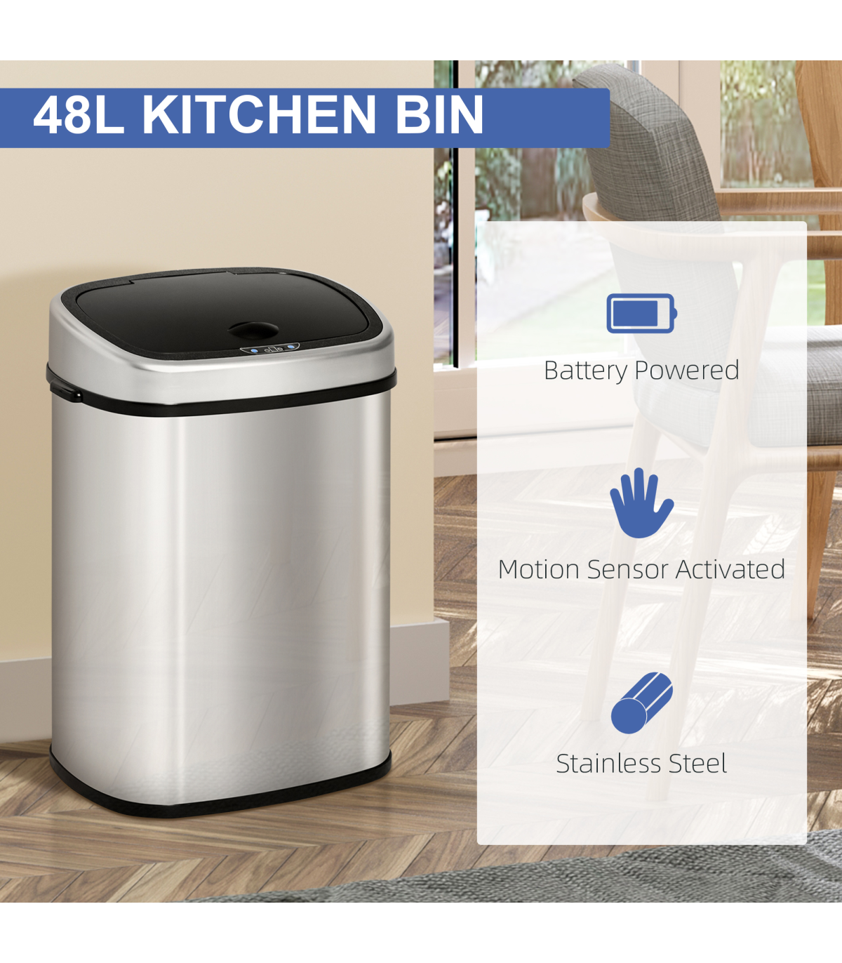 With touch-free lid operation makes you throwing garbage easier and cleaner
