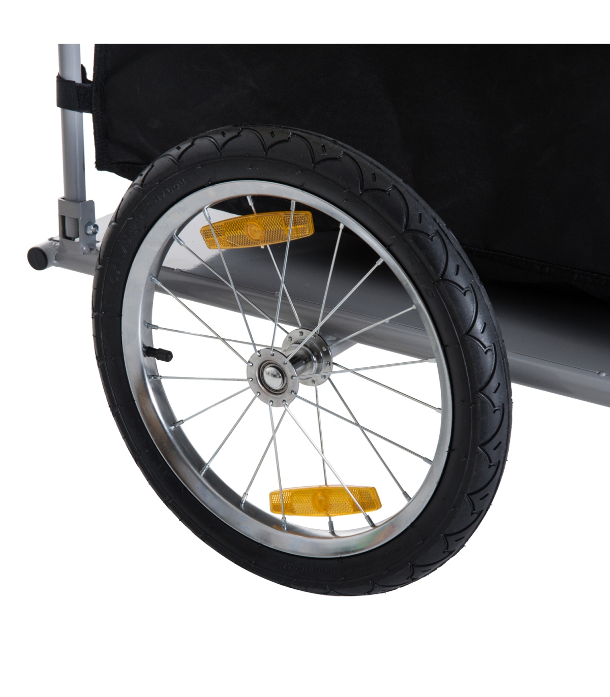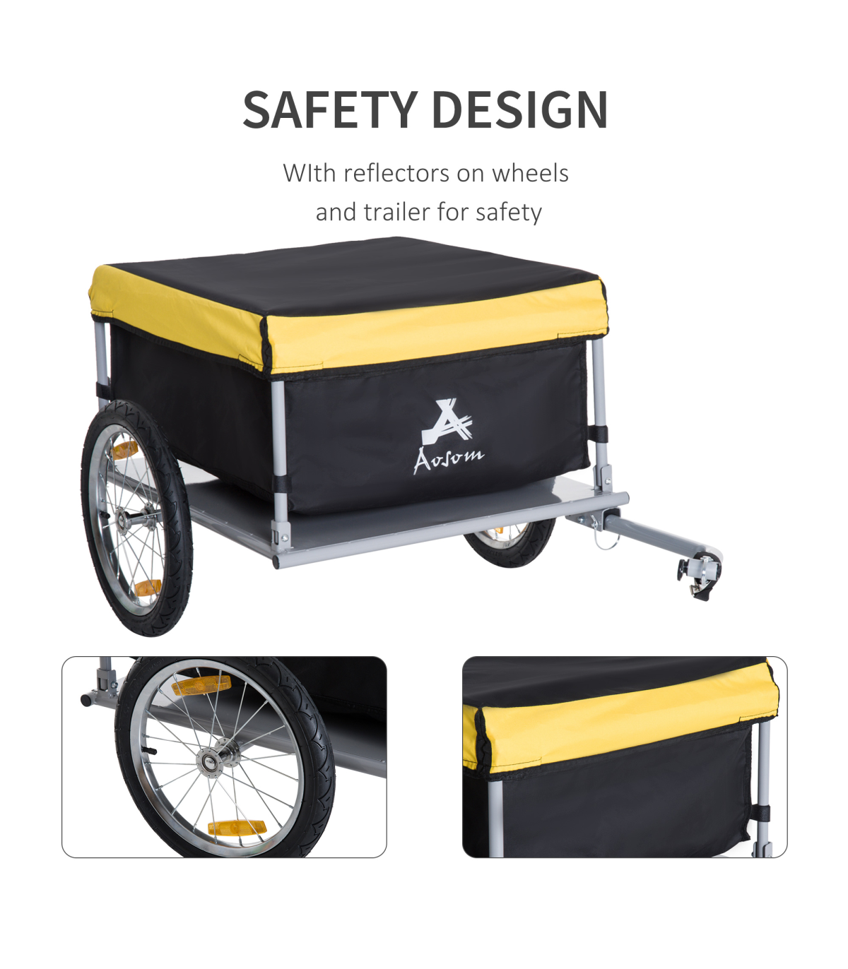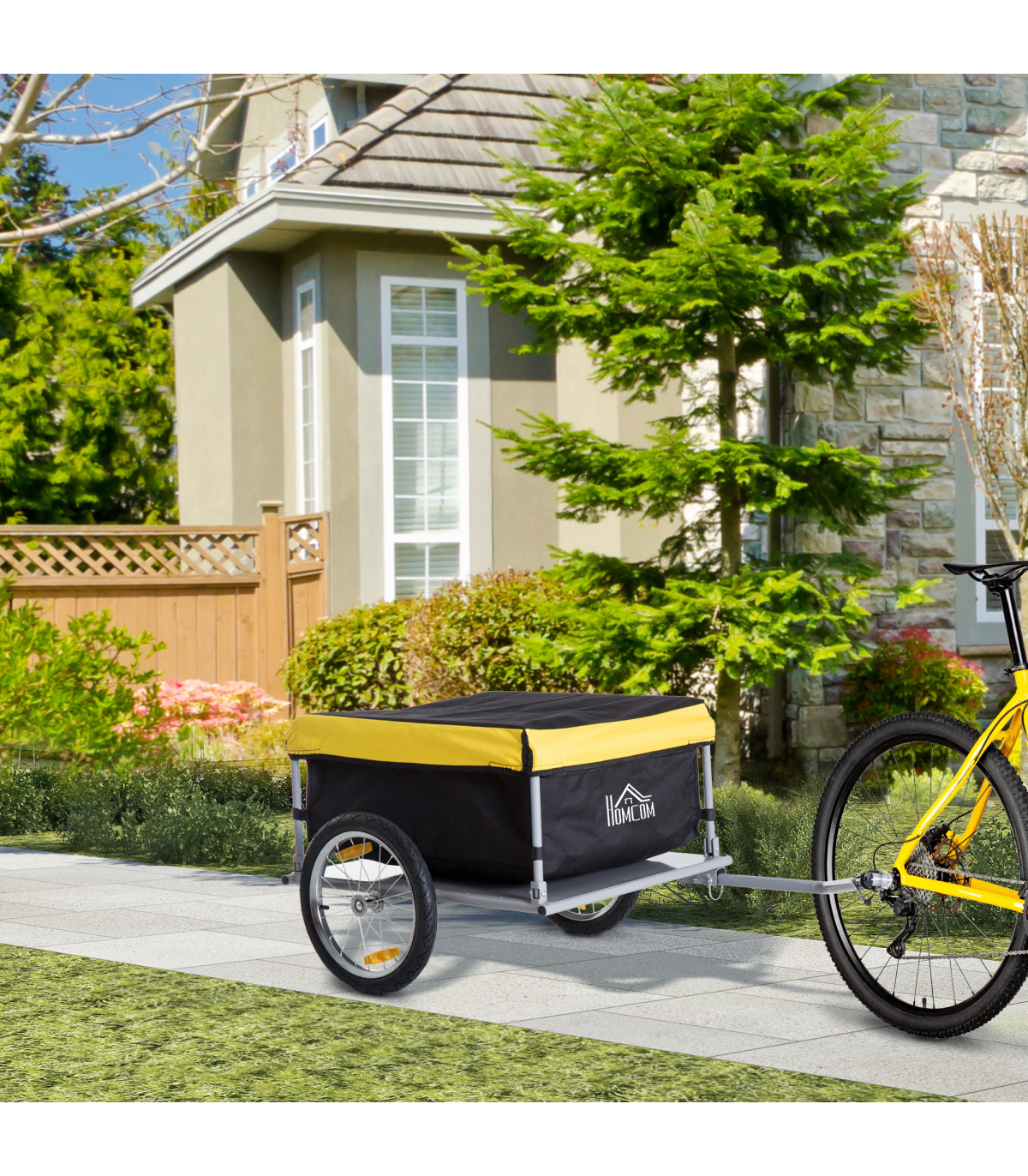 With this bicycle trailer from HOMCOM, the durable bag will keep all the contents safe and protected, with its bright yellow top making it visible to everyone. The bike trolley's solid steel base attaches to your bike quickly and gives the carry bag a balanced and safe platform. Features two wheels for smooth movement, with reflectors for safety in the dark. Both wheels are detachable so that you can easily pack and store this trailer. Attach our camping trailer to your bike back and go!