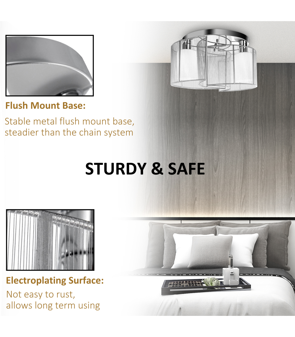 Stable metal Flush Mount base, steadier than the chain system
