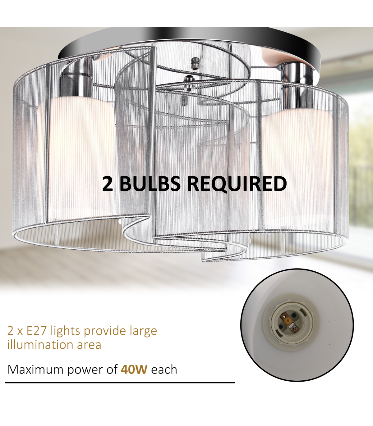2 x E27 lights source, large illumination area