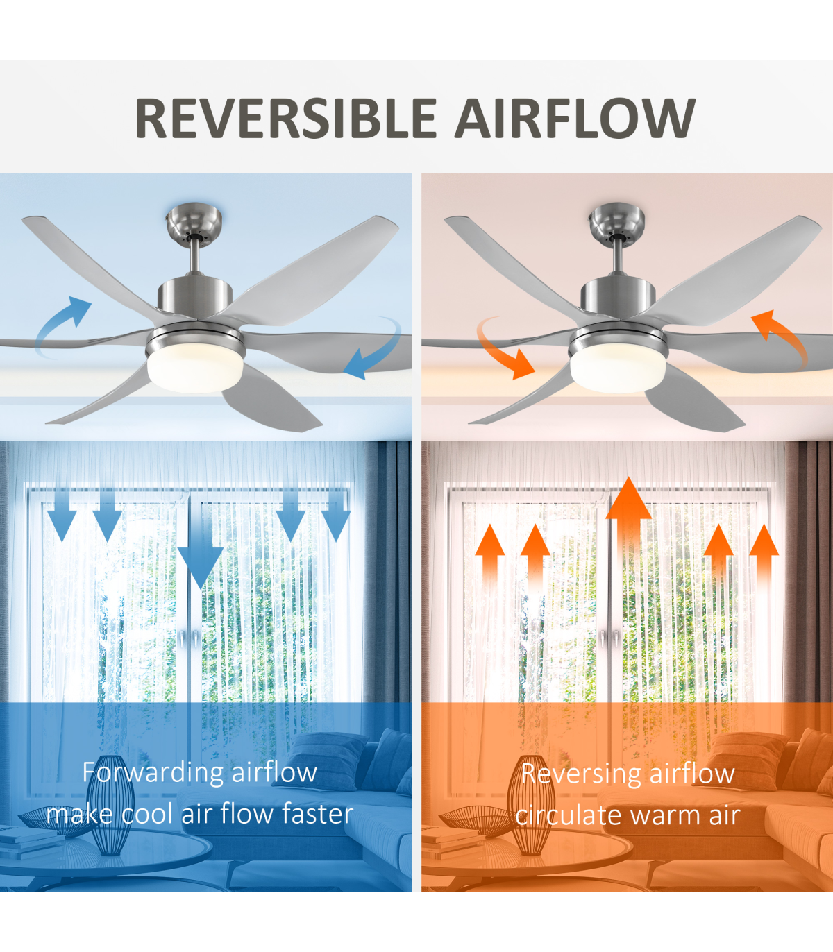 Forwarding airflow make cool air flow faster in summer, reversing airflow make bottom air of room warm in winter, when it work with air conditioner