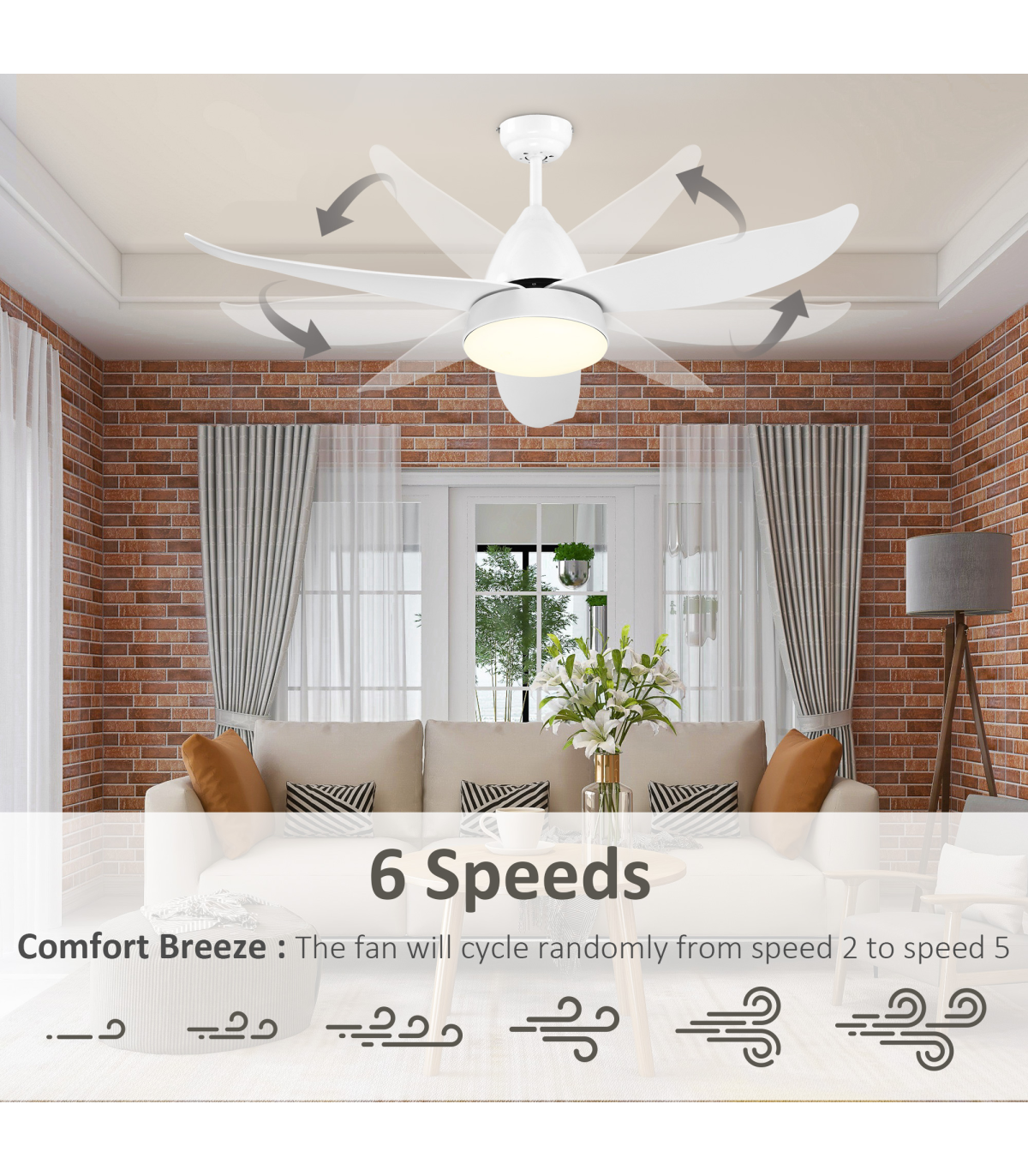 Features 6 speeds, comfort breeze mode will cycle randomly from speed 2 to speed 5