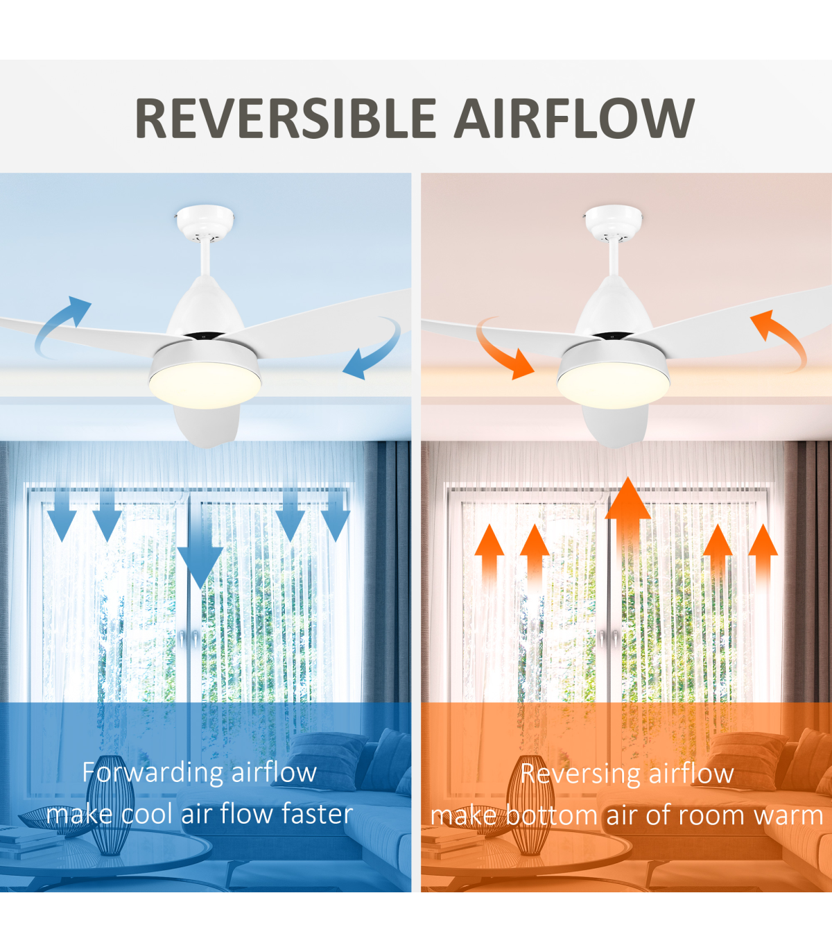 Forwarding airflow make cool air flow faster in summer, reversing airflow make bottom air of room warm in winter, when it work with air conditioner