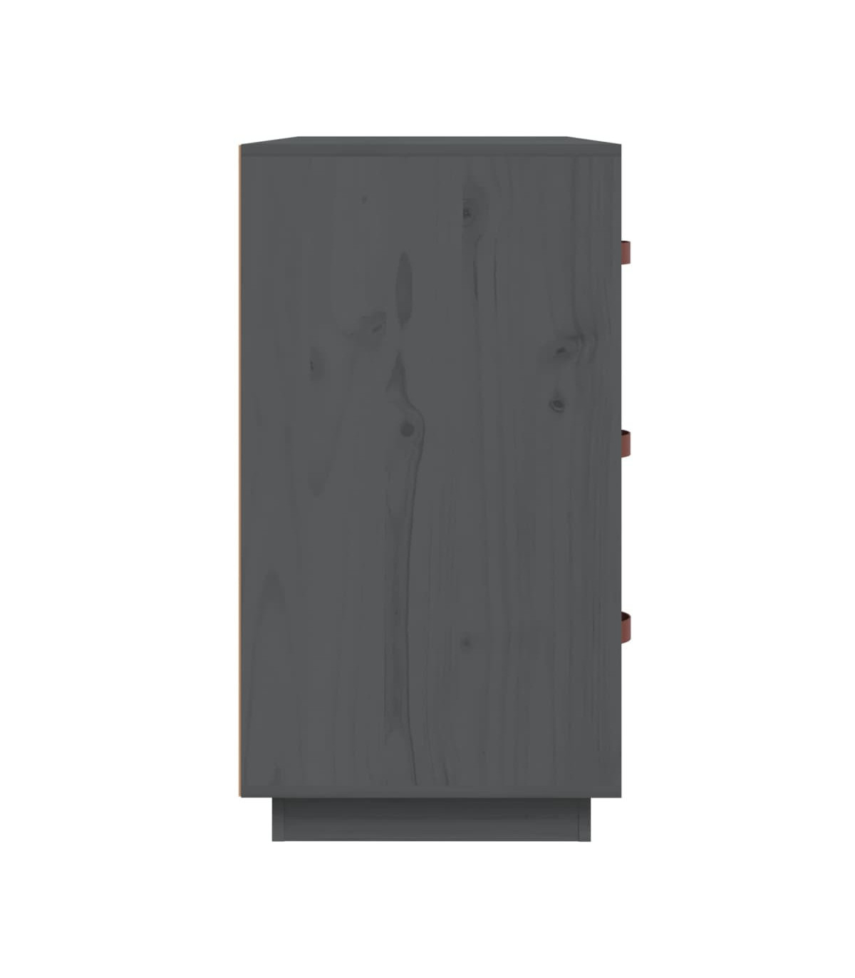 This wooden sideboard is meant to become an ideal complement to your room with its practical utility. Solid pine wood: This sideboard cabinet is made of solid pine wood. Solid pine wood is a beautiful natural material. Pine wood has a straight grain, and the knots give the material its signature, rustic look.Ample storage space: This cupboard features 3 spacious drawers, providing ample storage space for storing knick-knacks and keeping your magazines, books, DVDs and multimedia devices well organised.Sturdy top: The sturdy tabletop of the side cabinet is ideal for displaying your decorative objects, photo frames, or potted plants. Warning:To prevent it from tipping over, this product must be used with the provided wall attachment device.