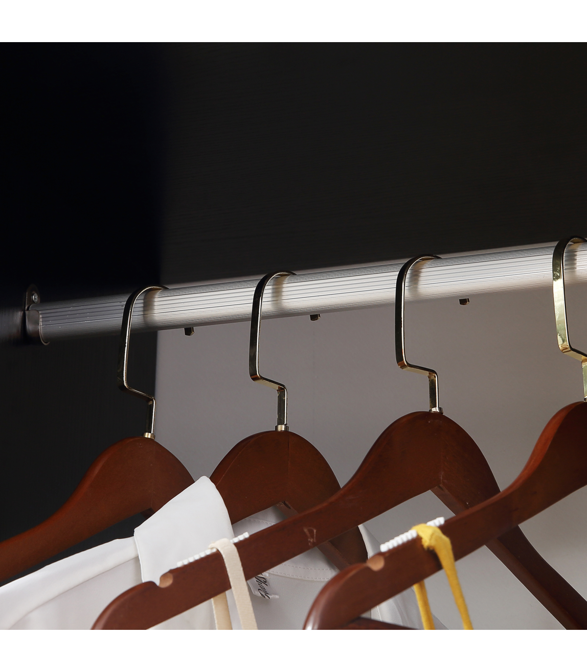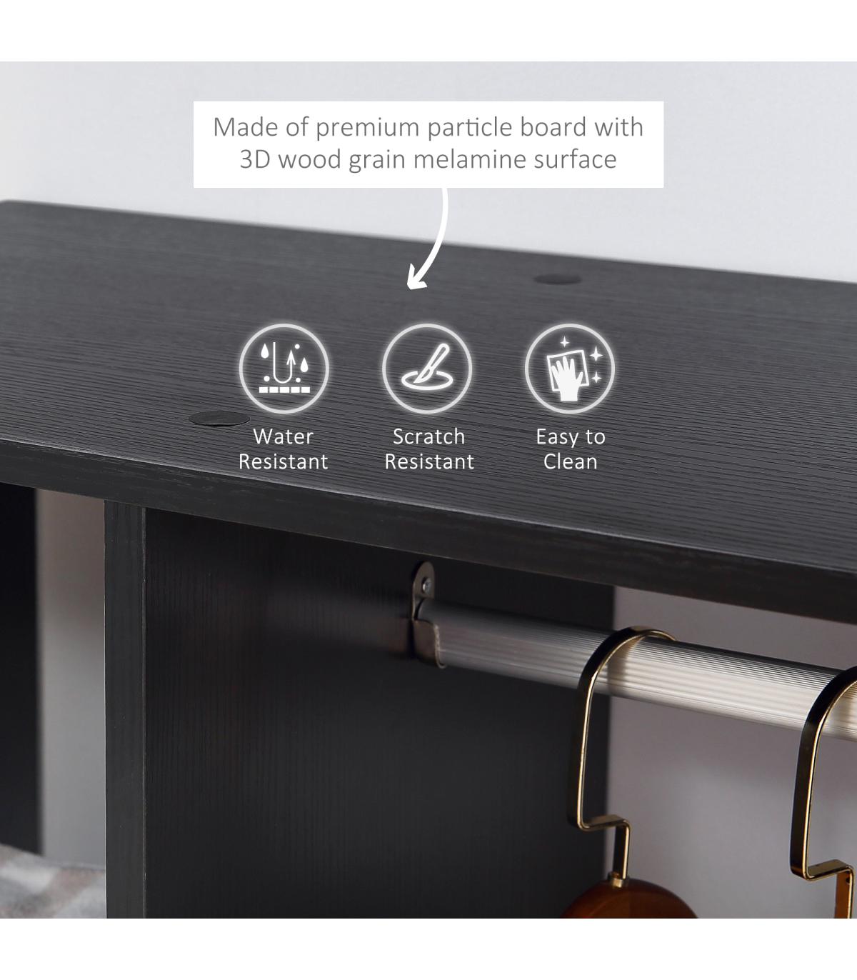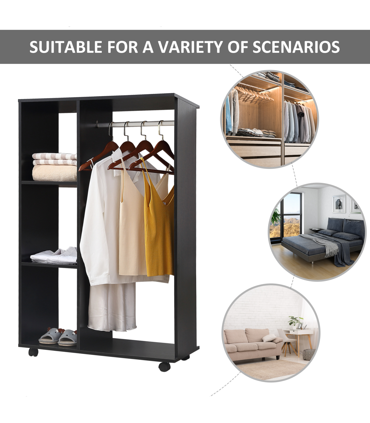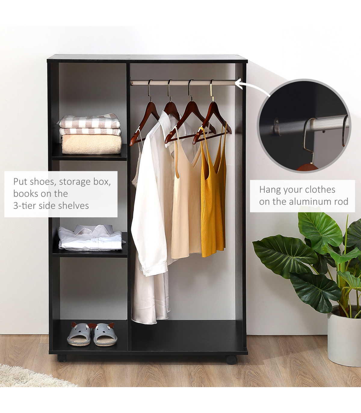 Rolling Open Wardrobe Hanging Rail Storage Shelves for Clothes, Black