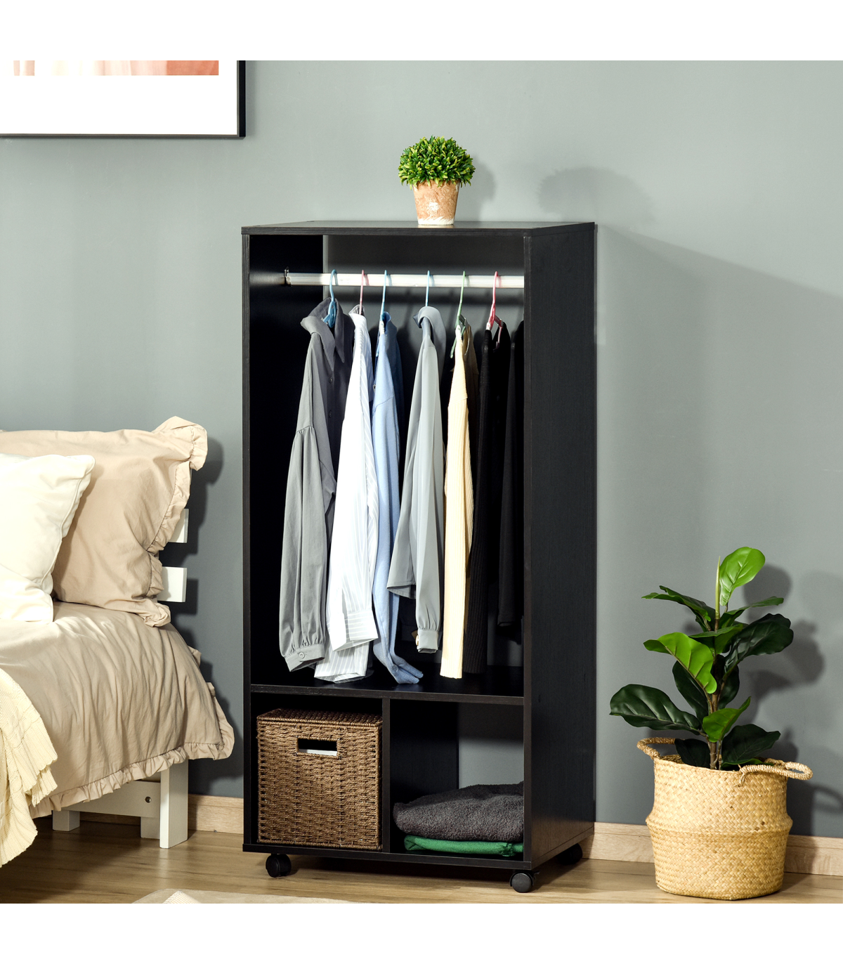 Open Wardrobe Clothes Rail Bedroom Clothes Storage Rod Shelves Black