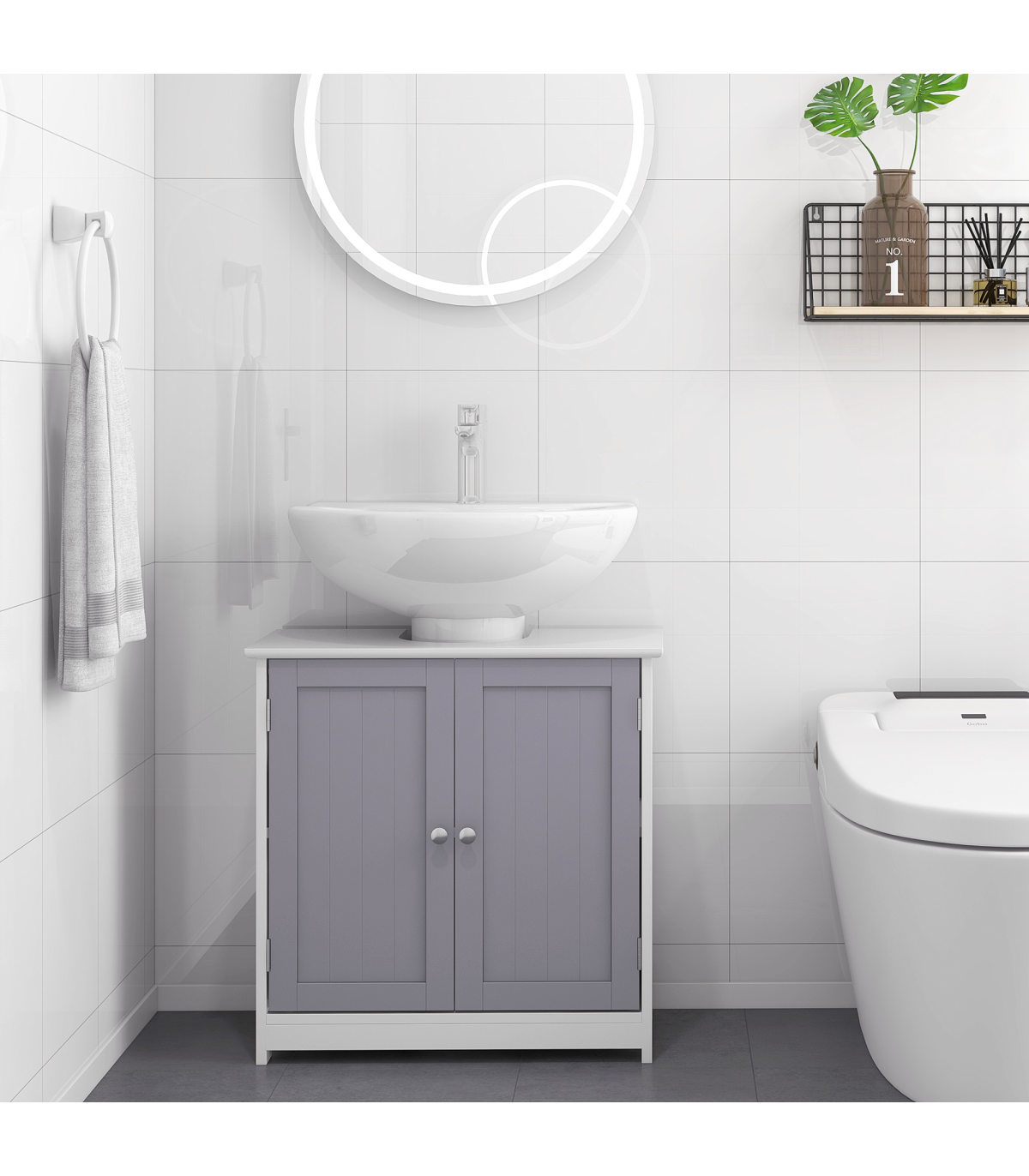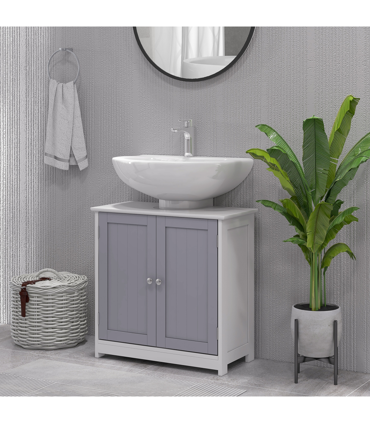kleankin 60x60cm Under-Sink Storage Cabinet w/ Adjustable Shelf Grey White