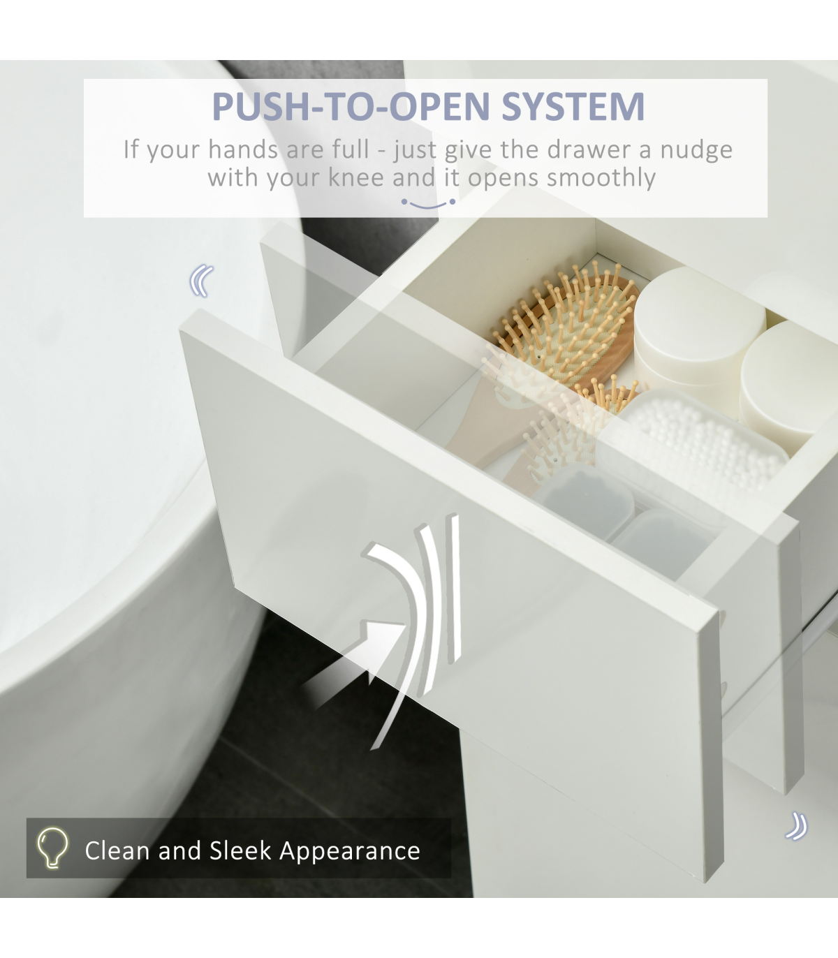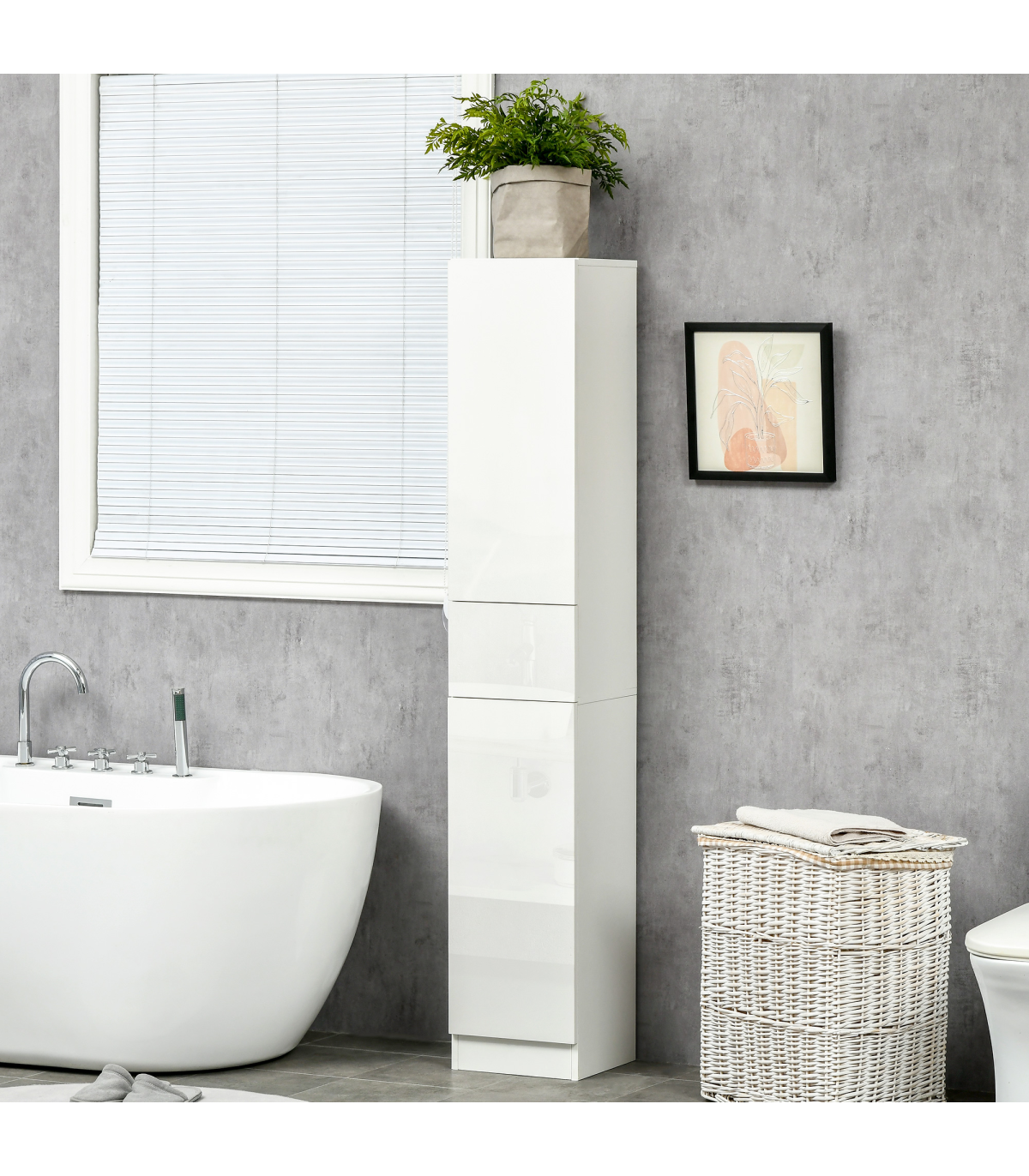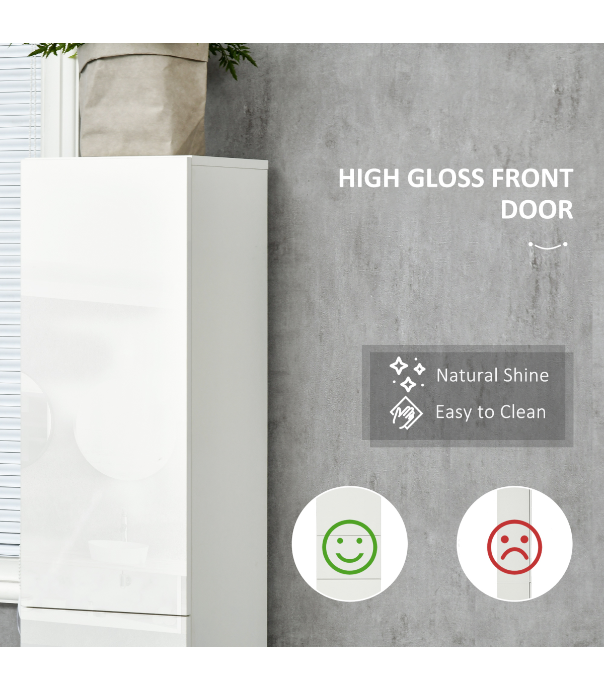 Modern style for the bathroom, thanks to this slim bathroom cabinet from kleankin. The super sleek high gloss finish has a natural shine, enhancing the feel of light and space. Push openers are mounted inside drawers to replace knobs and handles. This bathroom storage pantry is great for use in shared households. Finished with an anti-tipping straps on the back to prevent it from falling forwards.