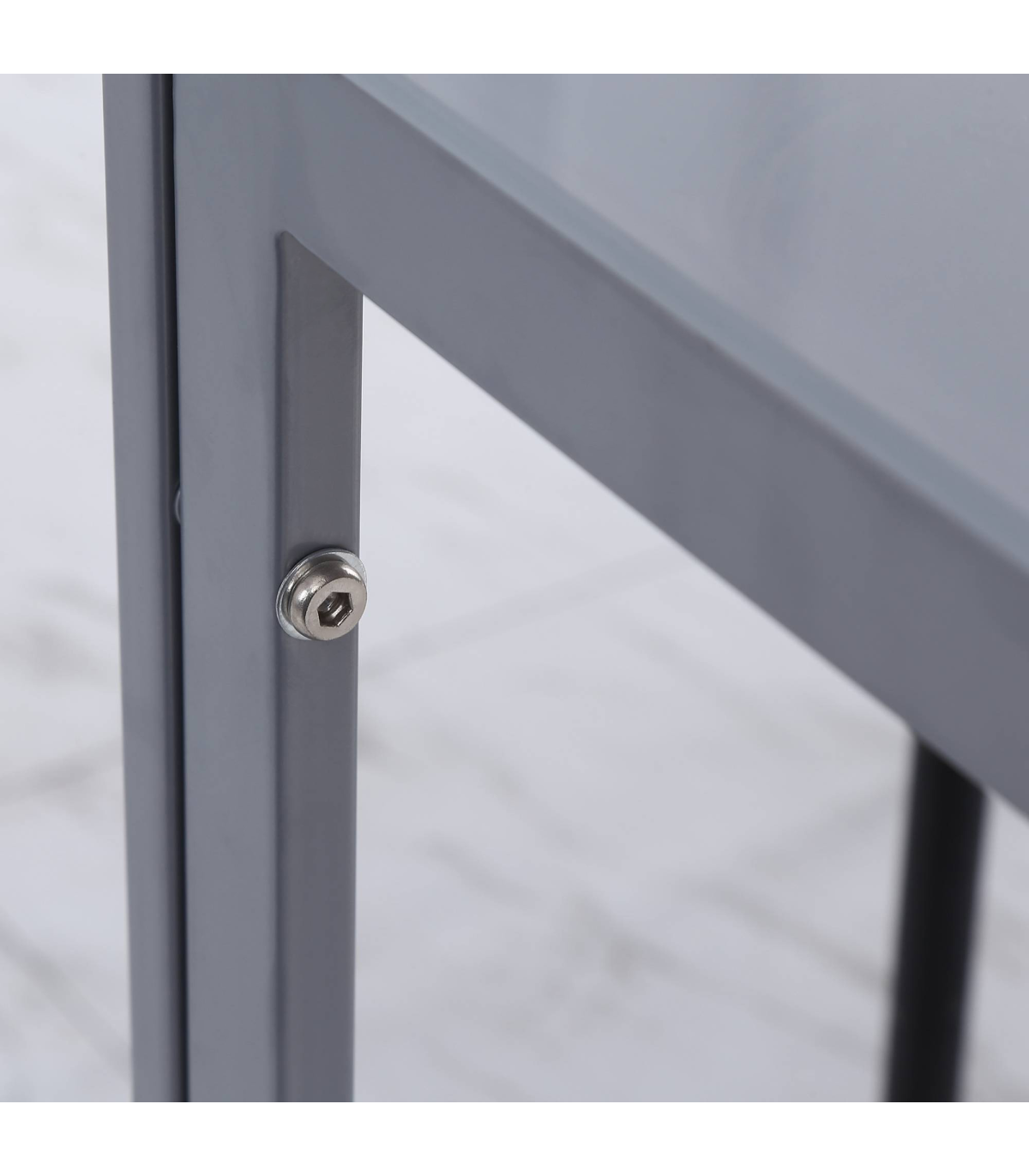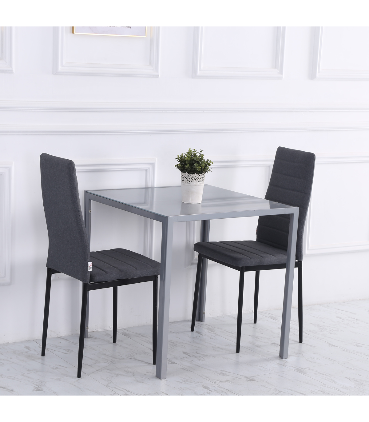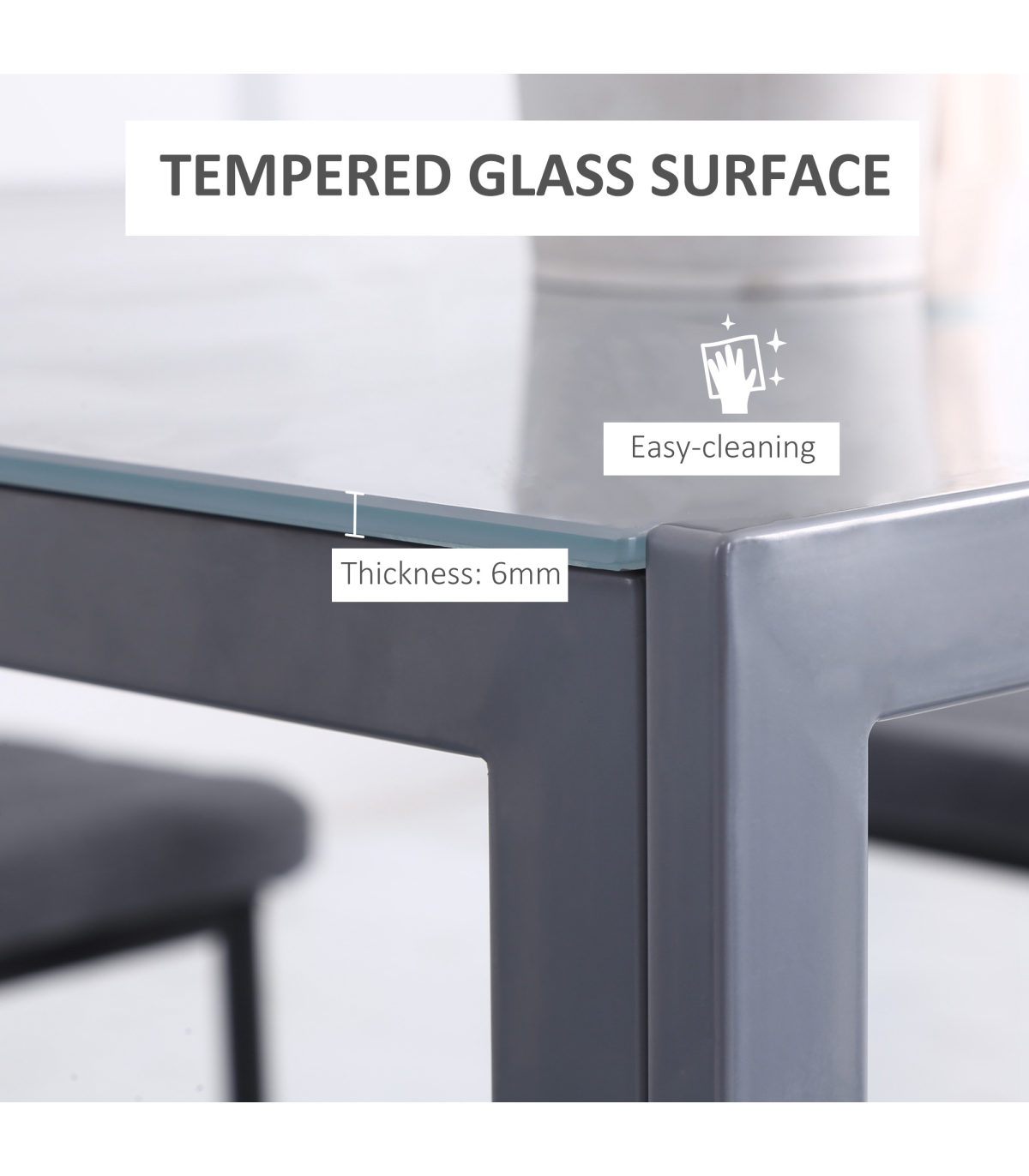 GLASS TABLE TOP: A sleek look to bring a modern feel into your dining areas, in the home and kitchen. Also ensures a solid and safe place to eat and drink from.STEEL FRAME: Powder coated for extra strength, a solid core structure to support the whole structure Square legs to keep stable.COMPACT SIZE: Small square shape is compact - perfect for smaller kitchens. Enjoy meals by yourself or with a friend.DIMENSIONS: 75H x 75L x 75Wcm. Glass: 6mm.MAXIMUM LOAD 80KG. ASSEMBLY REQUIRED.