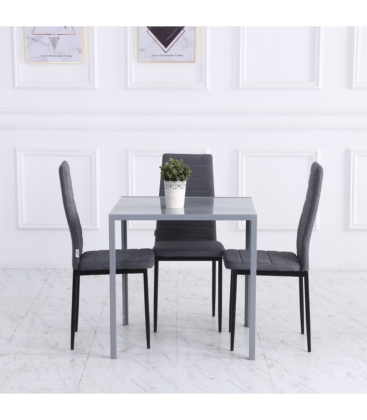 Modern Square Dining Table with Tempered Glass Top & Metal Legs