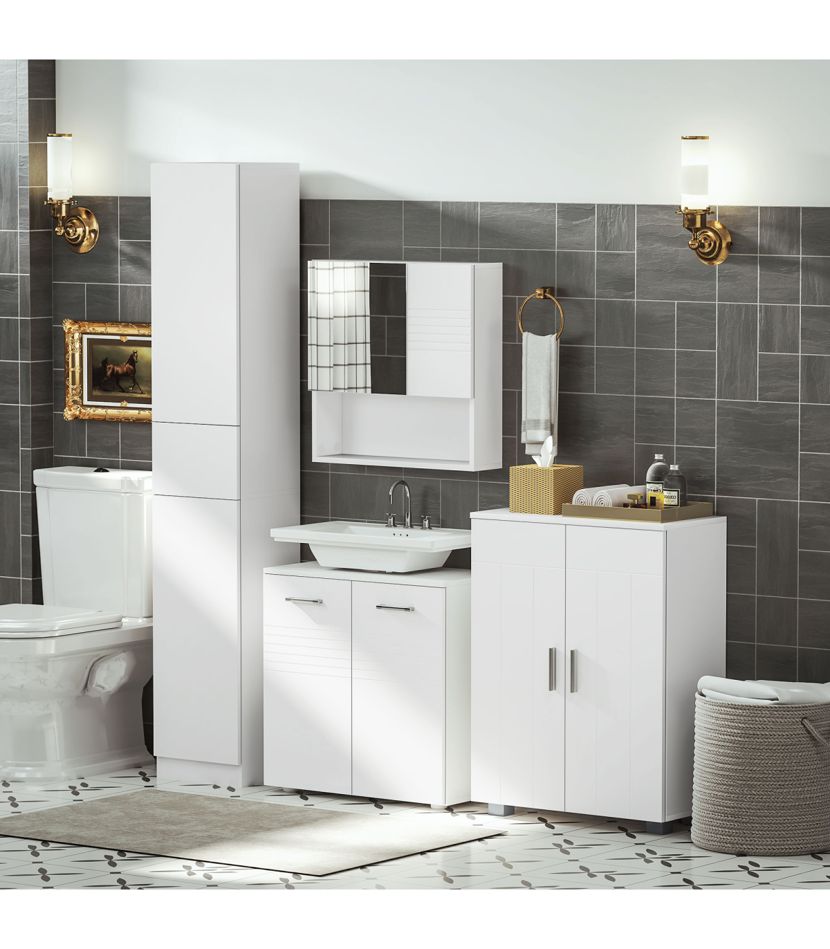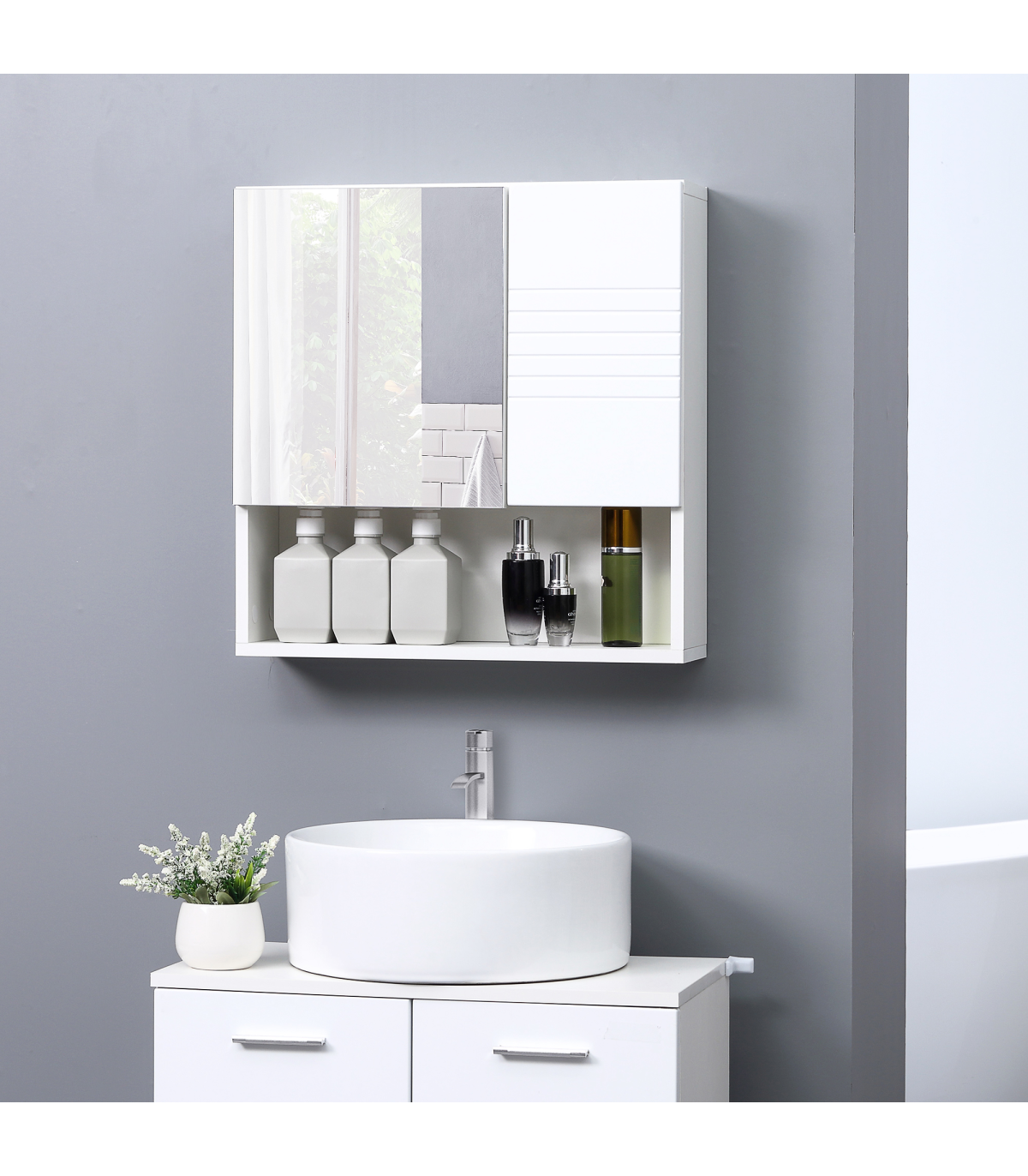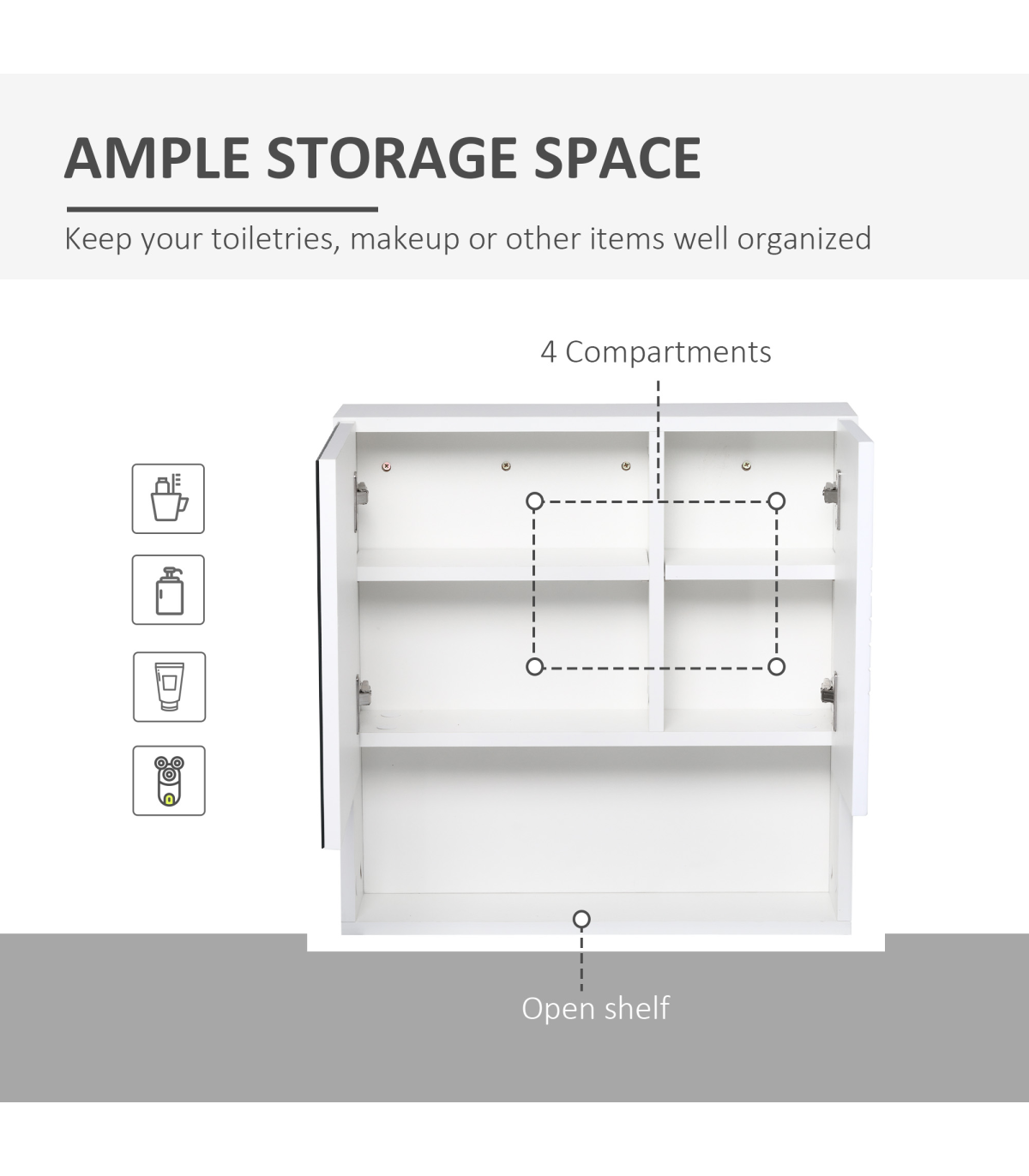 kleankin Bathroom Wall-Mounted Mirror Cabinet Double Door Adjustable Shelves