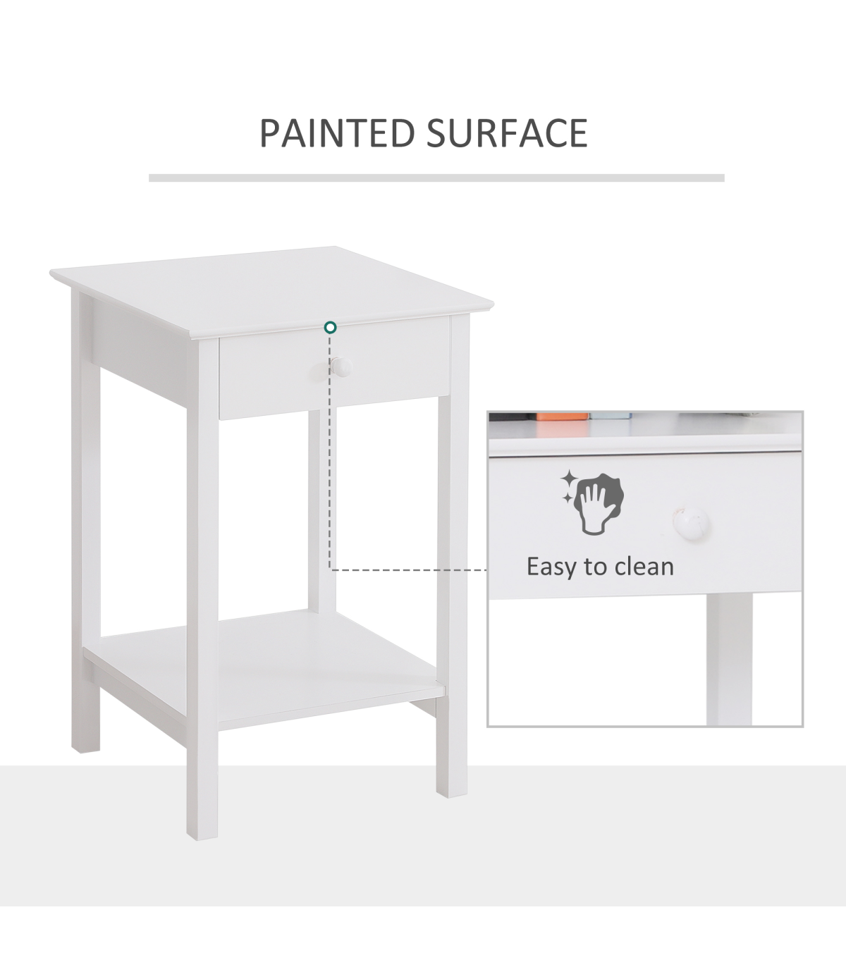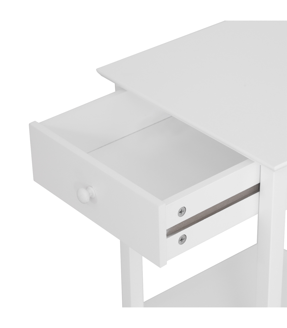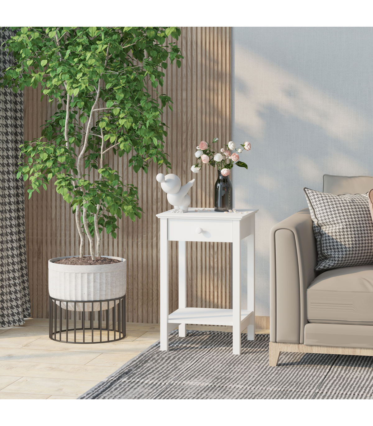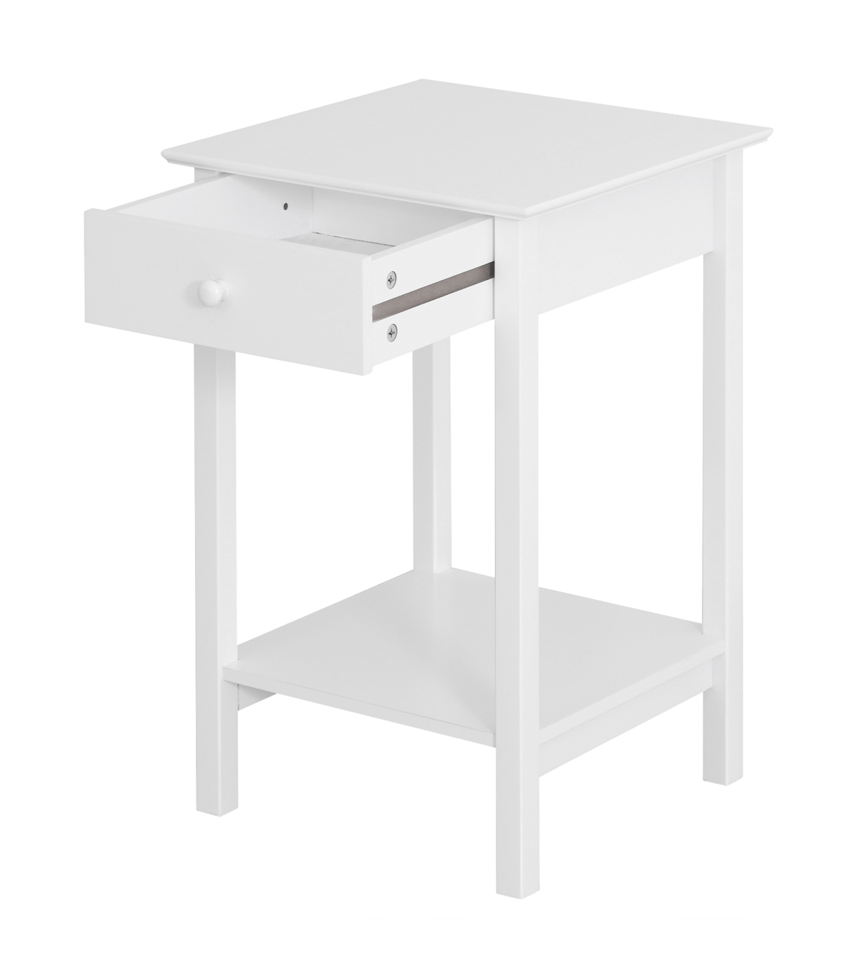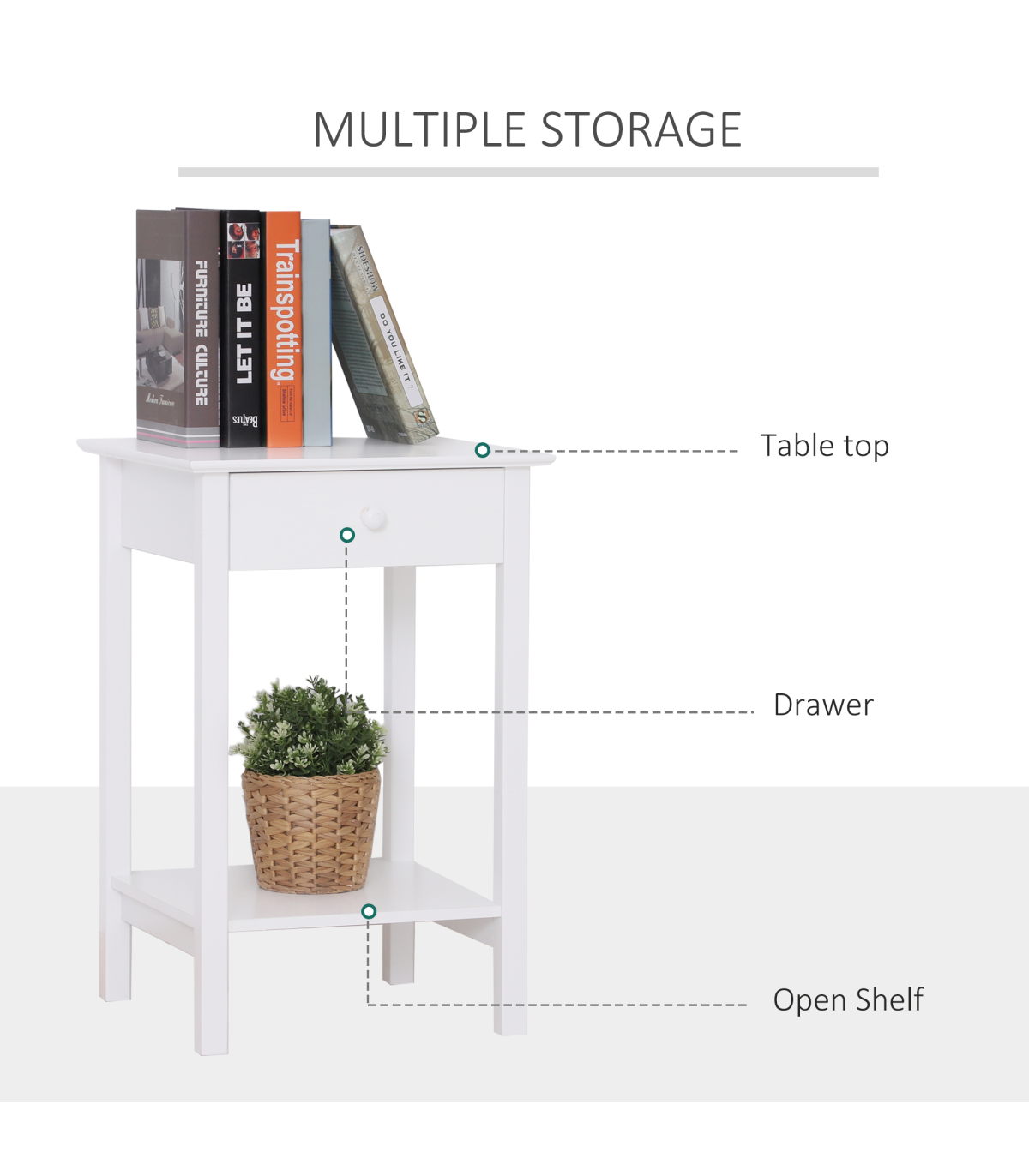 Wooden Bedside Table Cabinet W/ Drawer Shelf Storage End Side White