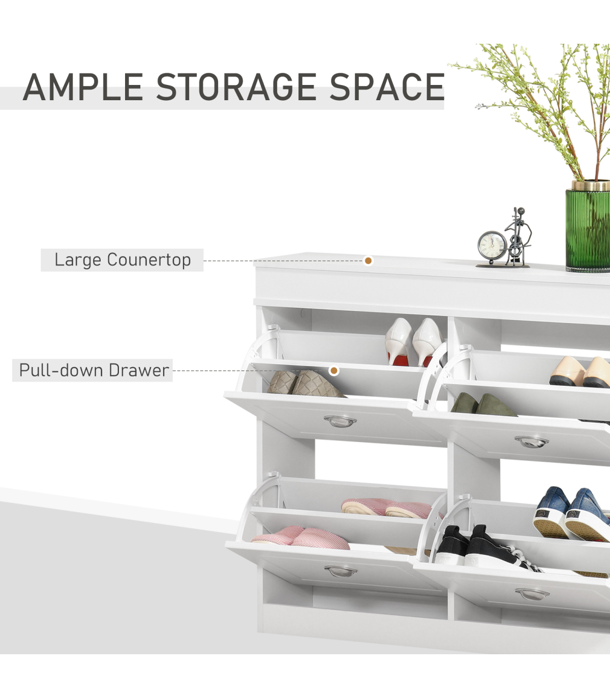 - SPACE-SAVING: Includes 4 tipping doors with a convenient handle, allowing easy access to your shoes. The space-saving and efficient design is suitable for limited spaces.