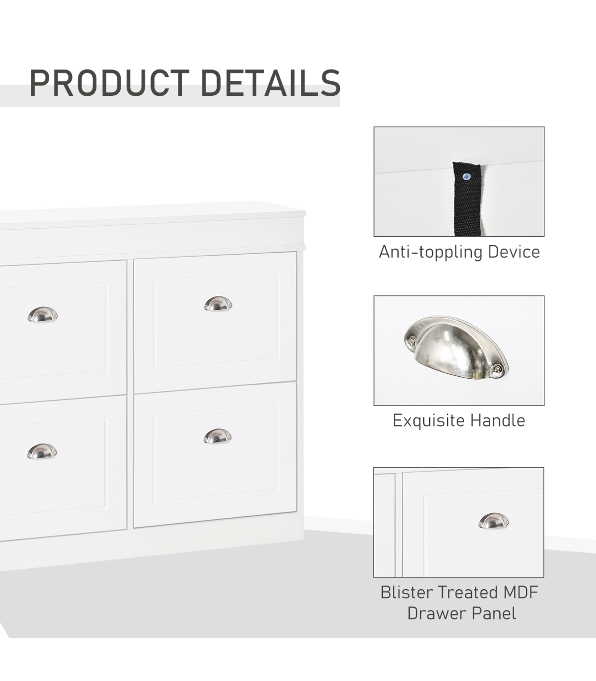 - STURDY STRUCTURE: Made with a particleboard frame and MDF drawer panel with a blister treatment, ensuring strength and easy maintenance. Anti-toppling design at the back of the shoe cabinet enhances safety and security.