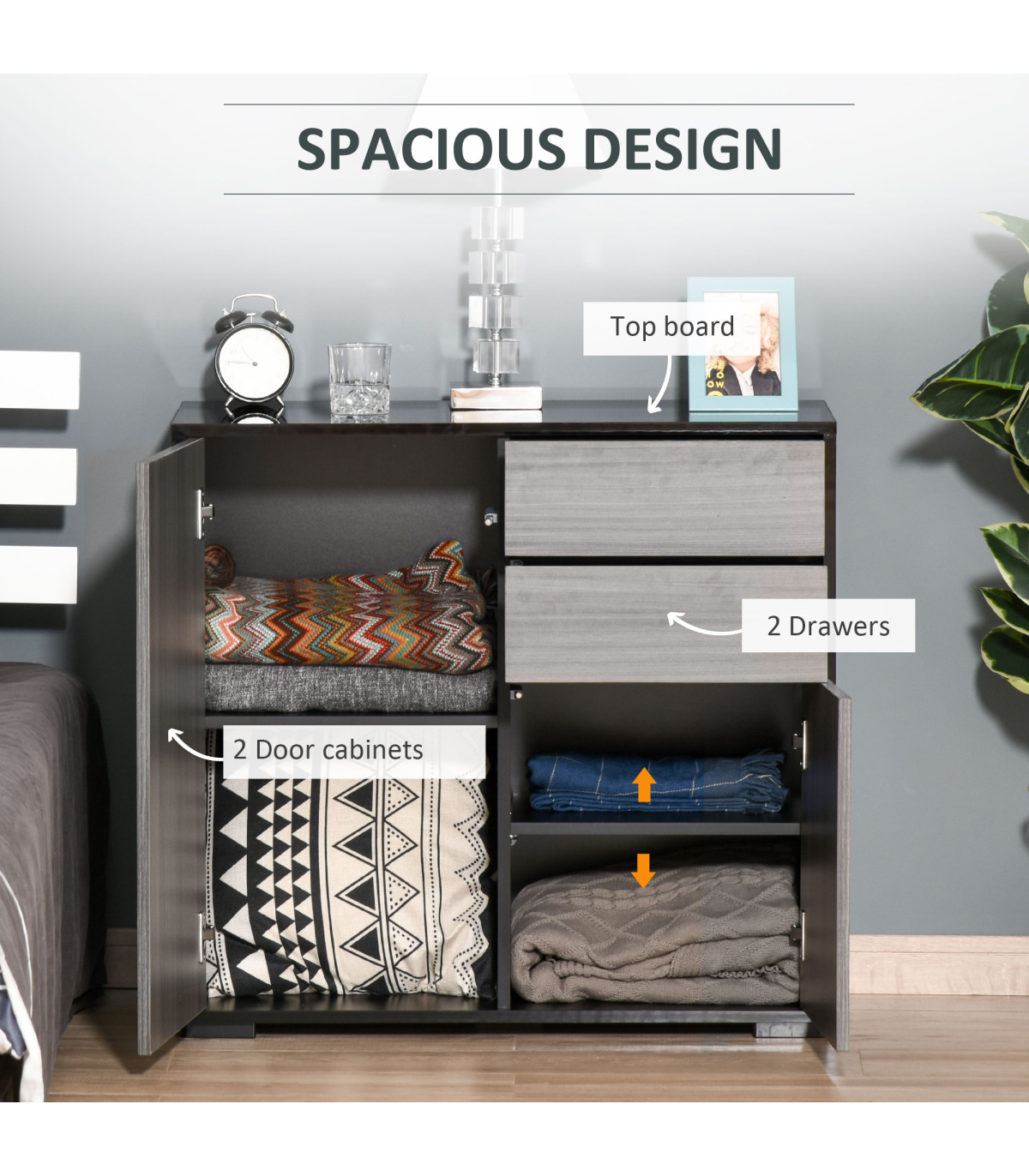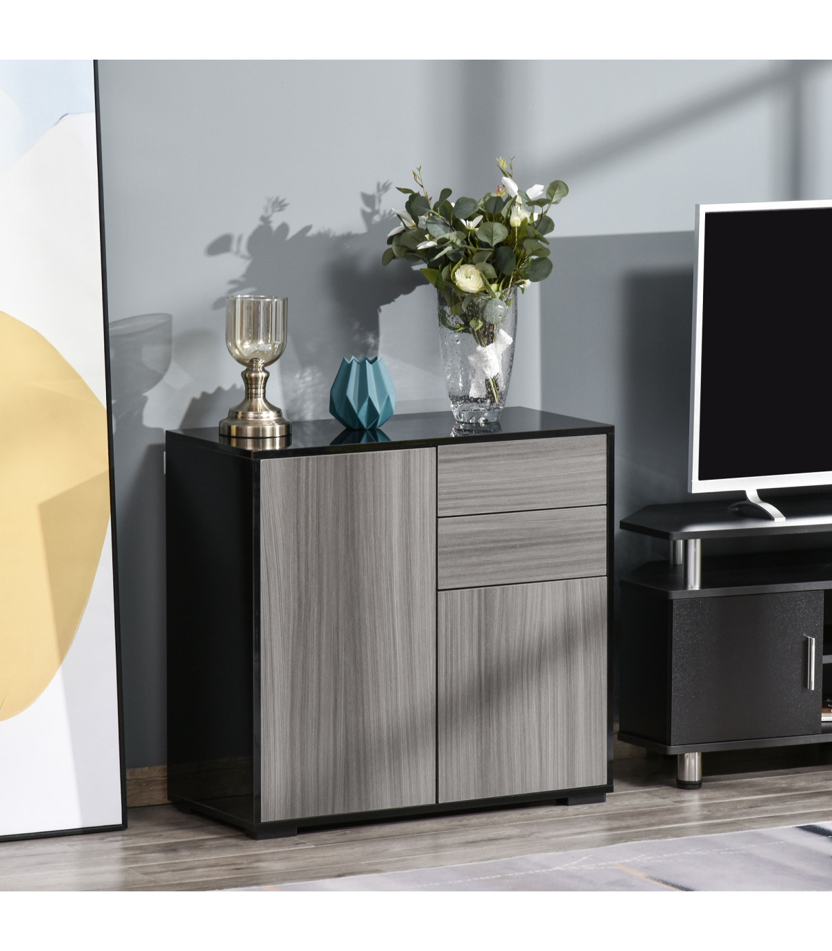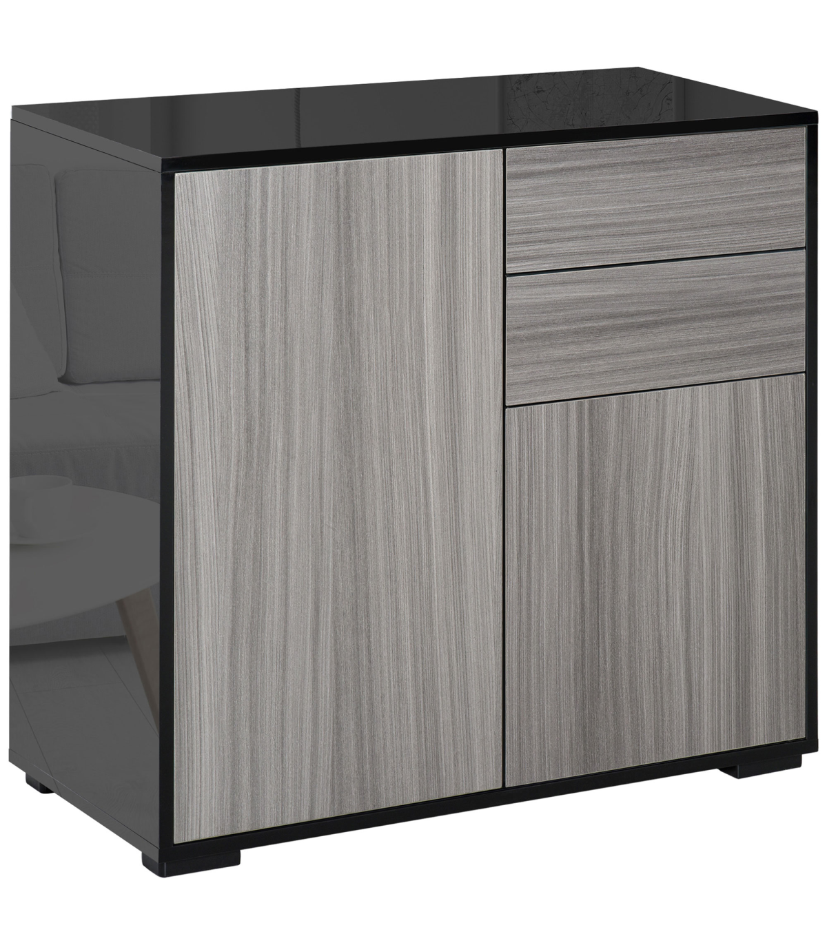Side Cabinet 2 Door Cabinet and 2 Drawer for Home Office Grey Black