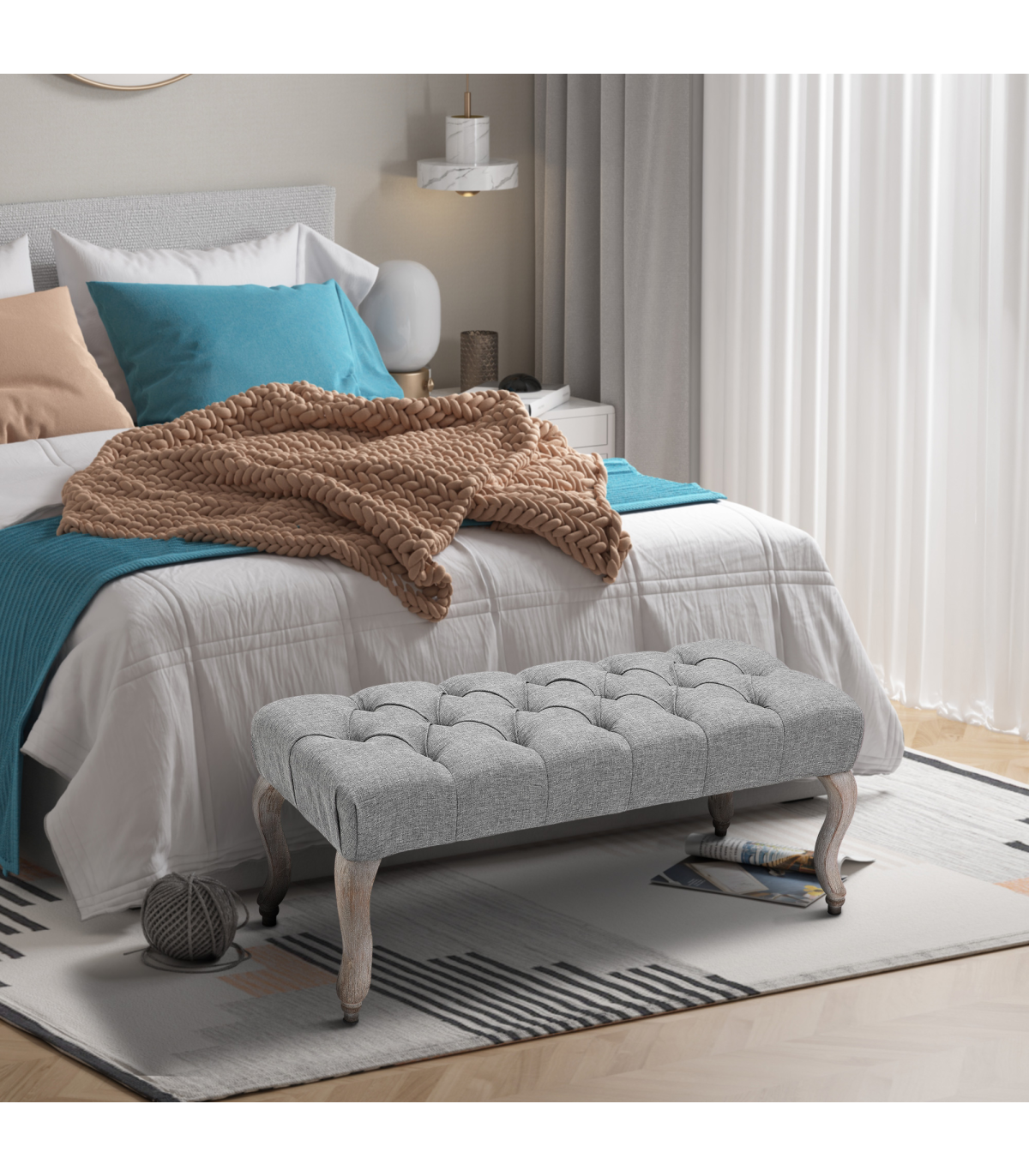 Tufted Upholstered Accent Bench Window Seat Ottoman Bed End Stool