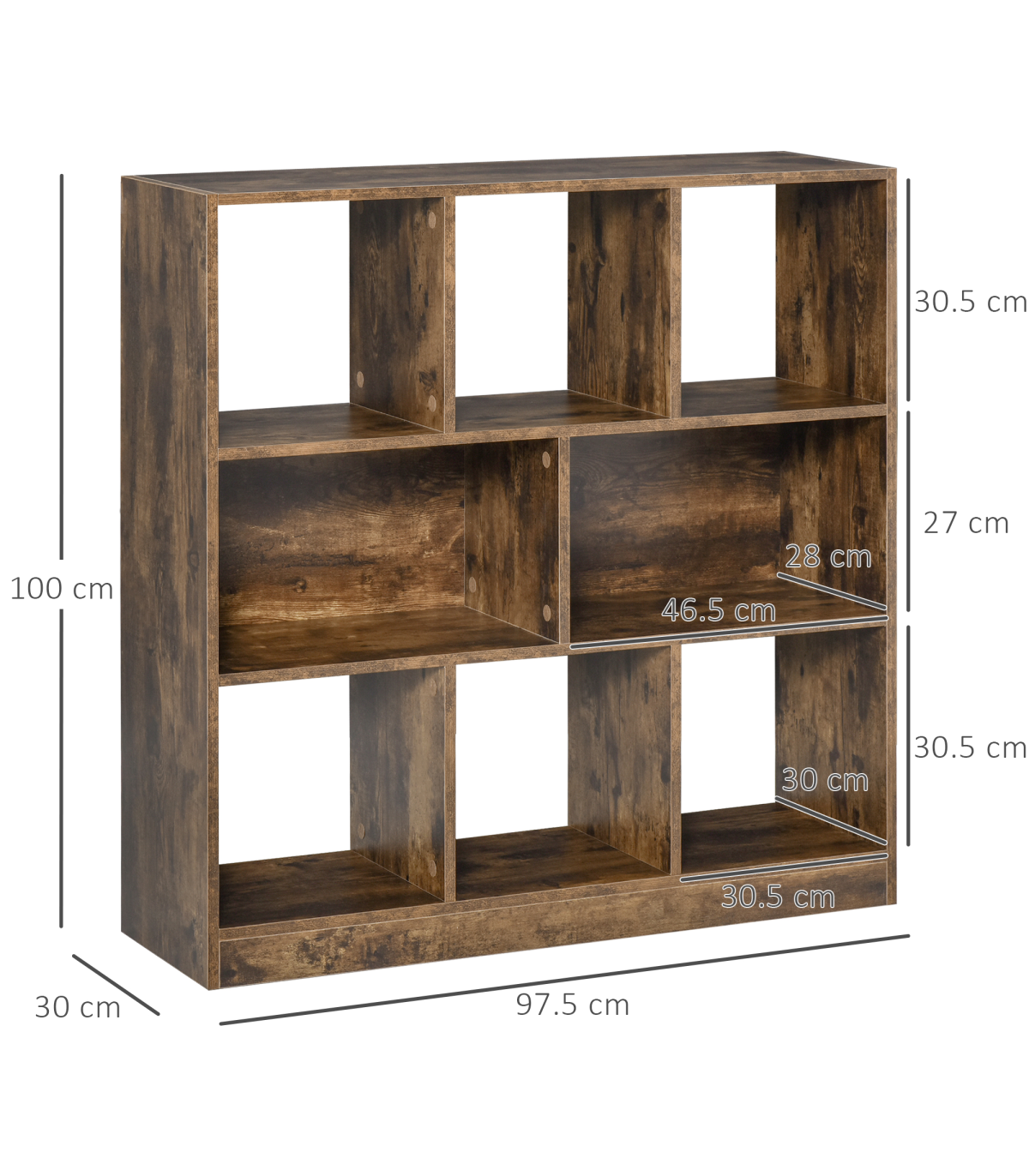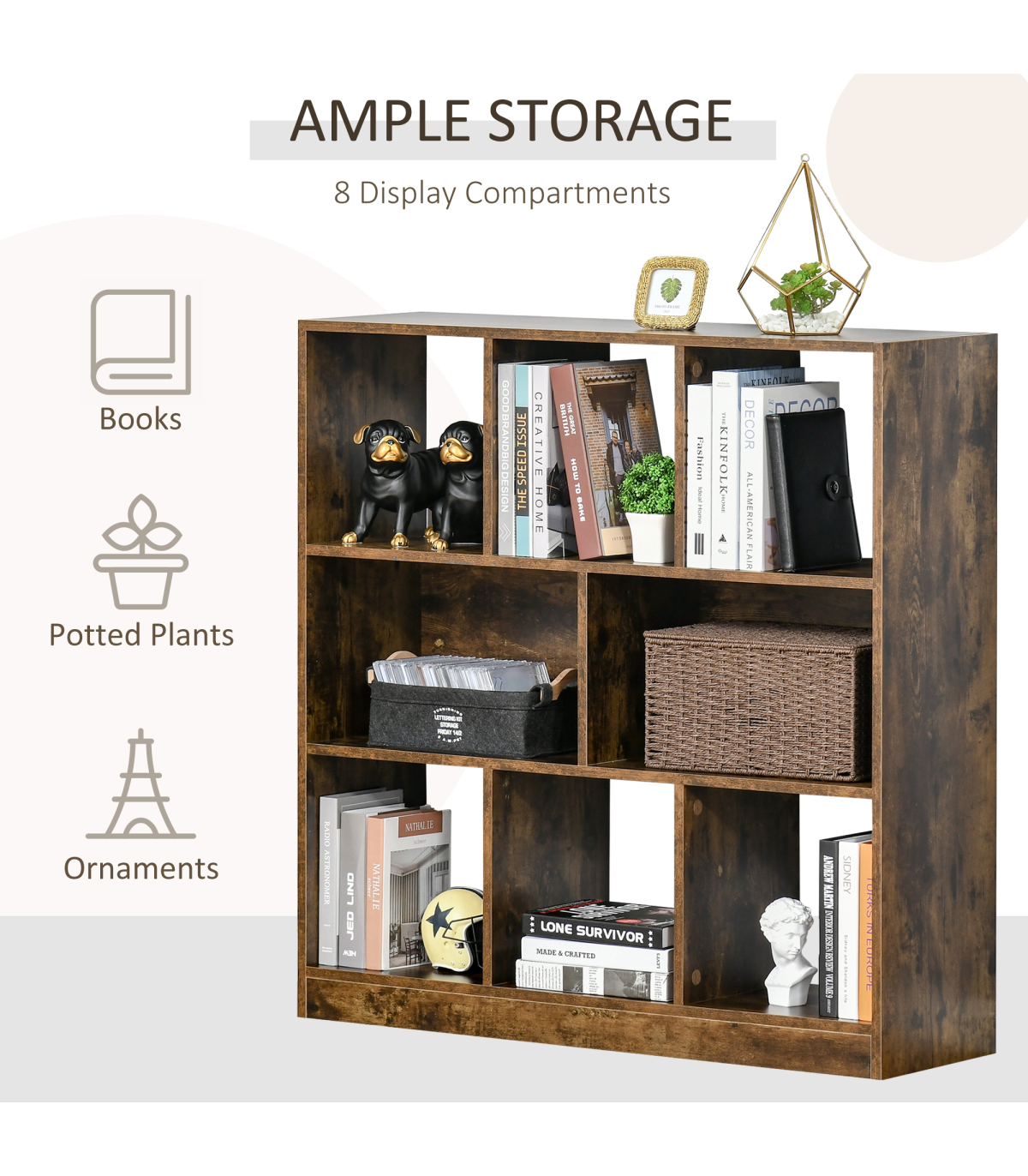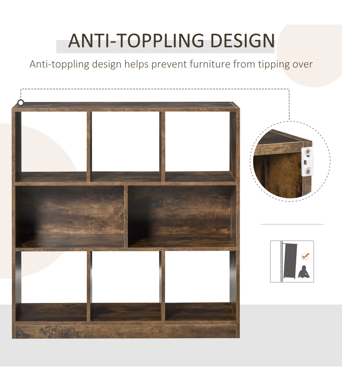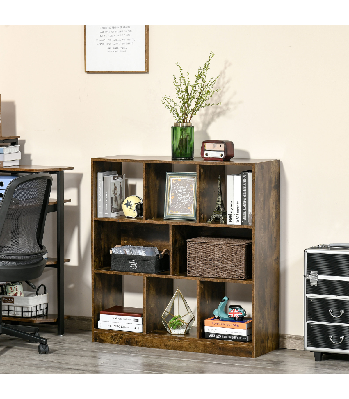MODERN STYLE: Clean appearance and sleek surface give it a neutral aesthetic, making it suitable for various interior settings.SUFFICIENT STORAGE & DISPLAY SPACE: 3-tier shelves with 8 staggered dividers offer plenty of room for books, plants, photos, ornaments, small decors, and other home accentsANTI-TOPPLE: This freestanding furniture features an anti-toppling design and can be fixed to the wall to prevent it from tipping overDURABLE MATERIAL: Made of MDF for easy cleaning and low maintenance. Back support panels in 2 middle shelves prevents items from falling outOVERALL DIMENSION: 97.5W x 30D x 100Hcm, Weight Capacity: 50kg (whole), 5kg (shelf)