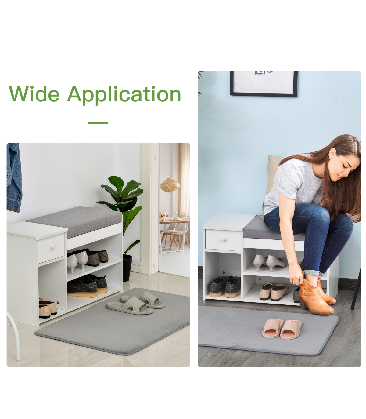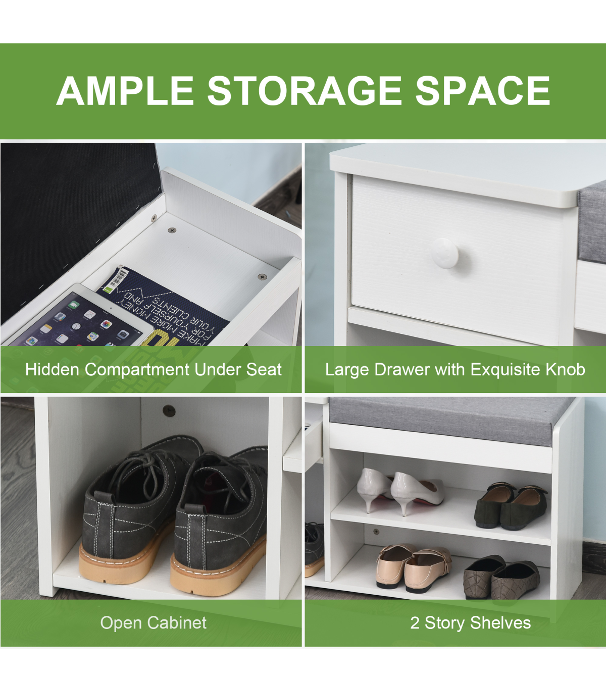Multi-Storage Shoe Bench Drawer 3 Compartments Cushion Home Boots White