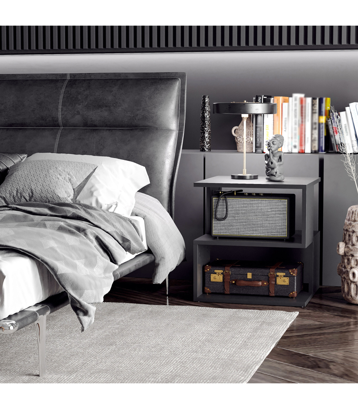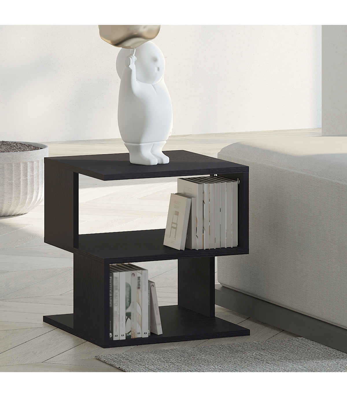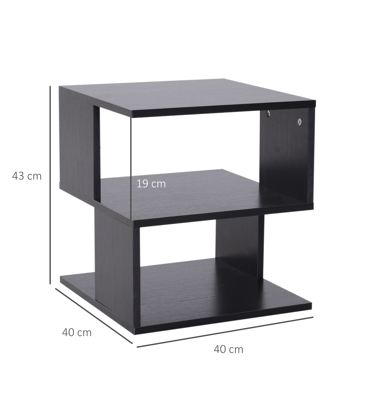 UNIQUE DESIGN: The perfect focal point for any room.SPACIOUS: Two-tier open shelf design is great for storing and displaying your possessions.STURDY CONSTRUCTION: Made from particle board for strength and durability.SMOOTH SURFACE: Easy to maintain and look after.LIGHTWEIGHT: Can be moved around easily. DIMENSIONS: 43H x 40L x 40Wcm. MAXIMUM WEIGHT CAPACITY 10KG. ASSEMBLY REQUIRED.