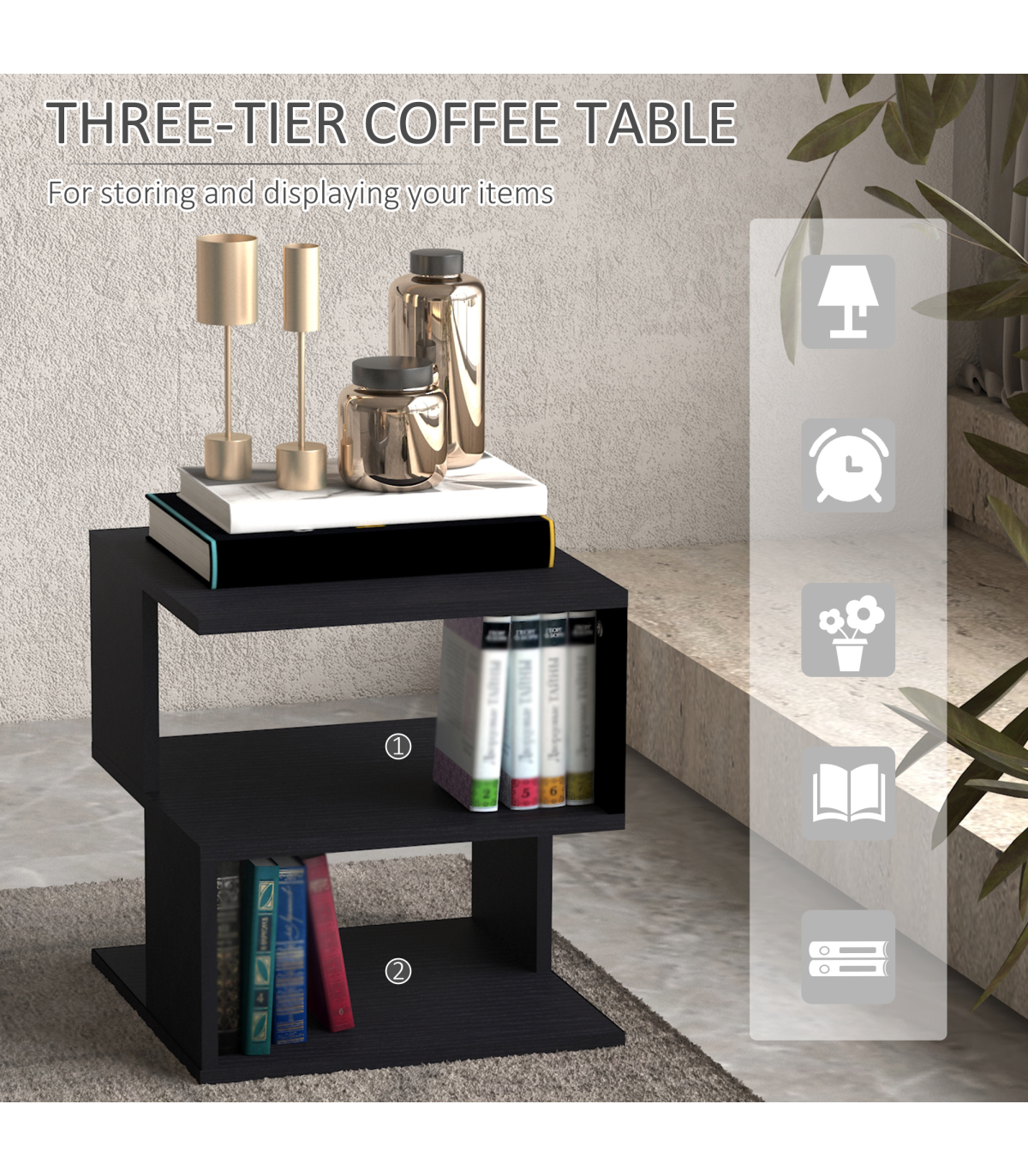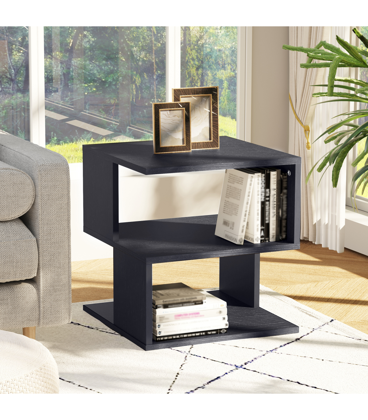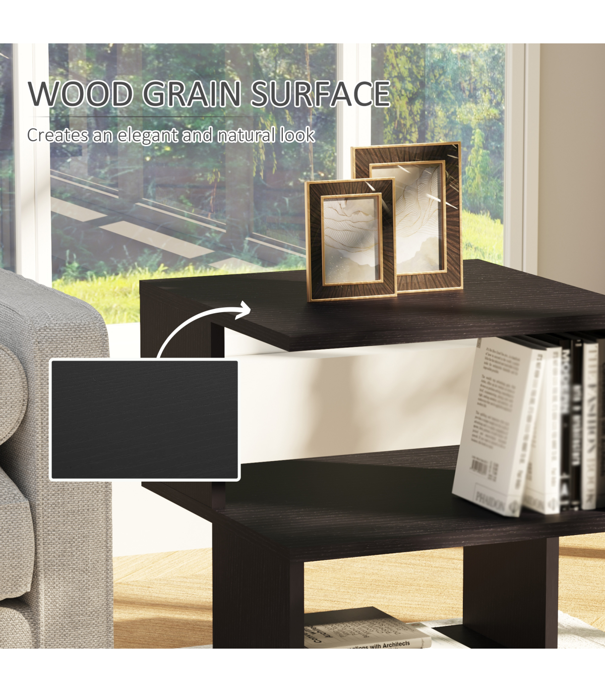 Modern Square 2 Tier Wood Coffee Side Table Storage Shelf Rack Black
