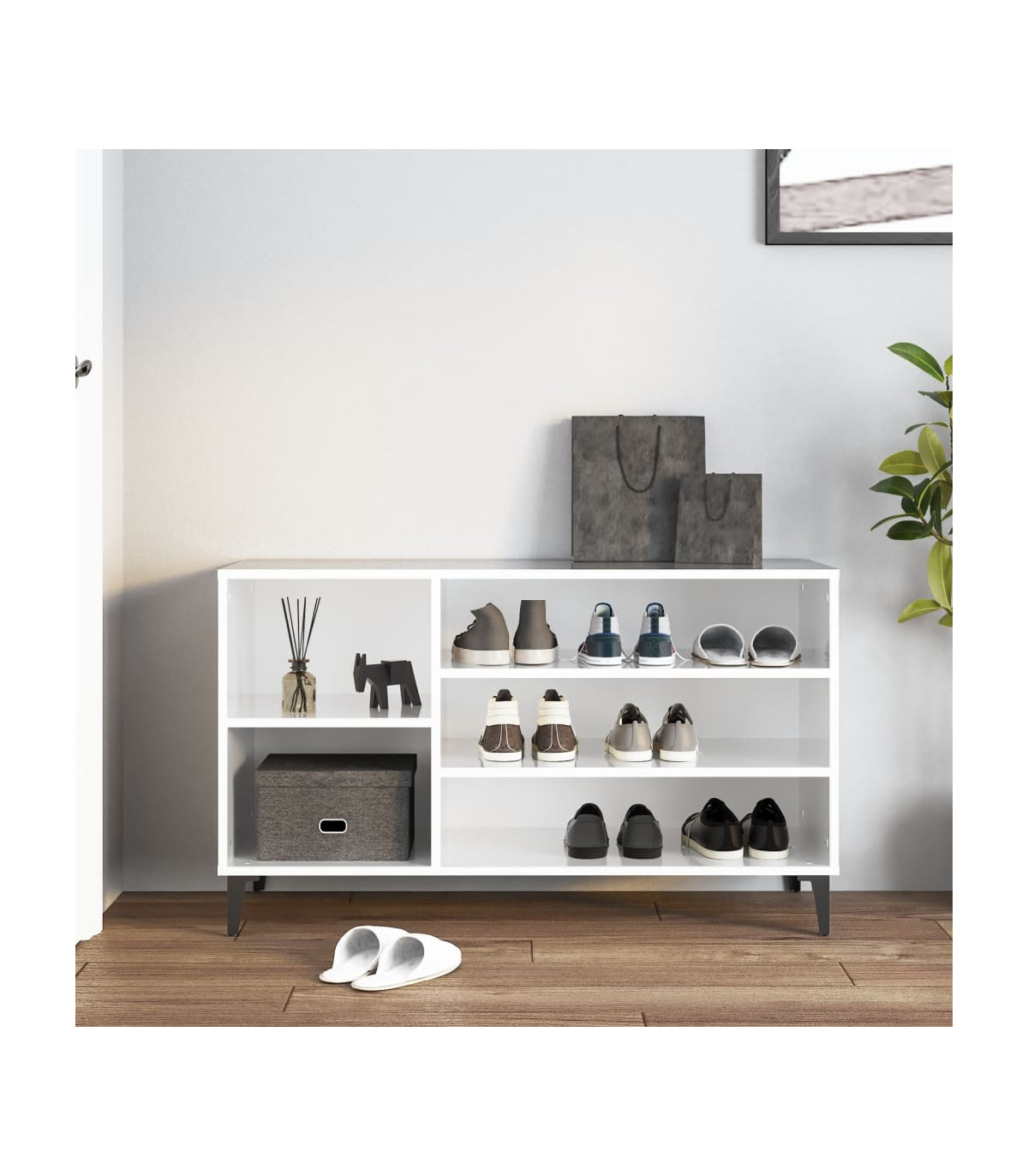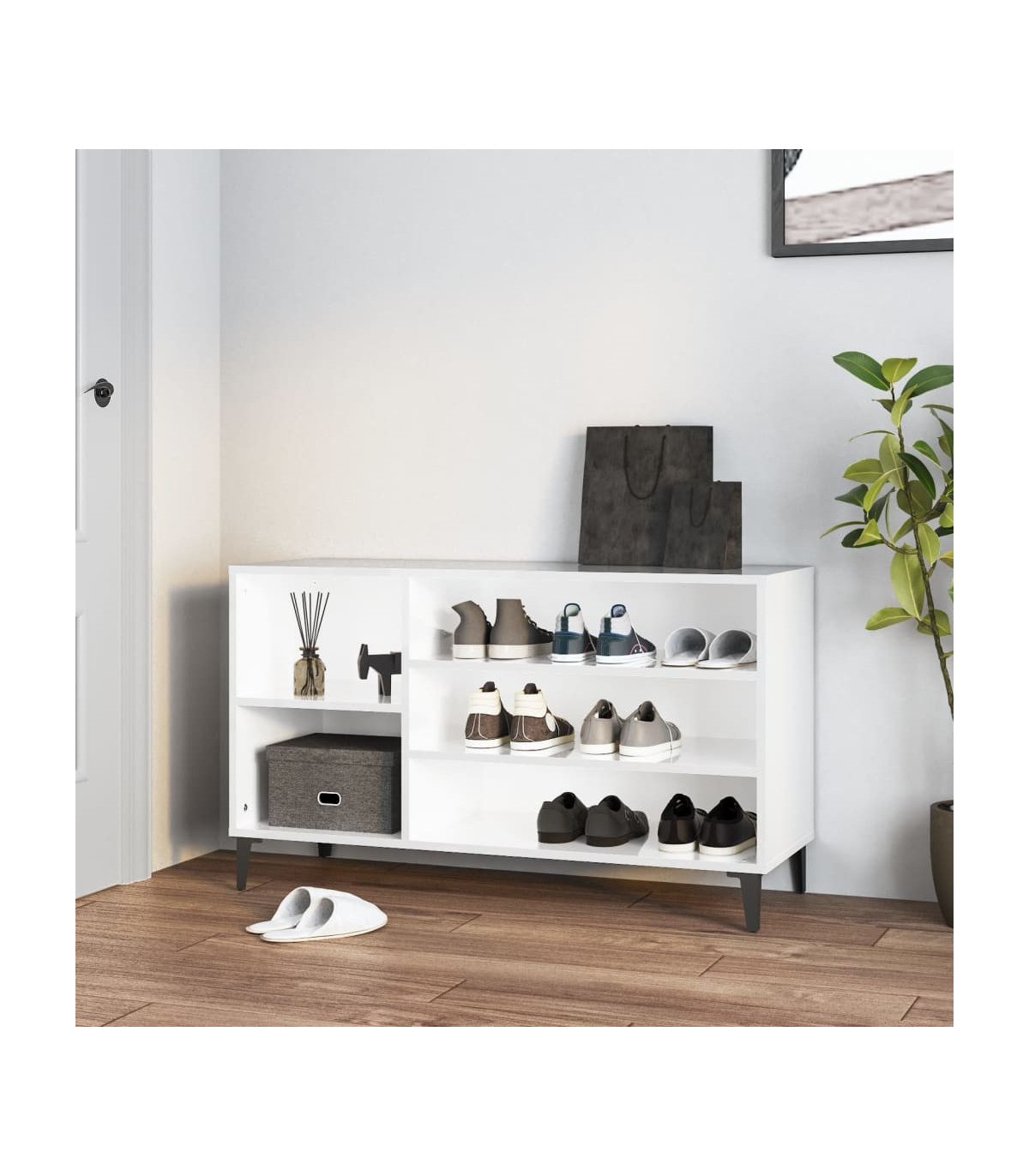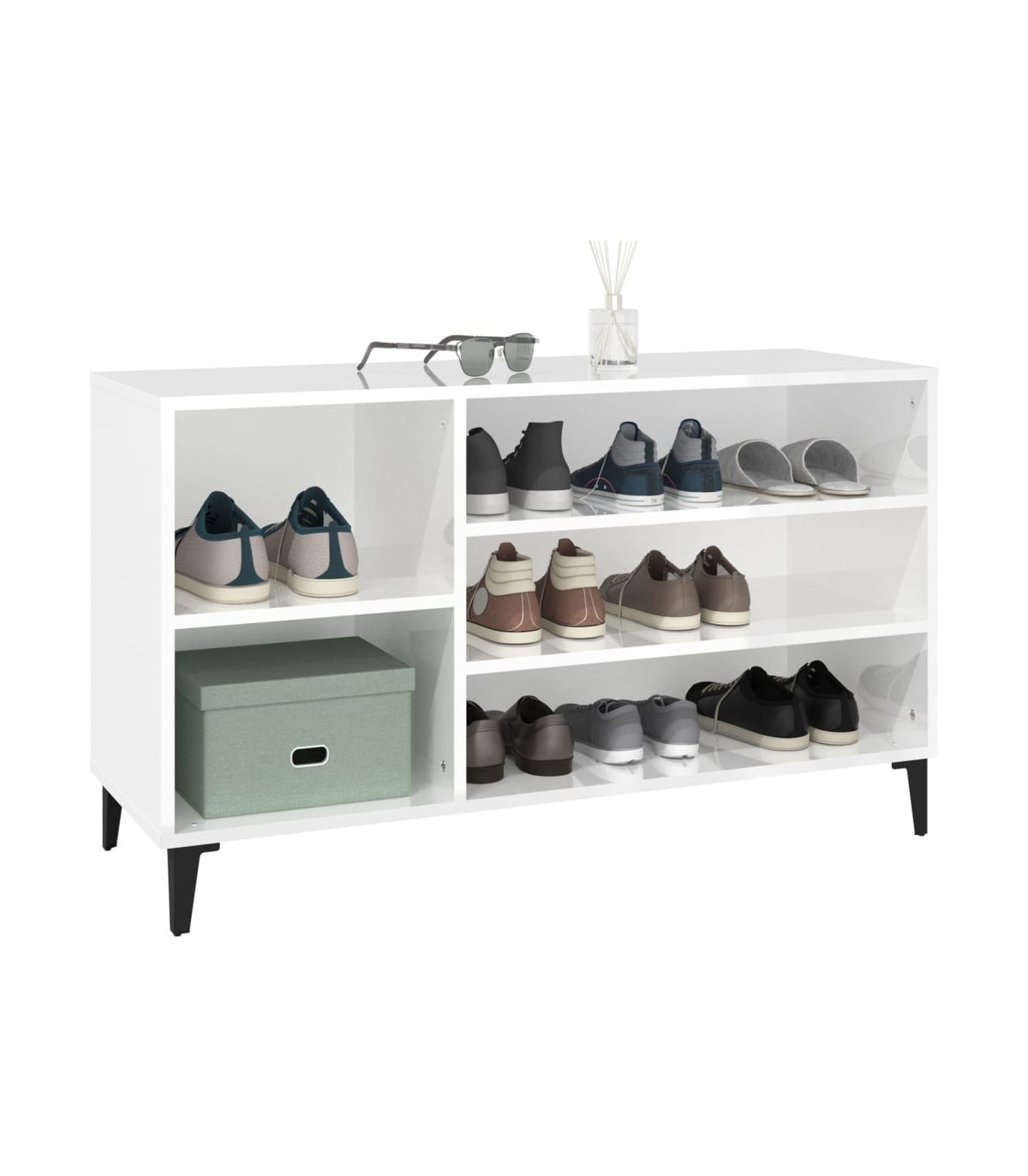 Shoe Cabinet High Gloss White 102x36x60 cm Engineered Wood