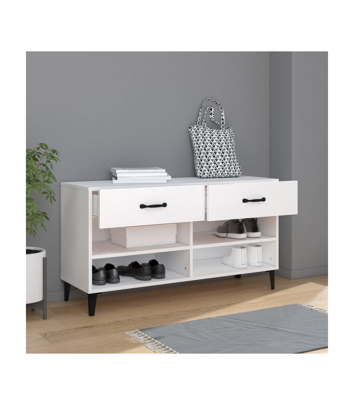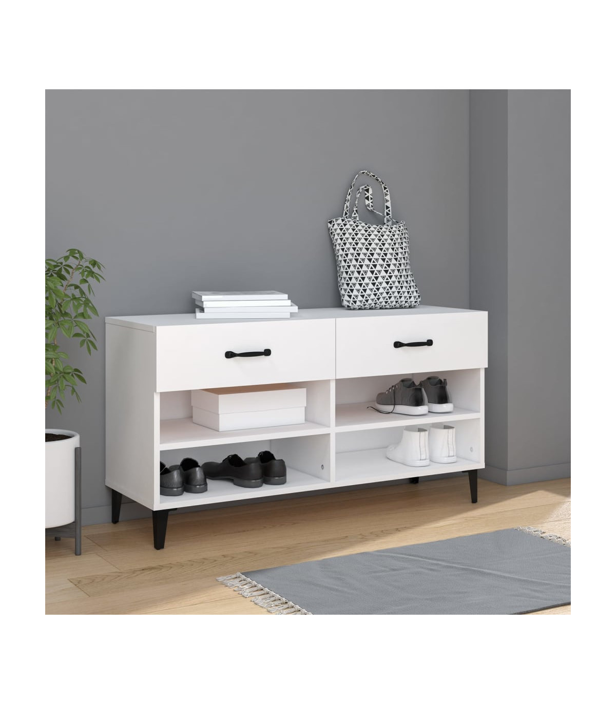 Shoe Cabinet White 102x35x55 cm Engineered Wood