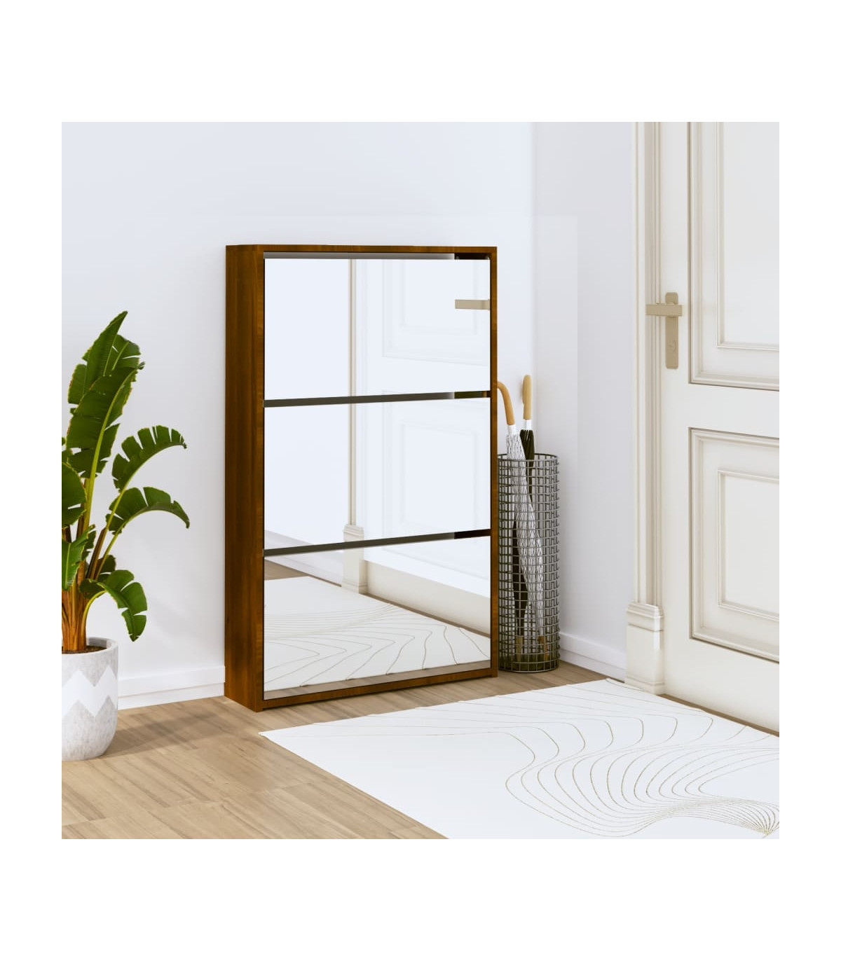 This 3-layer shoe cabinet, in a modern and stylish design, is an excellent piece of furniture to store your shoes in an organised way. It is suitable for the entrance, hallway, living room, bedroom and other places you want it to be. Durable material: The engineered wood is of exceptional quality with smooth surface and also features strength, stability and resistance to moisture.Ample storage space: This shoe rack features 3 drawers, each of which can accommodate 3 to 4 pairs of shoes.Pull-down drawer design: With its pull-down drawer design, this shoe storage cabinet is easy to open and close. Note:Each product comes with an assembly manual in the box for easy assembly. Warning:In order to prevent overturning, this product must be used with the wall attachment device provided