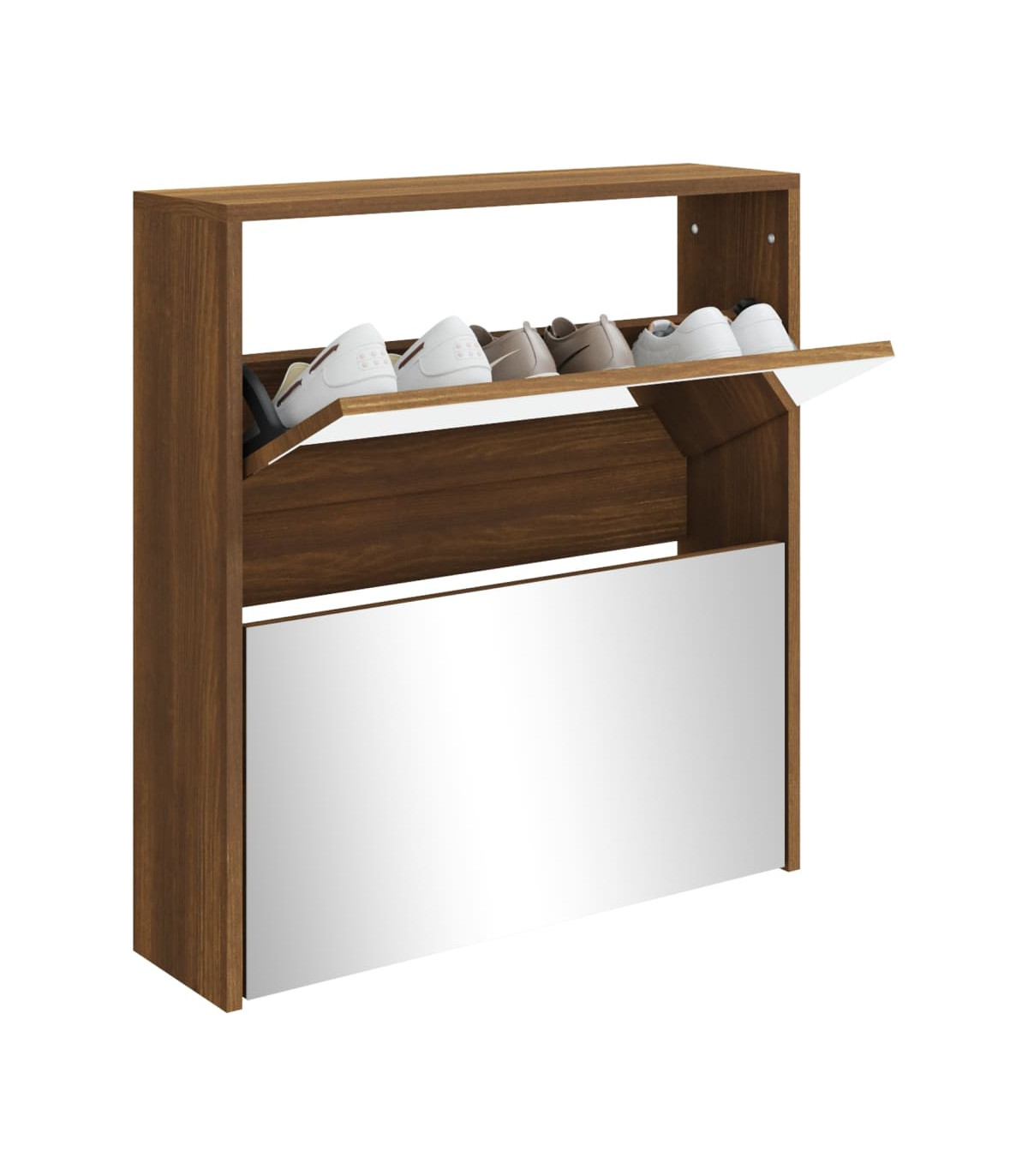 Shoe Cabinet with Mirror 2-Layer Brown Oak 63x17x67 cm