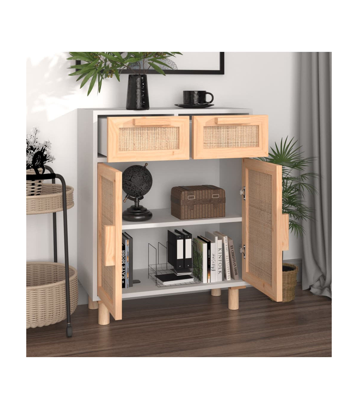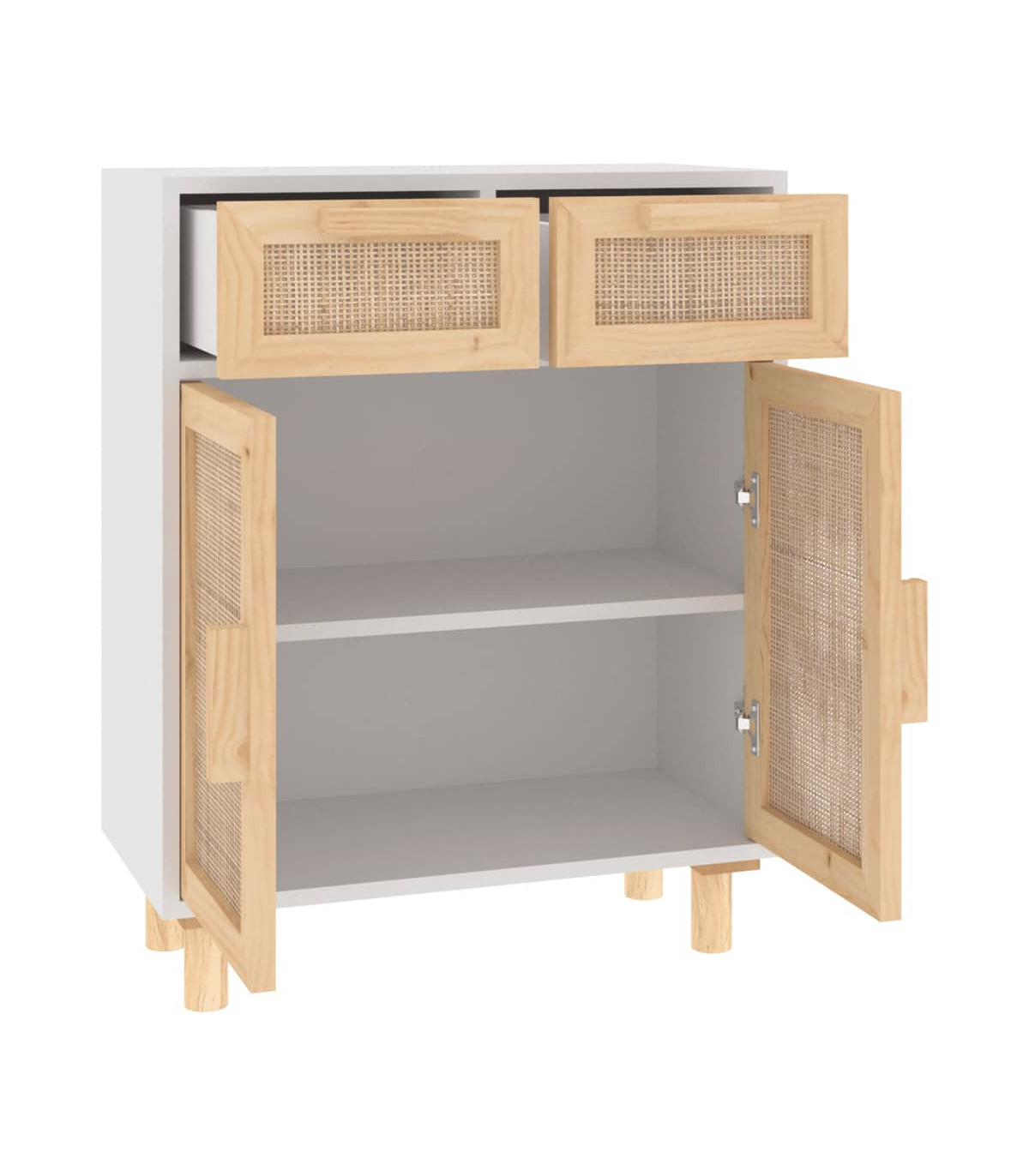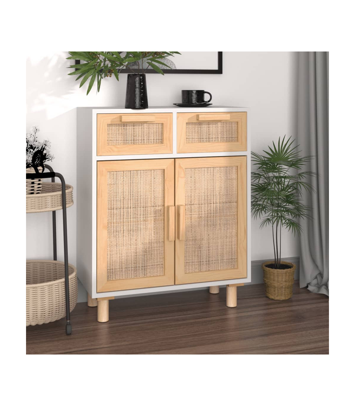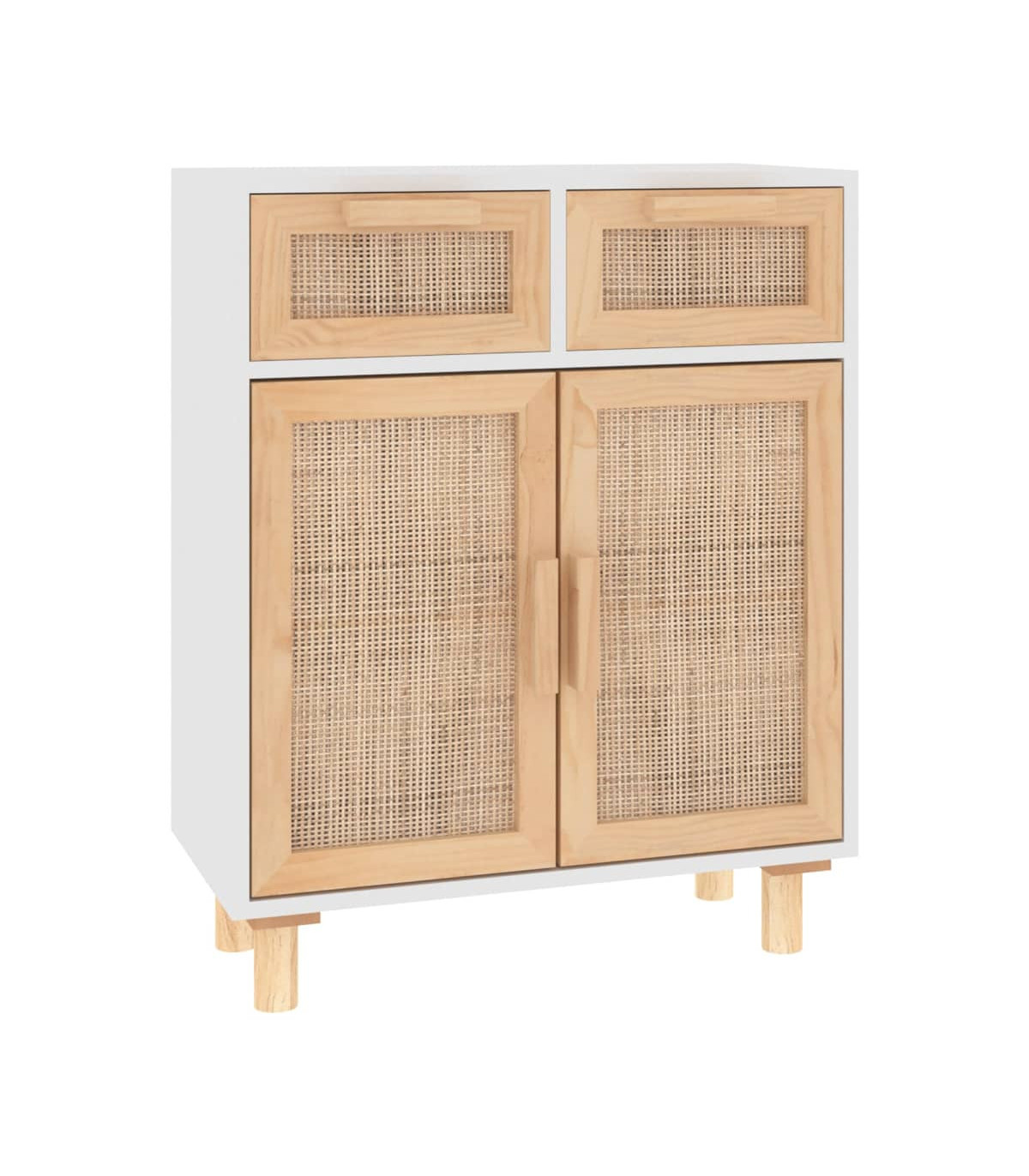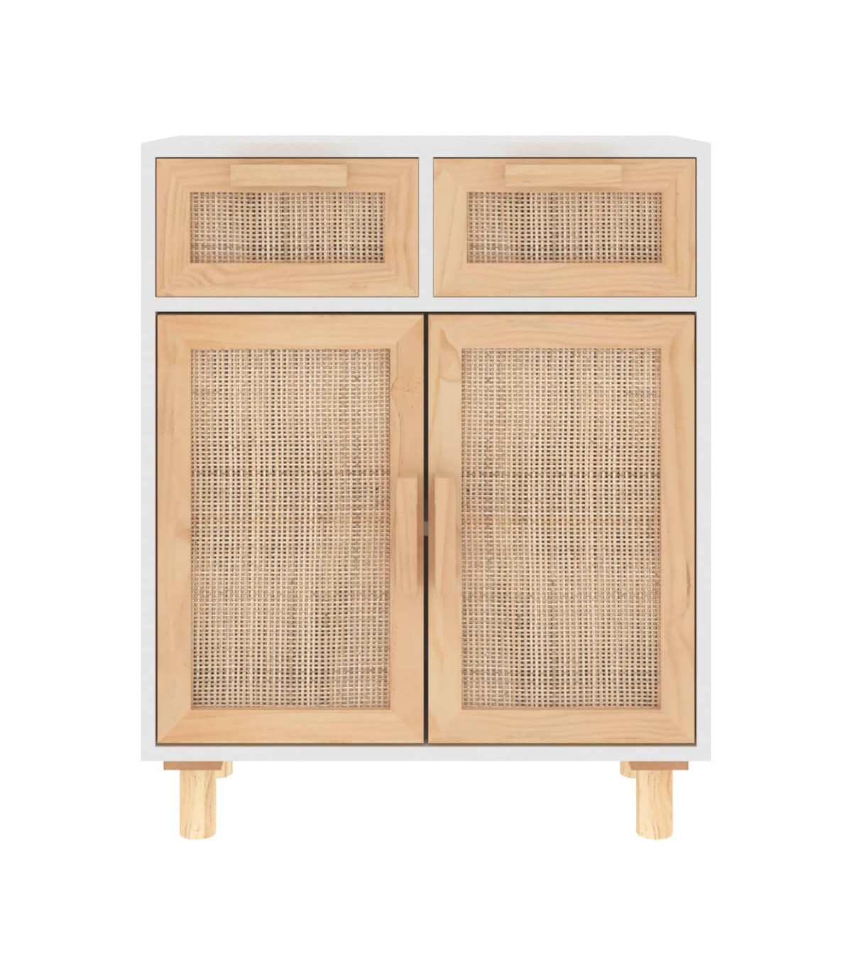 This practical sideboard is meant to satisfy your various requirements and is an ideal addition to your room. Durable material: The engineered wood is of exceptional quality with smooth surface and also features strength, stability and resistance to moisture.Ample storage space: Equipped with 2 drawers and 2 compartments, the cabinet offers ample storage space for keeping various daily essentials well organised and within easy reach. Also, the nature rattan weaving design in the door adds extra beauty.Solid pinewood feet: The wooden feet give the sideboard cabinet a natural and pleasant look while ensuring stability. It can blend well with any interior decor.Sturdy top: You can also place your favourite photos, decorations, or flowers on top of this cupboard to enrich your life. Note:Each product comes with an assembly manual in the box for easy assembly. Warning:In order to prevent overturning, this product must be used with the wall attachment device provided.