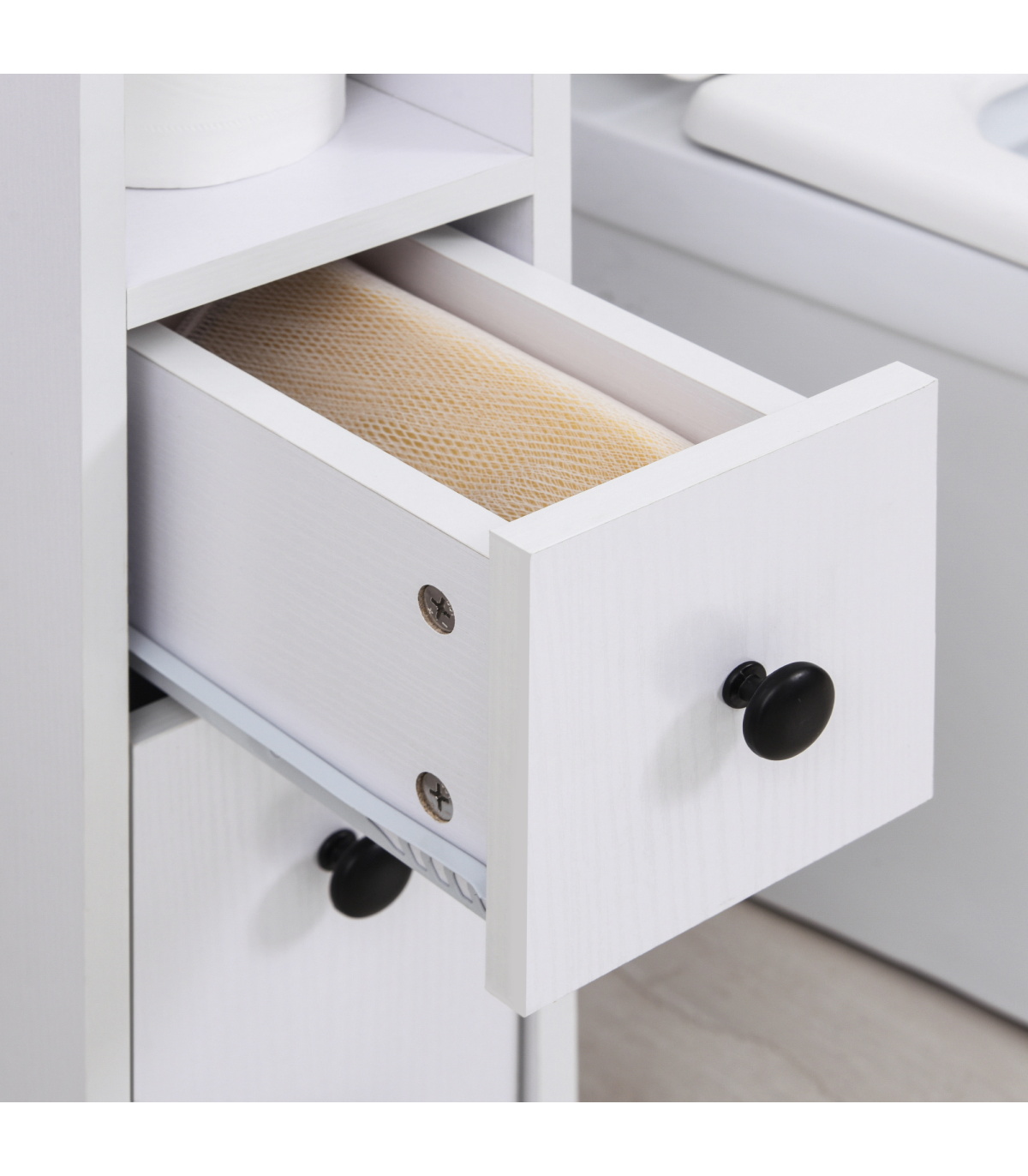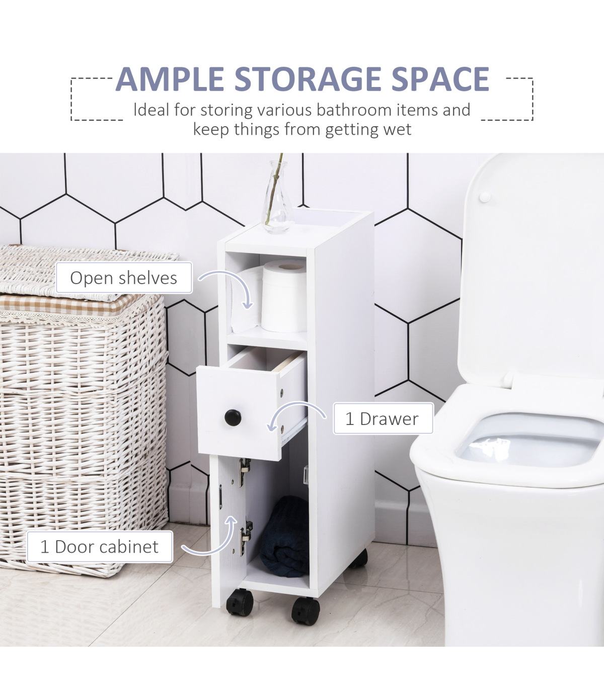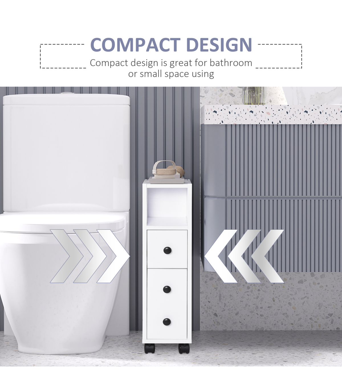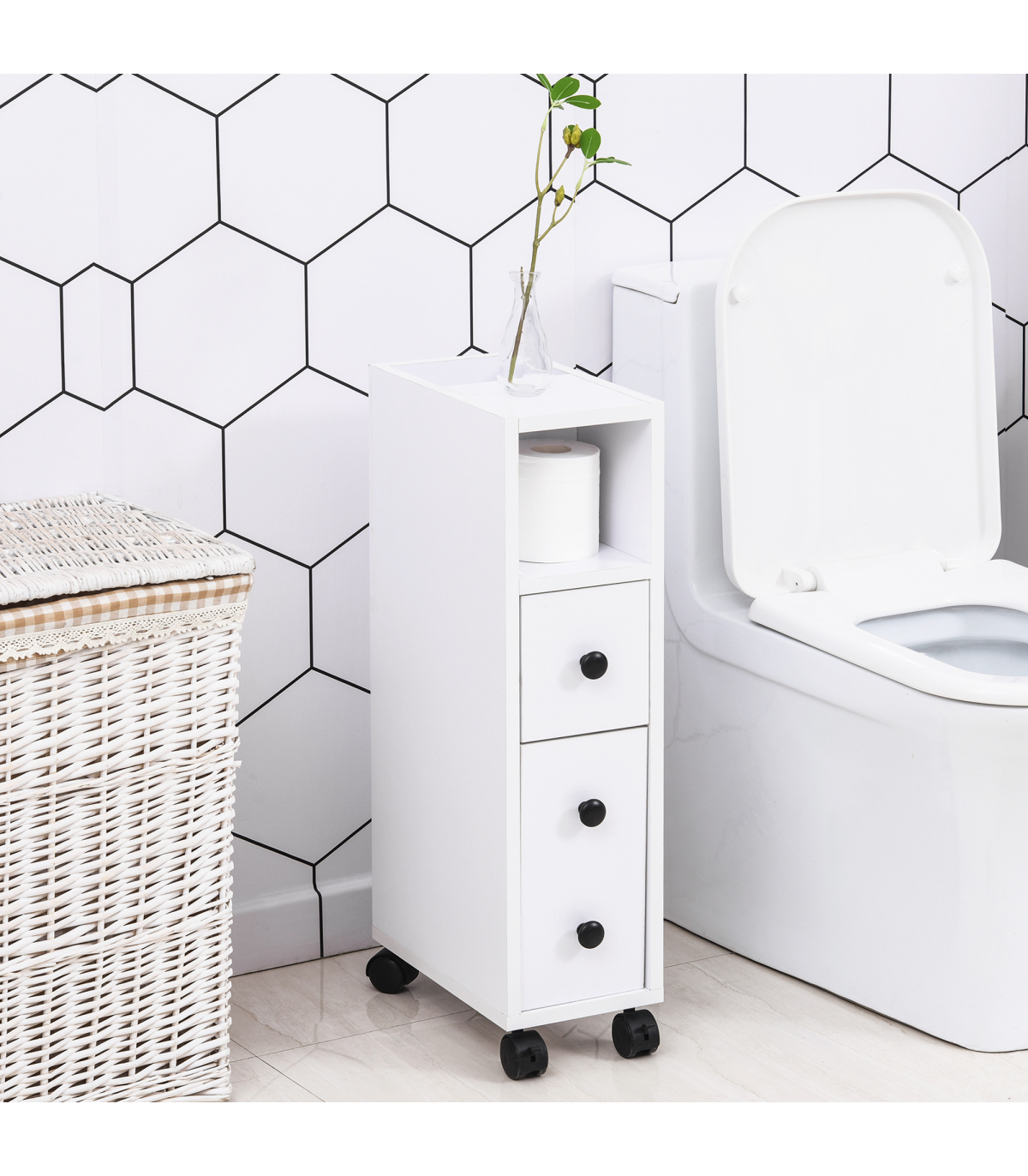 Slimline Bathroom Storage Unit w/ 2 Drawers 2 Open Compartments Wheels White