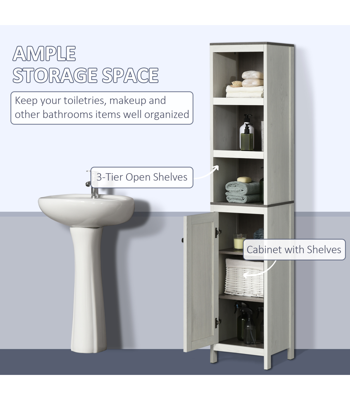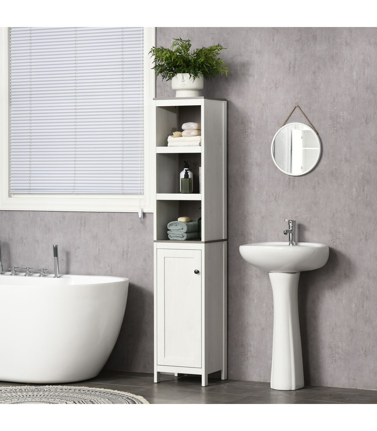 Tall Bathroom Storage Cabinet, Linen Tower with Adjustable Shelf, White